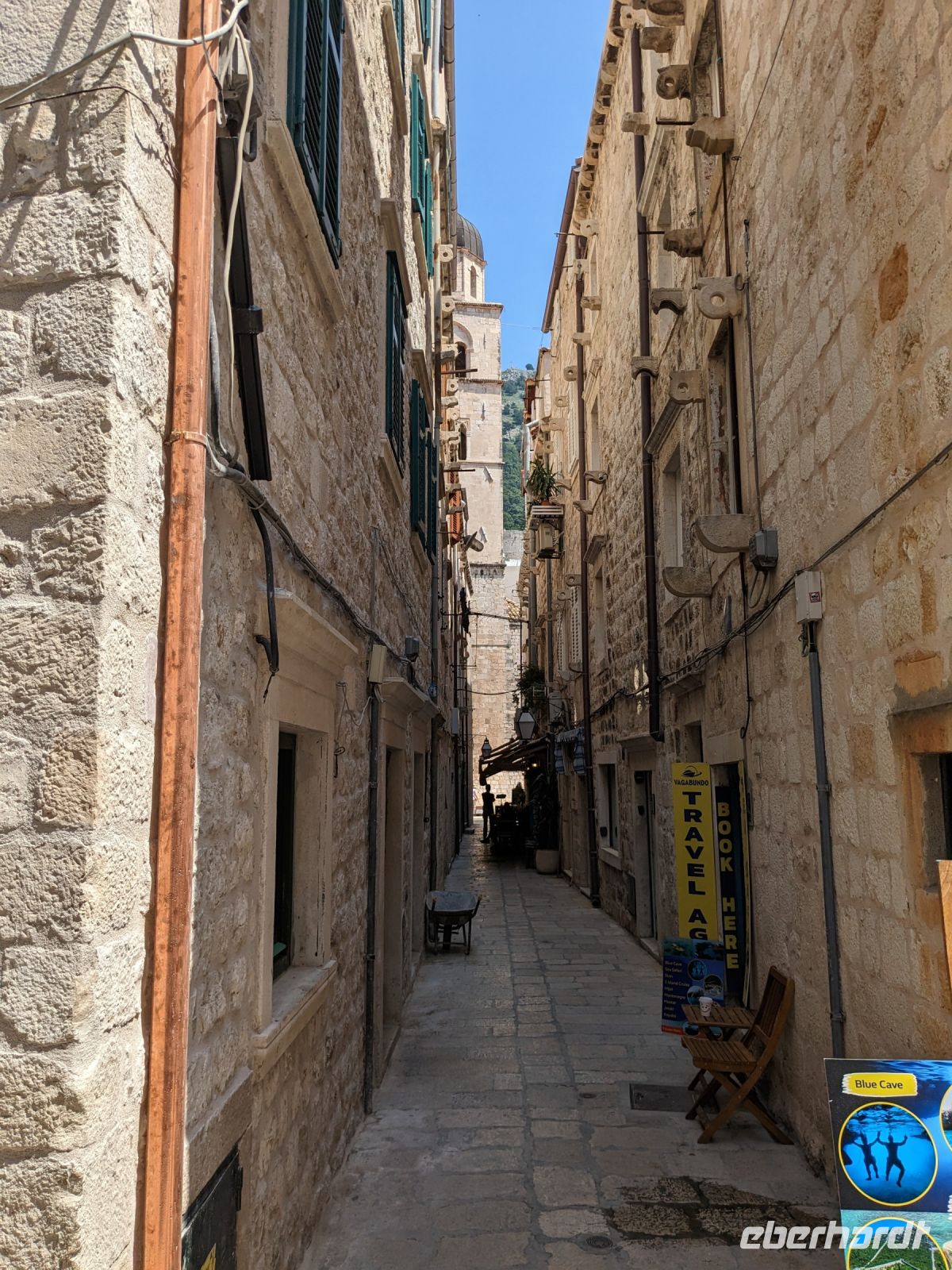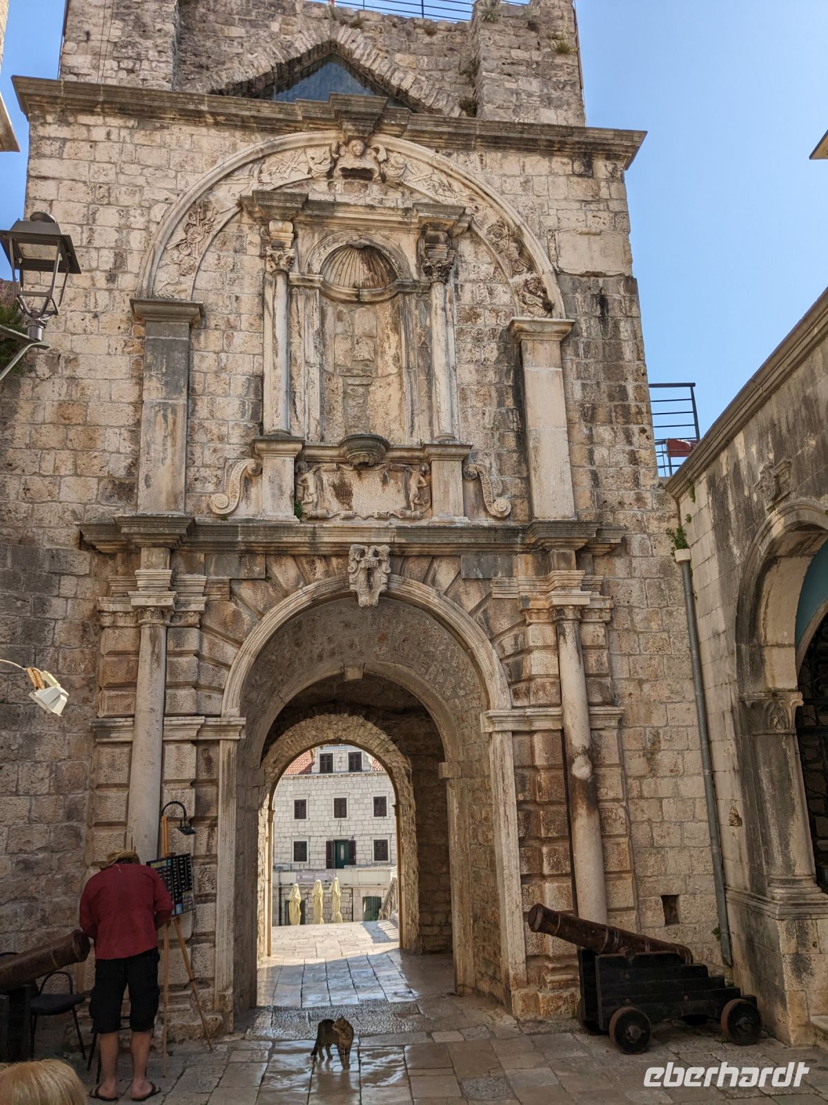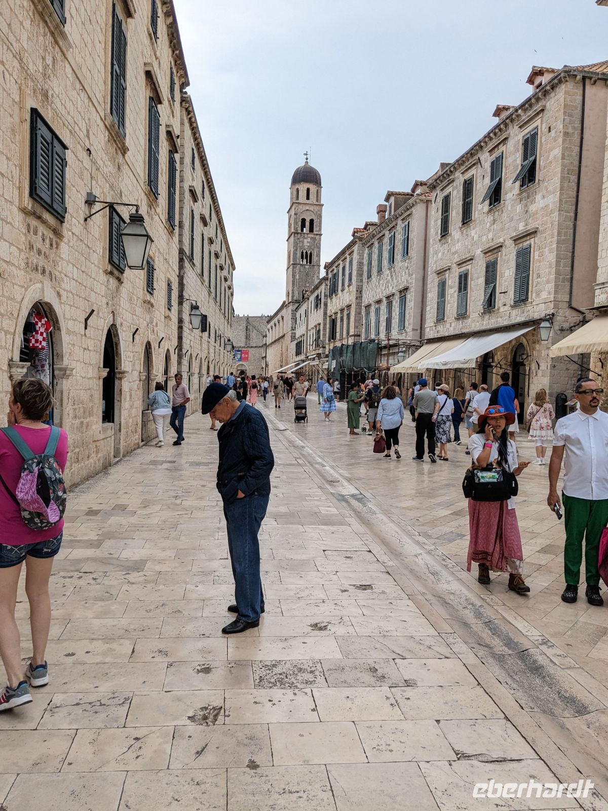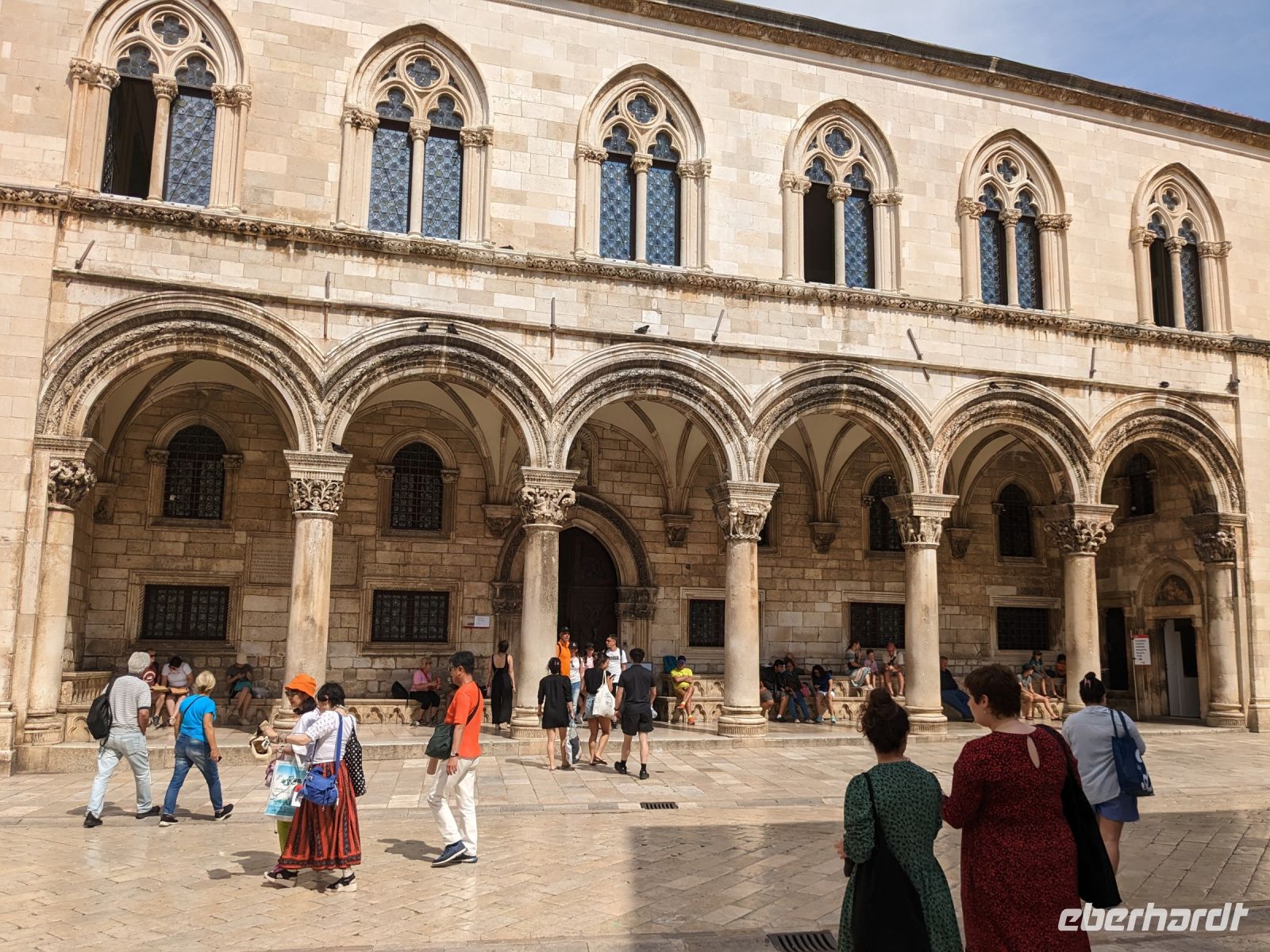 Die Altstadt ist noch komplett von ihrer historischen und in voller Länge begehbaren Wehrmauer umgeben und hat sich auf diese Art Jahrhunderte lang nie über die machtvollen Fortifikationen hinaus ausgedehnt. Dubrovniks Altstadtkern gilt als einer der wertvollsten Kunstschätze in Europa. Wir haben die „Perle an der Adria“ über die ehemalige Zugbrücke am Pile-Tor betreten und sind von dort gleich auf die breite die Fußgängerzone in der Altstadt, den Stradun, gelangt. Gegenüber dem Eingangstor befindet sich Dubrovniks größter öffentlicher Brunnen und daneben das alte Franziskanerkloster. Hier gibt es noch die historische Apotheke, eine der ältesten in Europa. Während unseres Stadtrundgangs entdeckten wir nicht nur die breite, von Geschäften gesäumte Fußgängerzone „Stradun“, sondern auch viele der schmalen Seitengassen mit zahlreichen bunten Geschäften, Souvenirläden und Gaststätten. Am Ende des Stradun stießen wir auf den Rektorenpalast, einst Herrschersitz der damaligen autonomen Republik Ragusa. Daneben liegt die Kathedrale „Maria Himmelfahrt“, heute zwar in einem Stilgemisch verschiedener Epochen, aber angeblich auf eine Kirchengründung des englischen Königs Richard Löwenherz zurückgehend, der sie als Dank für seine Genesung während des Kreuzzugs gestiftet haben soll.