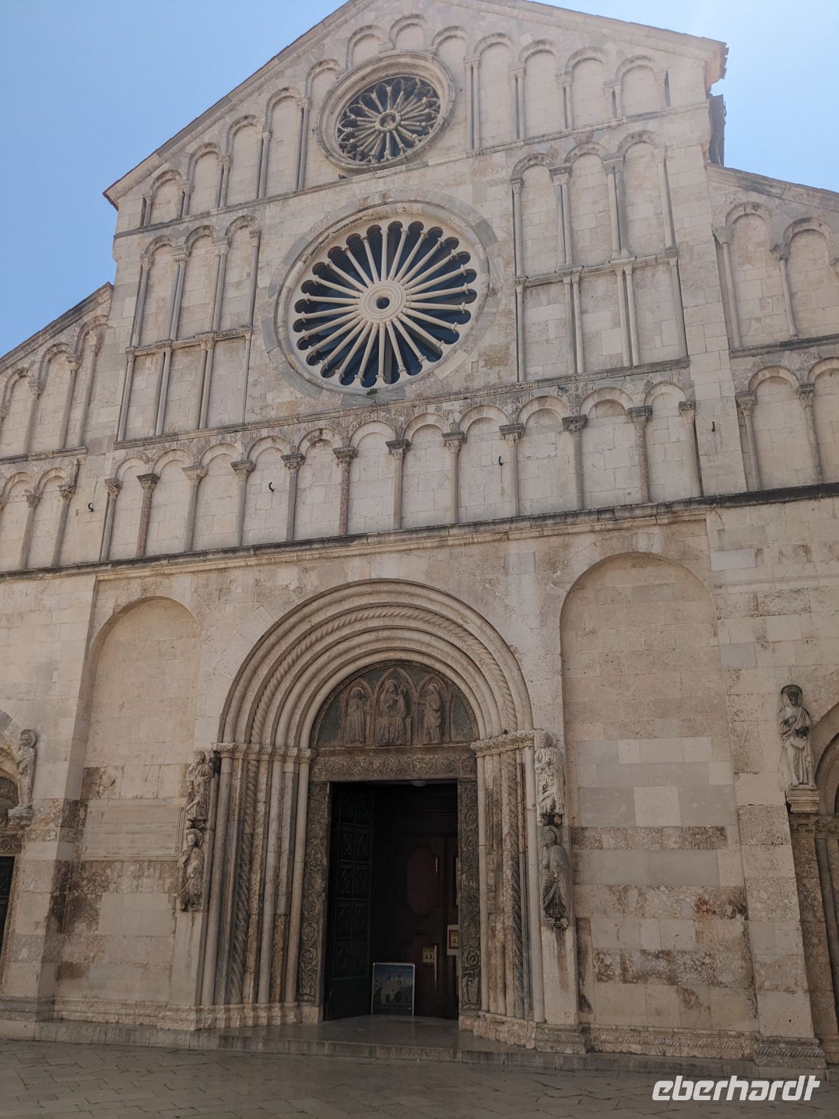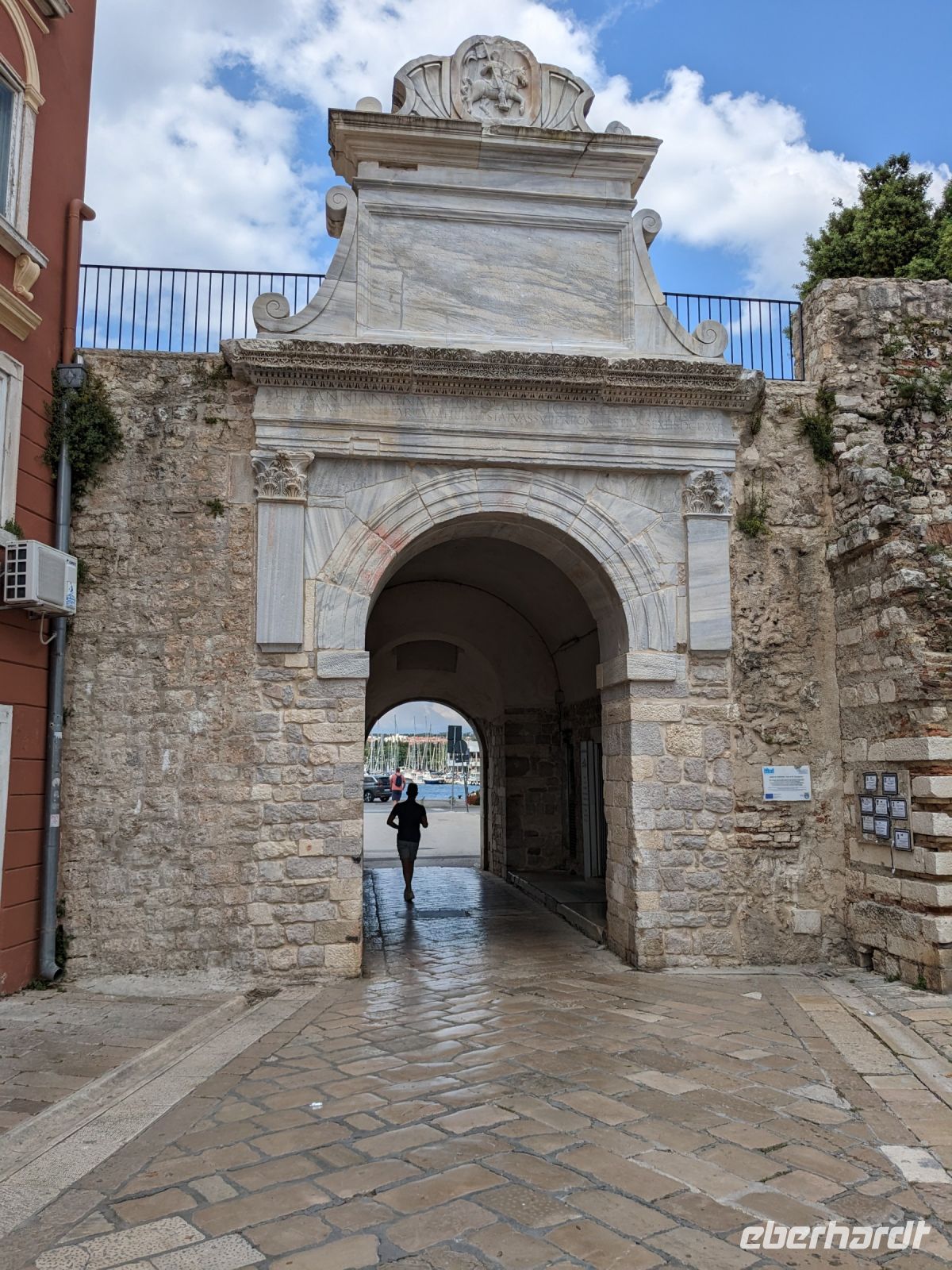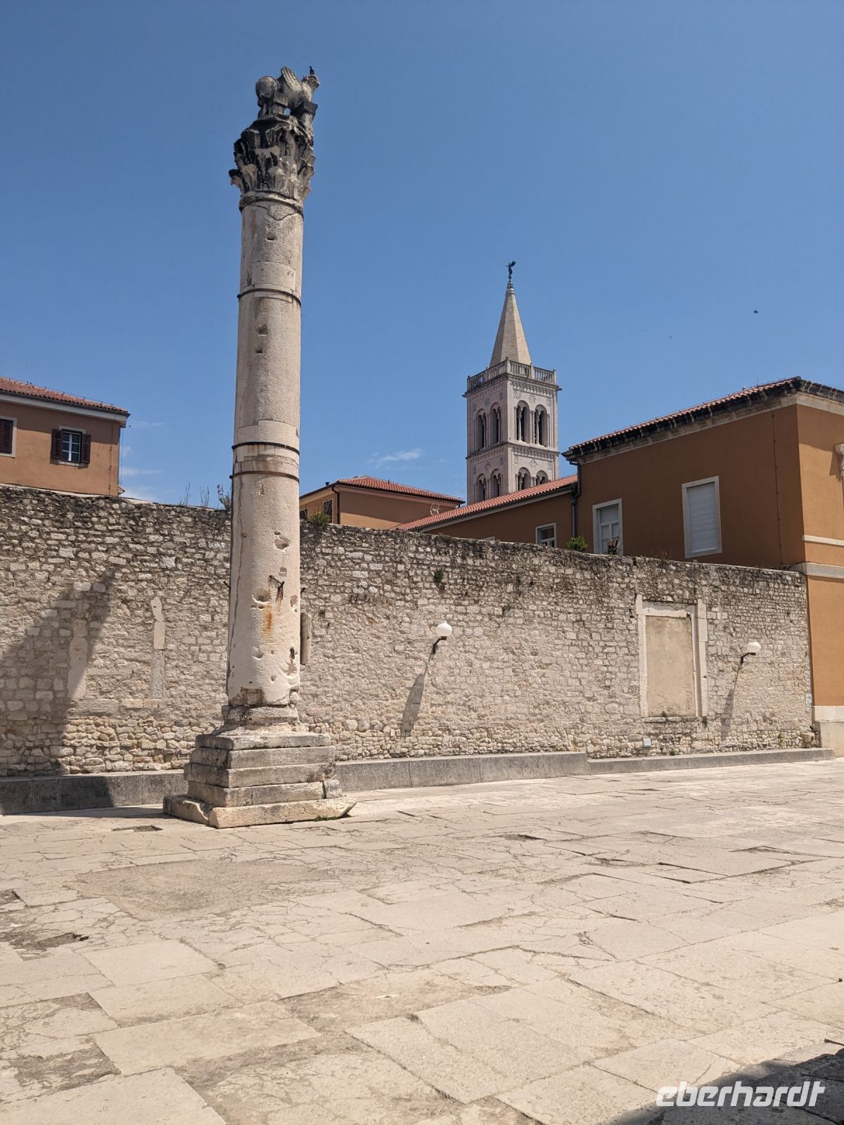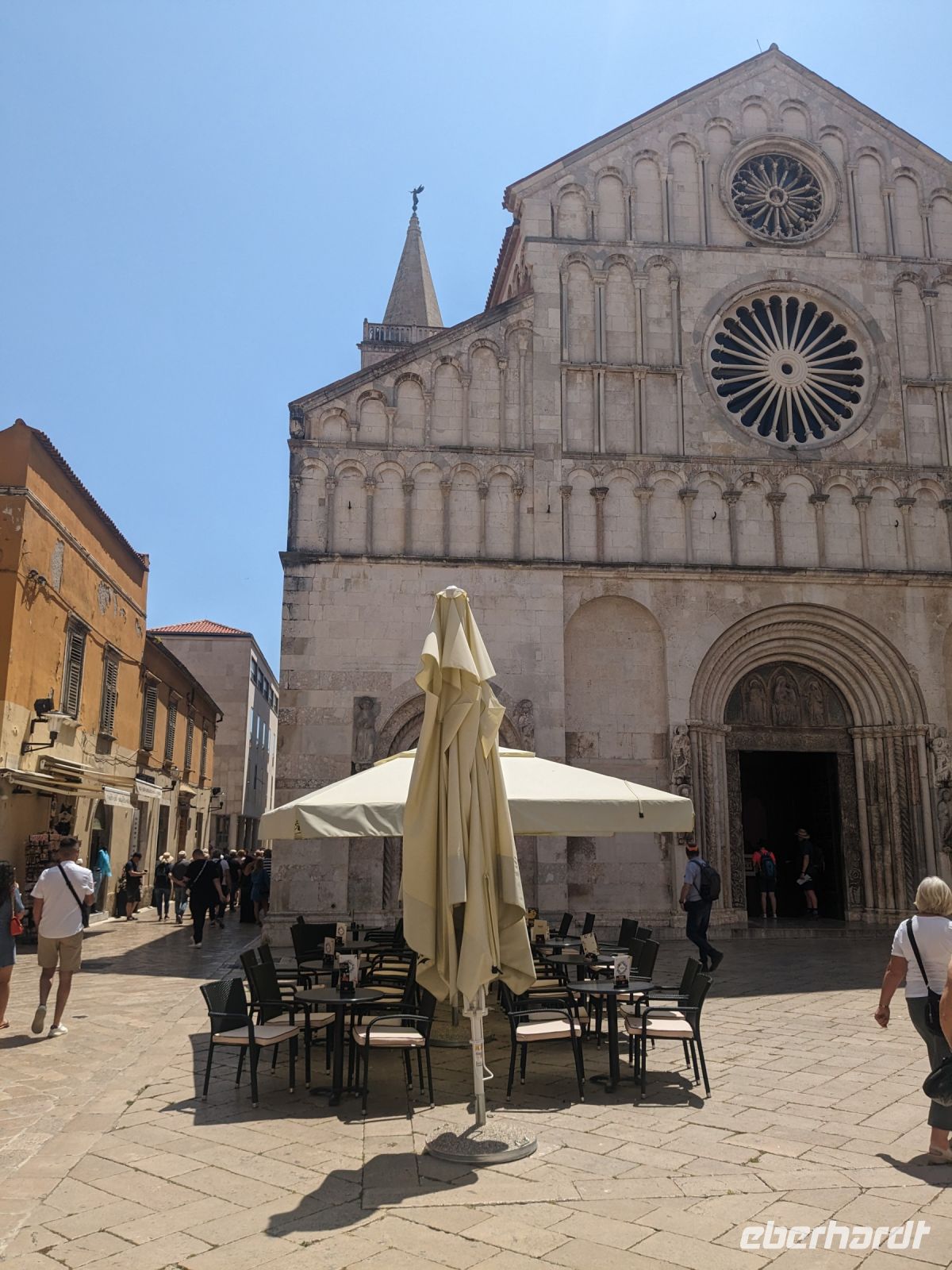 Weiter ging es zurück in Richtung Norden, bis wir unser Nachmittagsziel erreichten, die Stadt Zadar. Diese Hafenstadt mit großartiger Geschichte, die aus fast allen Epochen seit der Zeit der Illyrer und Griechen eindrucksvolle Zeugnisse bereithält, gehört zu den größten Orten Kroatiens. Durch die von den Venezianern erneuerten und erweiterten Befestigungsanlagen gehört die Stadt, einst bedeutender Stützpunkt der Seerepublik Venedig, zu den seit 2017 auf der UNESCO-Weltkulturerbe-Liste stehenden Befestigungen länderübergreifend mit Italien und Montenegro.