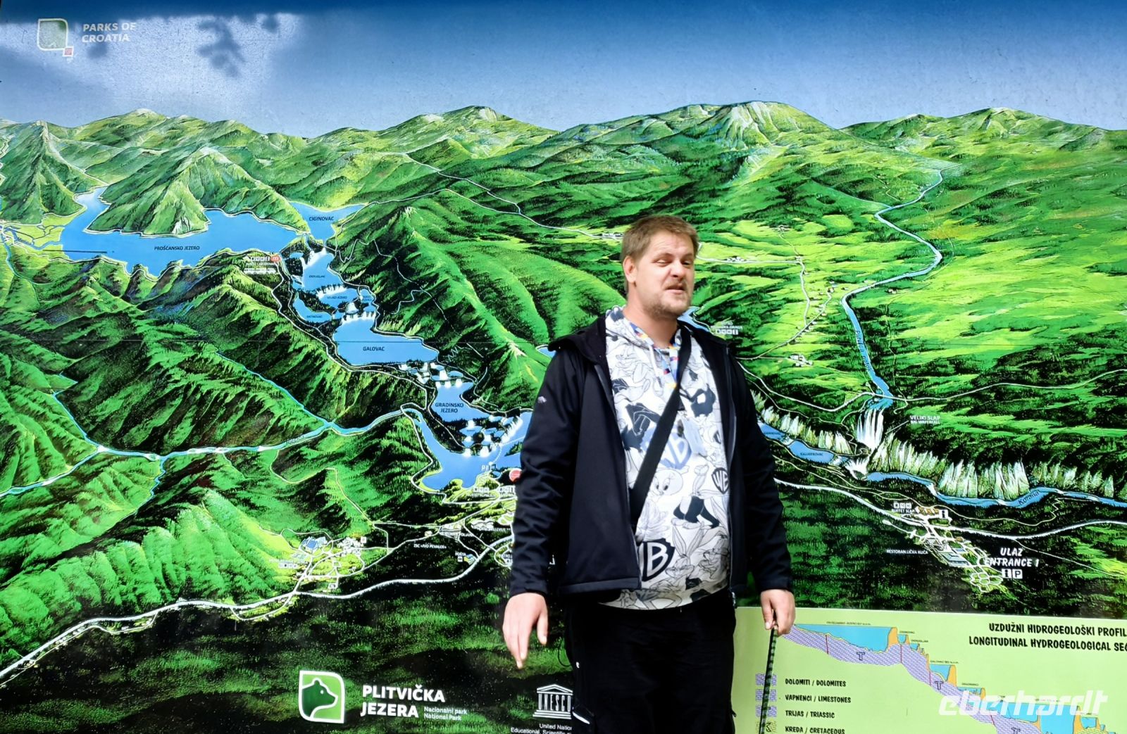 Direkt an unserem heutigen Übernachtungshotel treffen wir unseren Reiseleiter Emanuel, einen Schweizer, der in Kroatien lebt. Hier beginnen wir unsere Pirsch durch den riesigen unter UNESCO Weltnaturerbe stehenden Nationalpark. Wir haben zwar kühles aber sonniges Wetter, perfekte Wandervoraussetzungen also.