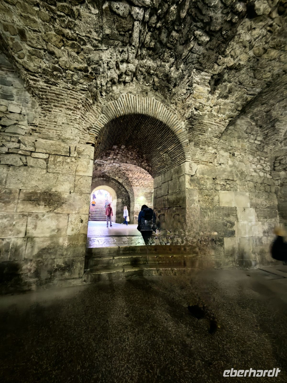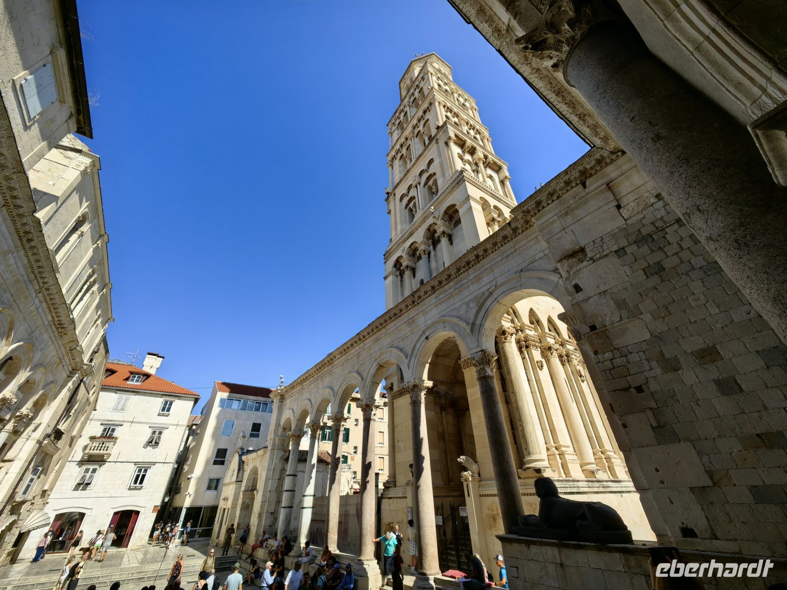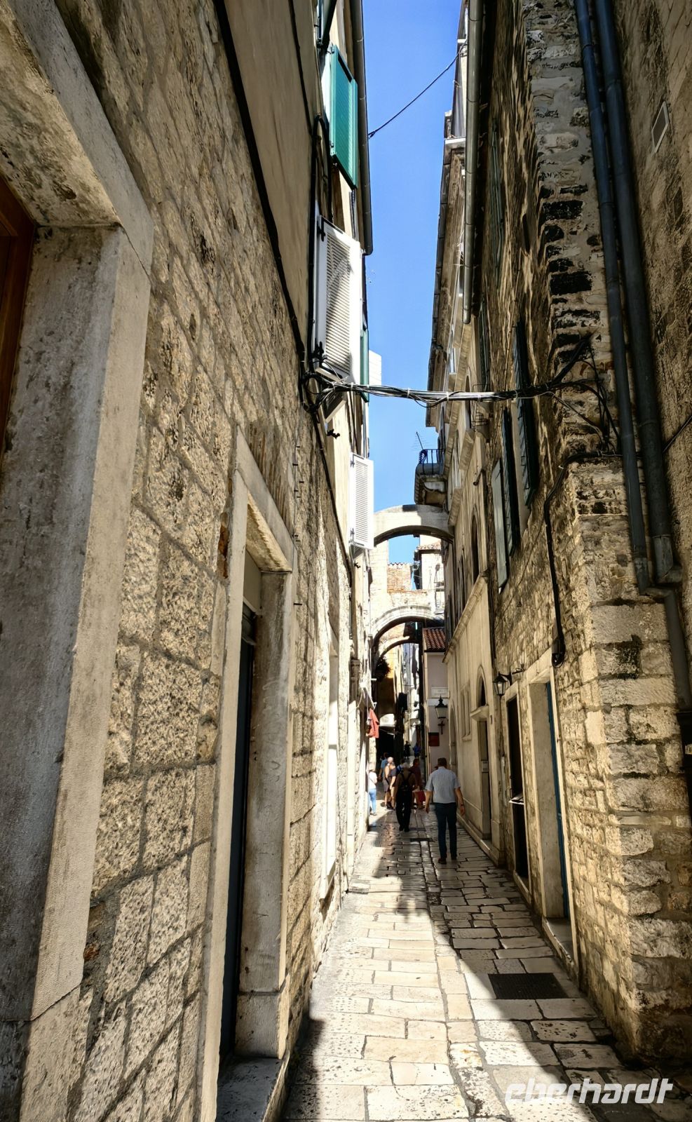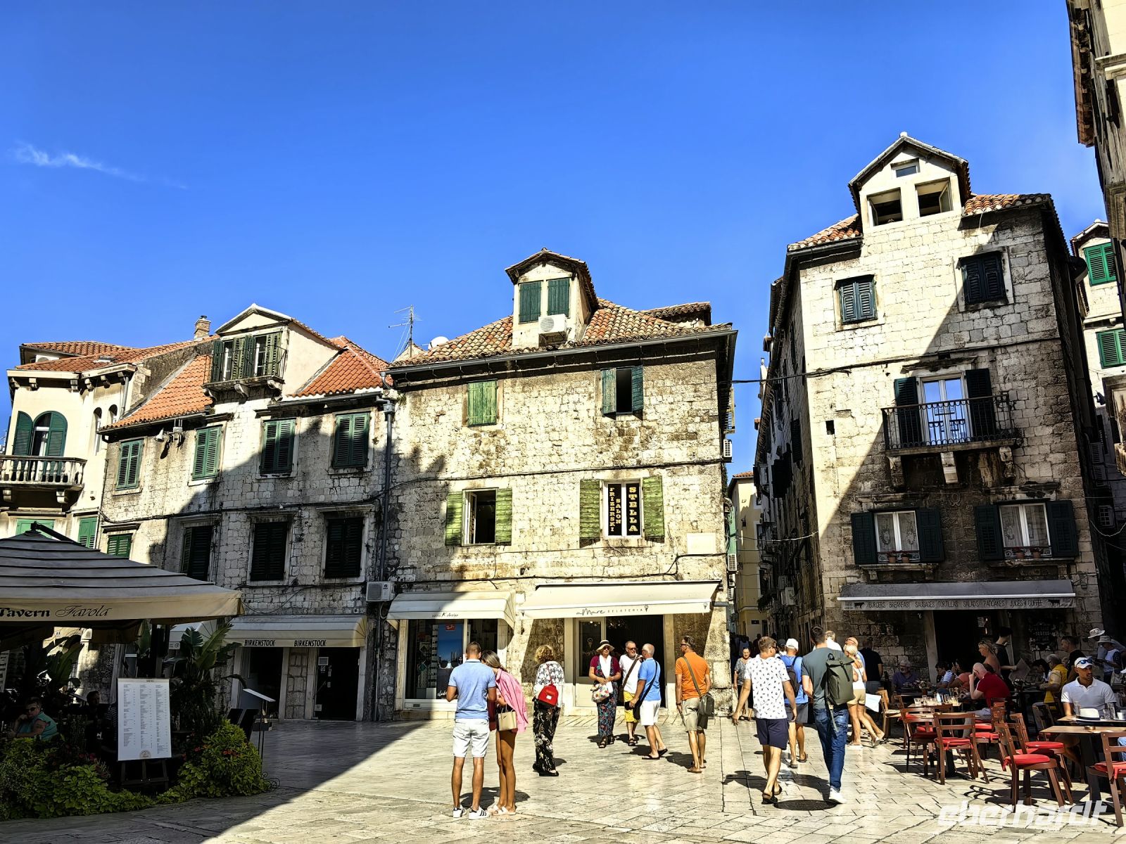 Zur Mittagszeit erreichen wir Split und unsere Stadtführerin Dijana nimmt uns mit auf eine Reise ins dritte Jahrhundert. Diokletian, der römische Kaiser und Erbauer des gleichnamigen Palastes, herrschte hier einst mit eiserner Hand. Viele Christen flohen vor ihm, erwartete sie beim Bekenntnis zu ihrem Glauben der sichere Tod. Auch vor seiner eigenen Familie machten seine Grausamkeiten keinen Halt und als er feststellte, daß Frau und Tochter den christlichen Glauben praktizierten, ließ er sie töten. Diese rohe Herrschaft bescherte ihm viele Feinde und daher wurden große Teile seines Palastes nach seinem Ableben zerstört. Die erhaltenen Fragmente fügen sich heut in die von engen Gassen geprägte Altstadt Splits ein. Wir bummeln durch die verwinkelten Ecken und finden viele kleine pittoreske Details und Fassaden.