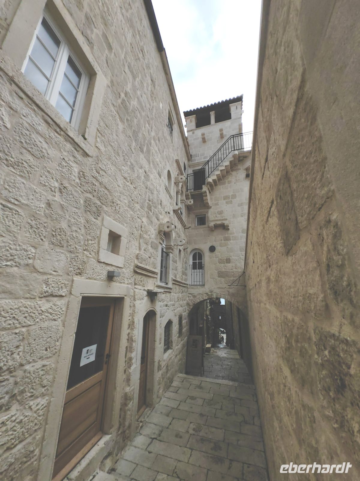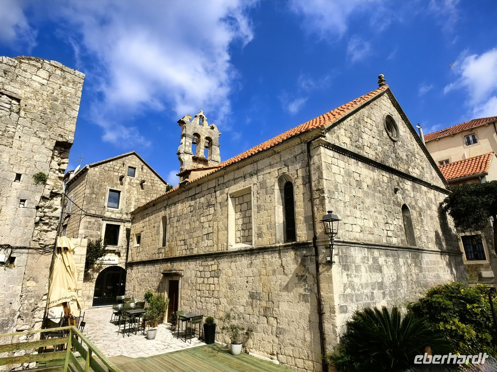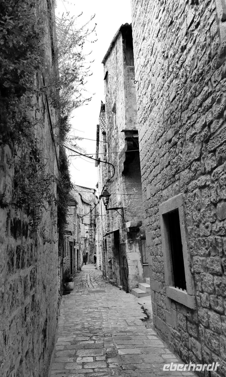 Auch hier auf der Insel finden sich Reste von illyrischen, römischen und griechischen Siedlungen und die Stadt entwickelte sich im Laufe der Jahrhunderte zum administrativen Zentrum der Insel. Die Stadtmauer aus dem 13. Jahrhundert ist heute in Teilen noch erhalten und durch das damalige Eingangstor muß man auch heute noch die Treppen empor in die Altstadt steigen. Sofort sieht man die Mischung einer vor allem von der Renaissance und teilweise vom Barock geprägten Architektur mit engen Gassen, steilen Treppchen, verwinkelten Kirchen und kleinen Lädchen.