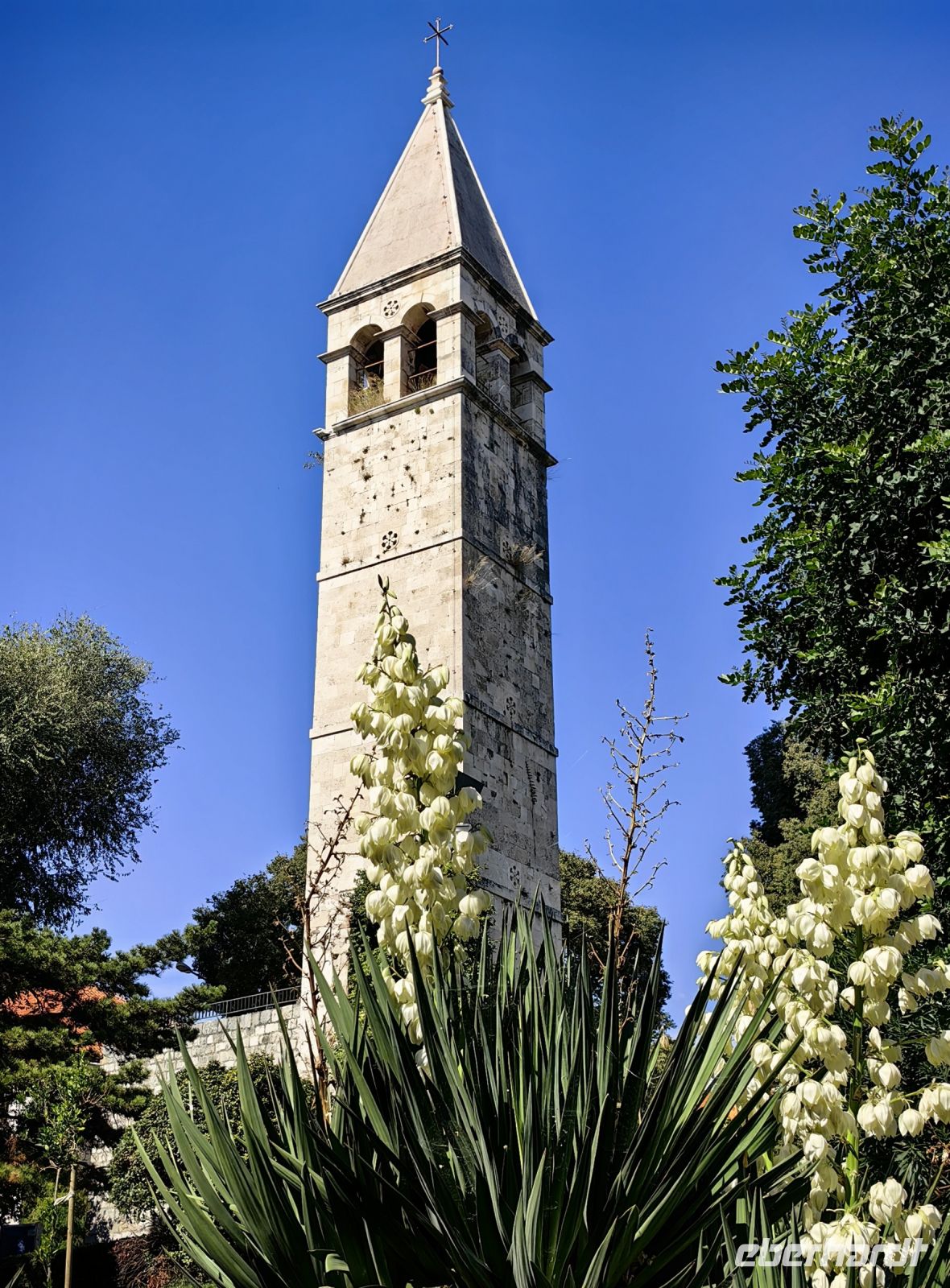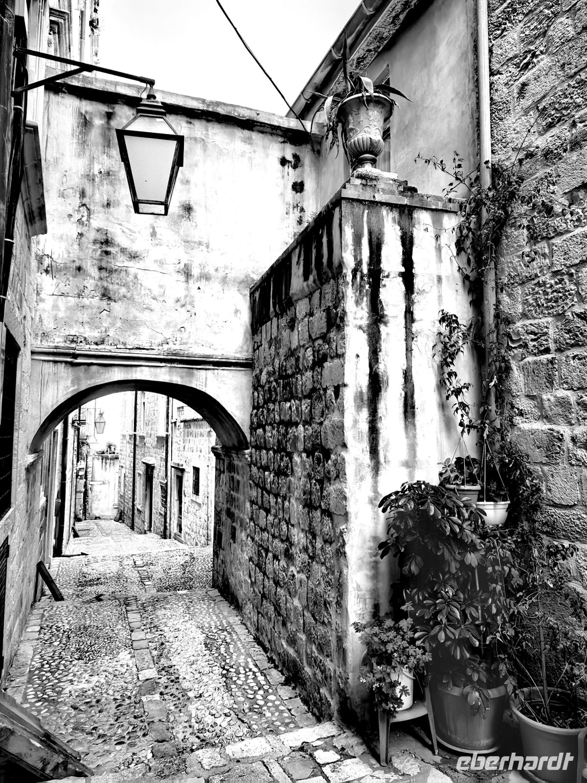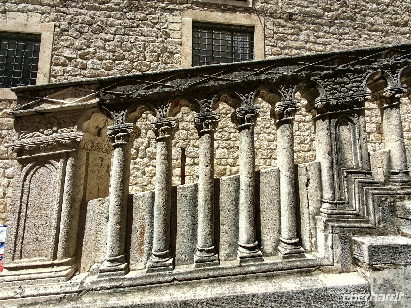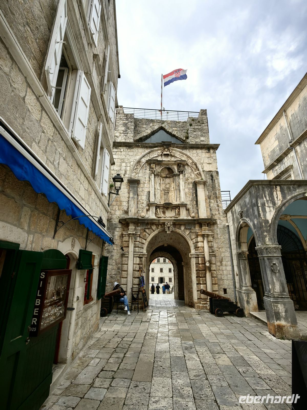 Auch hier auf der Insel finden sich Reste von illyrischen, römischen und griechischen Siedlungen und die Stadt entwickelte sich im Laufe der Jahrhunderte zum administrativen Zentrum der Insel. Die Stadtmauer aus dem 13. Jahrhundert ist heute in Teilen noch erhalten und durch das damalige Eingangstor muß man auch heute noch die Treppen empor in die Altstadt steigen. Sofort sieht man die Mischung einer vor allem von der Renaissance und teilweise vom Barock geprägten Architektur mit engen Gassen, steilen Treppchen, verwinkelten Kirchen und kleinen Lädchen.