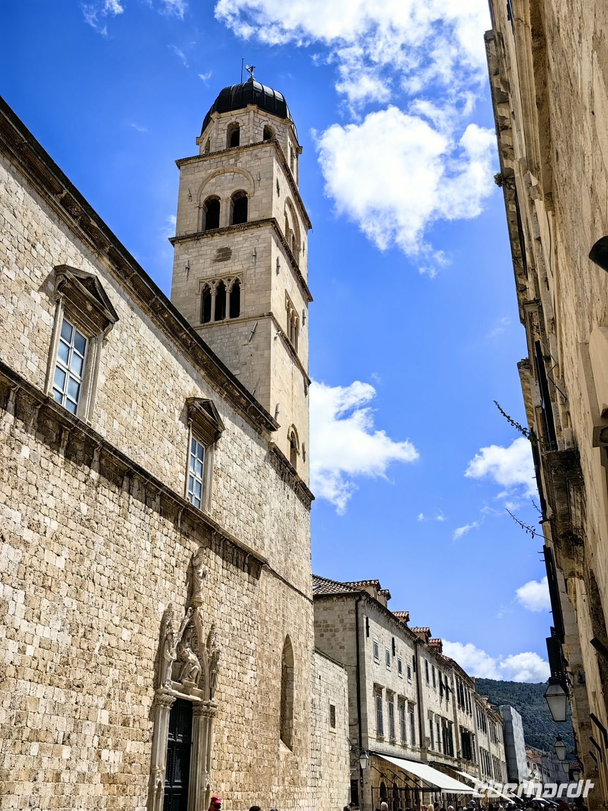 Wir widmen uns nun dem nahe gelegenen Franziskanerkloster. Ursprünglich befand sich das Kloster dieser Mönche außerhalb des Pile-Tores, es mußte aber wegen der drohenden Kriegsgefahr Anfang des 14. Jahrhunderts abgerissen werden und innerhalb der geschützten Stadtmauern ein neues errichtet werden, dieser Bau begann 1317. Das heutige Aussehen des Klosters geht vor allem auf Umbauten aus dem 16. Jahrhundert zurück und die gesamte Anlage fügt sich perfekt an die meterdicken Stadtmauern. Im Klosterkreuzgang findet man noch heute verschiedene Stilelemente aus Romanik, Barock, Gotik und Renaissance, die sich harmonisch miteinander verbinden und die alte Klosterapotheke ist die drittälteste in ganz Europa, die seit ihrer Gründung 1317 durchgehend als Apotheke in Betrieb ist.