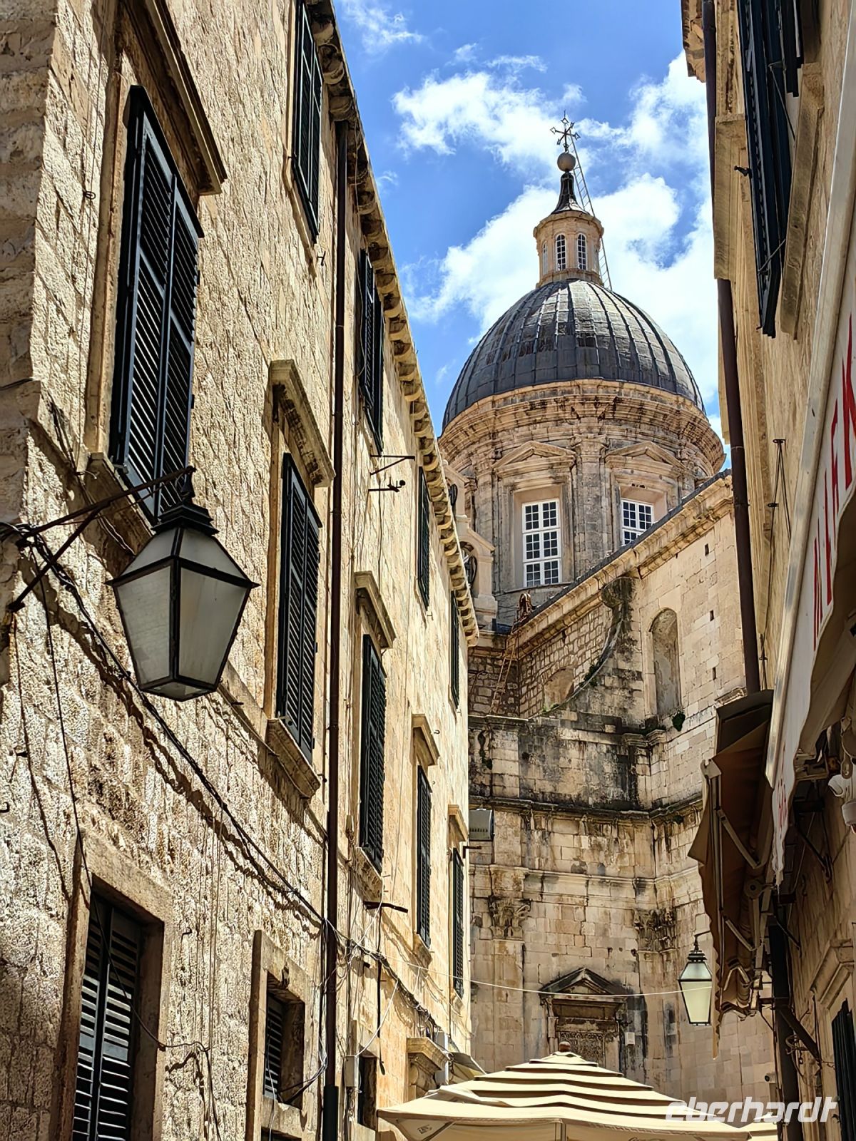 Am Vormittag erreichen wir das Pile Tor, den Eingang zur Stadt, und bewundern die dicken Mauern, die die gesamte Altstadt umgeben und die mit ihren insgesamt zwei Kilometern Länge zum besterhaltenen mittelalterlichen Befestigungssystem in Europa zählen. Die gesamte Altstadt wurde 1979 ins UNESCO Weltkulturerbe aufgenommen. Der Bau dieser wehrhaften Stadtmauer wurde bereits im 8. Jahrhundert begonnen und bewährte sich erstmals während der Belagerung der Sarazenen im Jahre 866. Danach wurde die Mauer weiter ausgebaut und besonders im 12. Jahrhundert verstärkt, die endgültigen Abschlußarbeiten dauerten bis ins 17. Jahrhundert. Immer wieder hielt diese Mauer die verschiedensten Angreifer ab, 948 die Venezianer, 1185 hielt man der Belagerung des serbischen Großzupan Stefan Nemanja stand, 1205 kamen nochmals venezianische Truppen während der vierten Kreuzzüge in die Stadt, 1451 erreichten die Bosnier unter Stjepan Vukcic Kosaca Ragusa, 1806 kam eine russisch-montenegrinische Belagerungswelle, 1814 die österreich-ungarischen Truppen und nicht zuletzt die jugoslawische Volksarmee während der Kämpfe 1991 - 1992 deren Einschußspuren noch Jahre nach dem Krieg an vielen Gebäuden zu sehen waren.