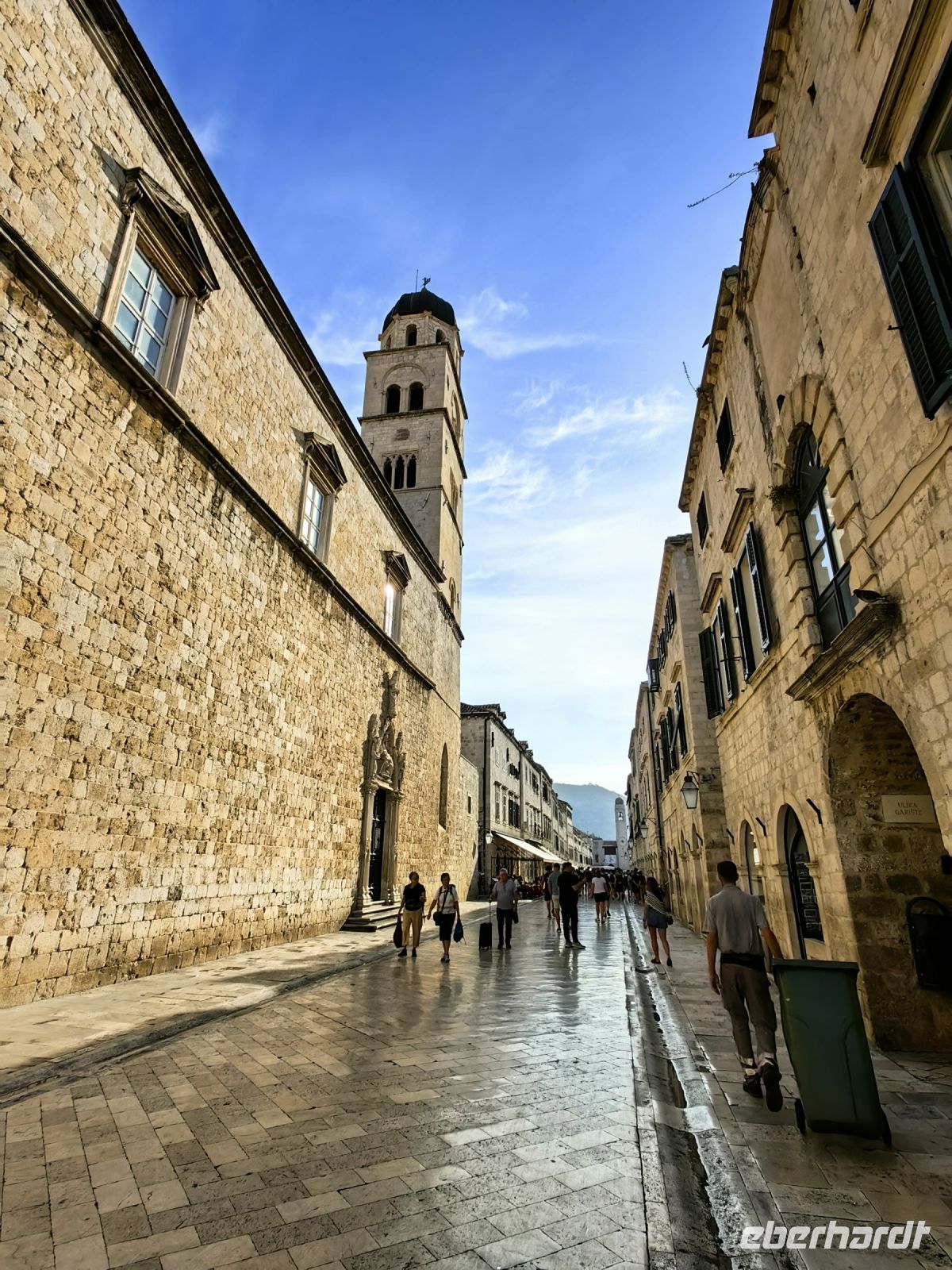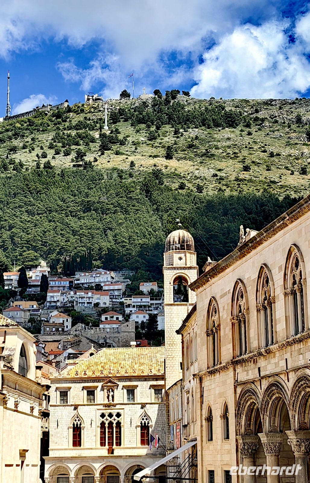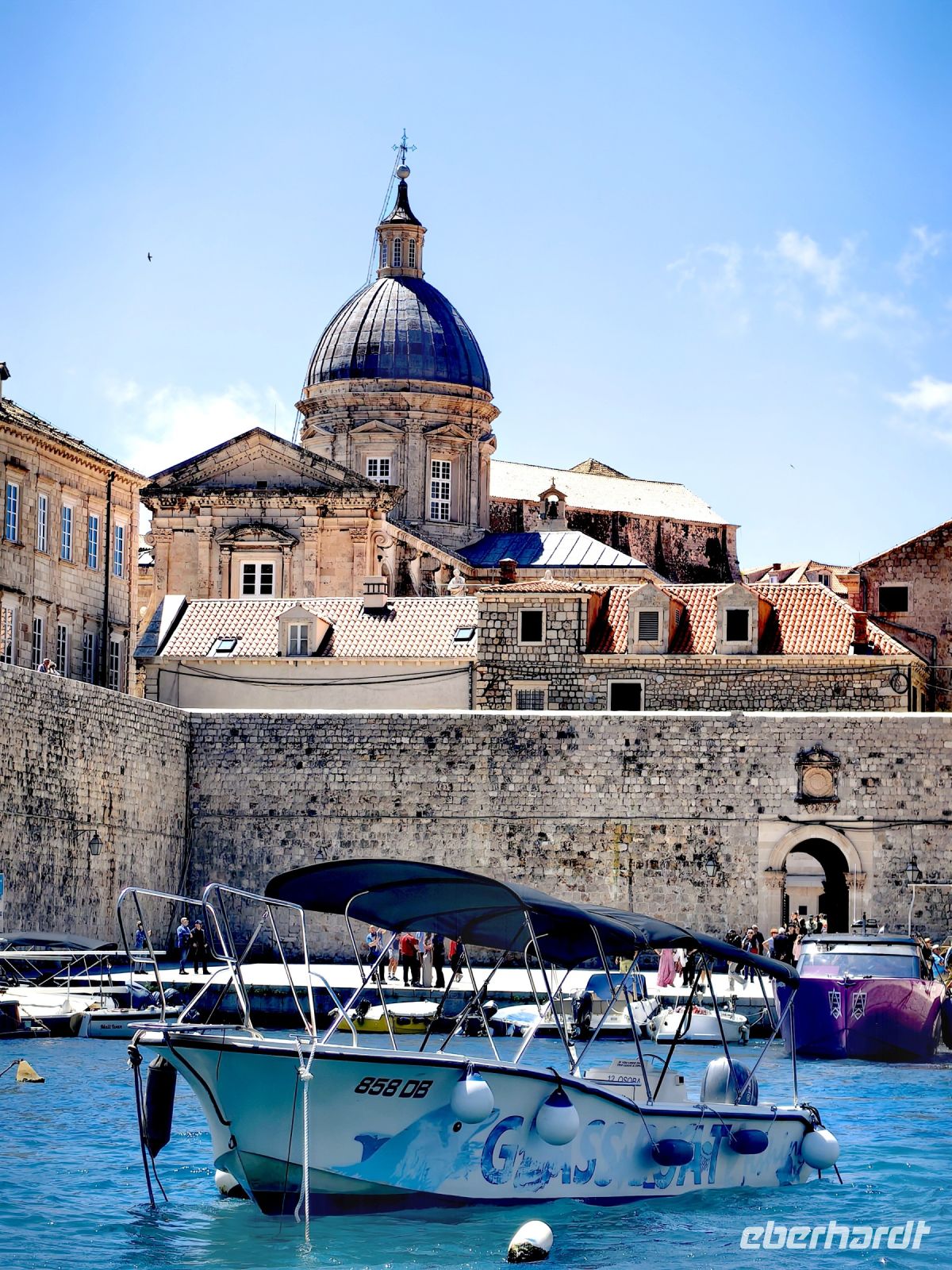 Am hinteren Ausgangstor der Stadtmauer kommt man direkt in den kleinen Hafen und kann auf der anderen Uferseite die neuere Bebauung von Dubrovnik sehen. Unseren Rundgang mit Indira beenden wir am Sponza Palast, der aus dem 16. Jahrhundert stammt und als eines der wenigen Bauwerke das schwere Erdbeben von 1667 völlig unbeschadet überstanden hat. Ehemals war das Zollamt im Palast untergebracht, heutzutage ist es das Stadtarchiv, wo man Schätze aus der 1000jährigen Stadtgeschichte bewundern kann.