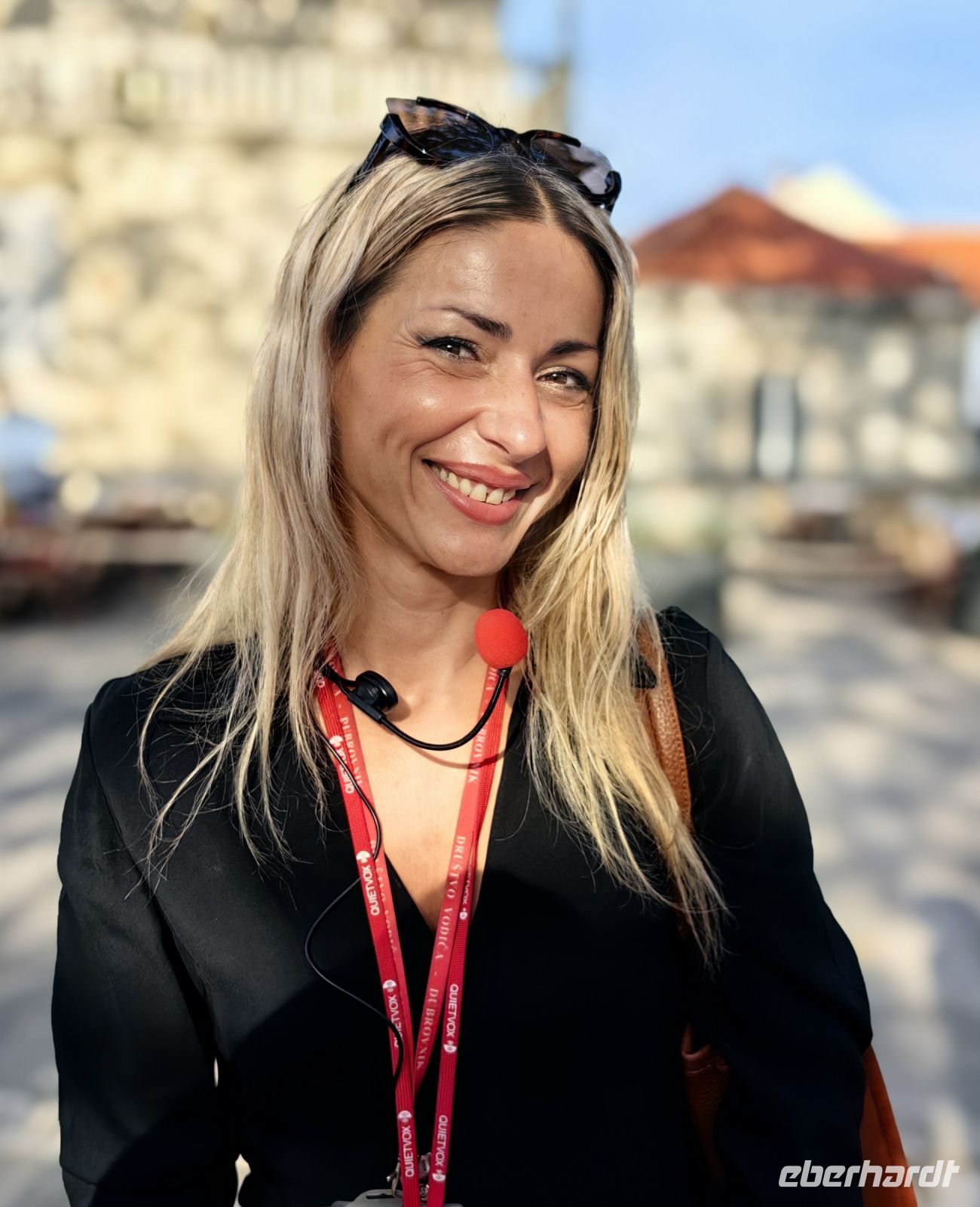 Heute verlassen wir unser Hotel zu Fuß und folgen dem schönen Lungo Mare direkt am Wasser entlang bis zum Hafen von Orebic. Ein schmucker junger Kapitän namens Tin setzt uns mit einem schnittigen Schnellboot in Korcula ab, wo wir Maja, unsere heutige Stadtführerin treffen.