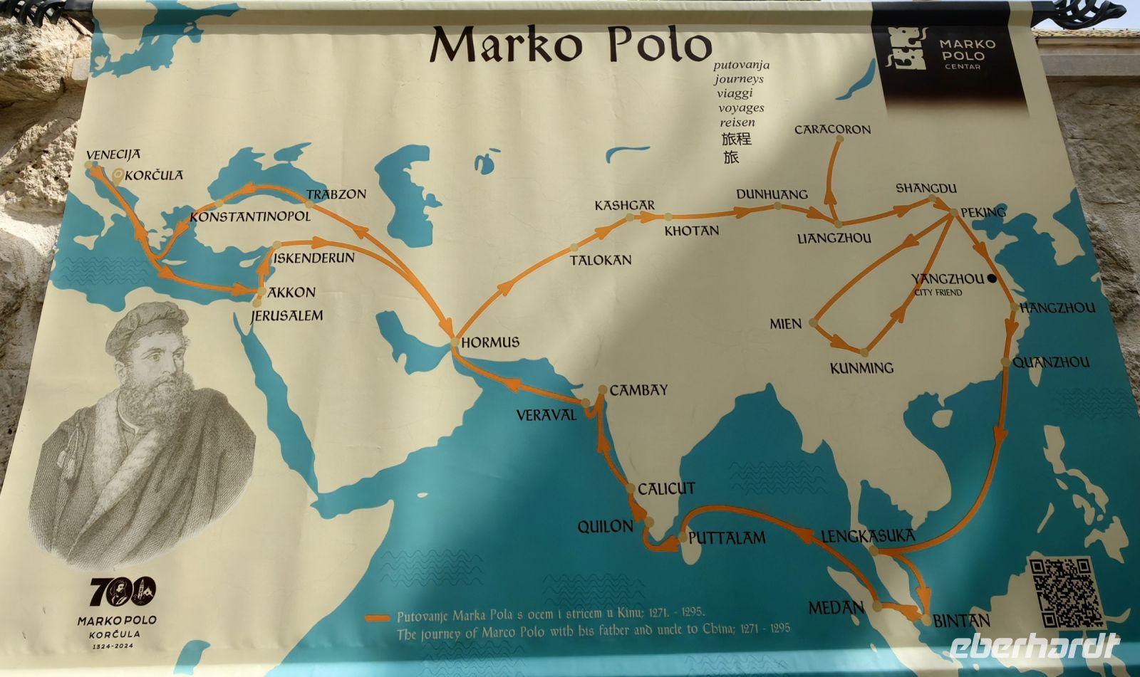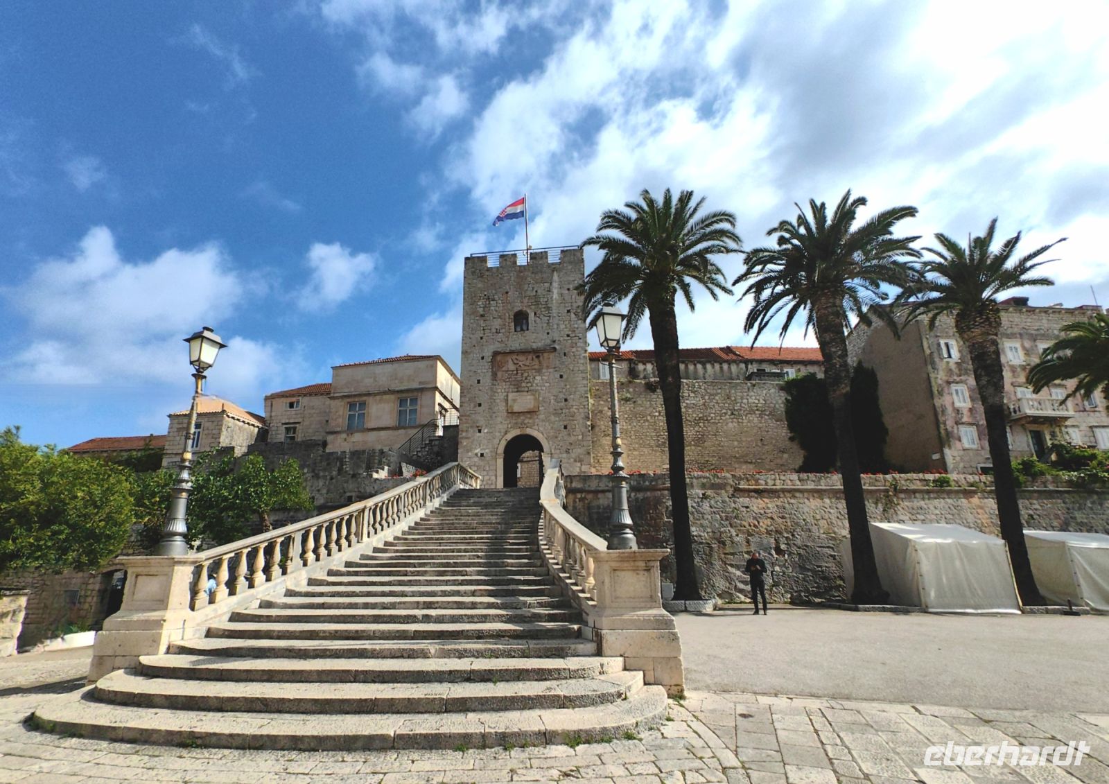 Um einen Fakt wird bis heute mit Venedig gestritten: wo ist Marco Polo geboren? Eine Geburtsurkunde wurde nie gefunden aber es gibt andere Hinweise darauf, daß er hier in Korcula geboren sein könnte. Nach umfangreichen Restaurationsmaßnahmen ist endlich das vermeintliche Geburtshaus wieder in seiner einstigen Pracht zu bewundern, allerdings ist das Museum im Inneren noch in Planung und so können wir das Haus nur von außen sehen.