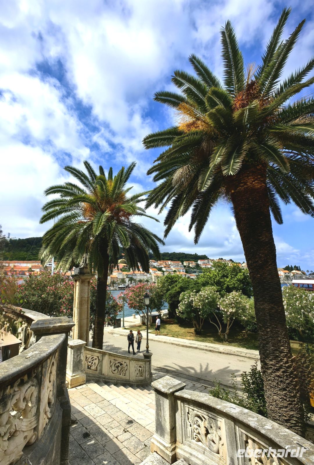 Vom Trubel, der in Dubrovnik am Vortag geherrscht hatte, bleibt die auf der Insel gelegene gleichnamige Hauptstadt verschont. Mit ihrem mediterranen Klima, den Pinienwäldern, Weinbergen, Stränden und dem glasklaren Wasser ist sie ein perfektes Ziel für einen erholsamen Urlaub fernab der Massen. Das Wetter könnte perfekter nicht sein, ein sonniger Frühsommertag mit 22 Grad.