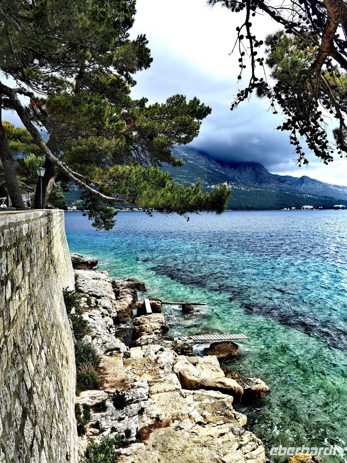 Weiter fahren wir an der Küste ein Stück in Richtung der Halbinsel Peljesac, die mit ihrer Länge von 66 km und einer Breite von nur sieben km nach Istrien die zweitgrößte Kroatiens ist. Die Landschaft der Halbinsel wird durch den Gebirgszug des Dinaragebirges im Landesinneren und den malerischen Orten in den Tälern beherrscht. Wir sehen die üppige mediterrane Vegetation in den Talsenken: Zypressen, Pinien, Weißkiefern und unzählige Weinreben und alles wird vom Sveti Ilja überragt, von dessen Gipfel mit 936 Metern man bei gutem Wetter bis Italien blicken kann.