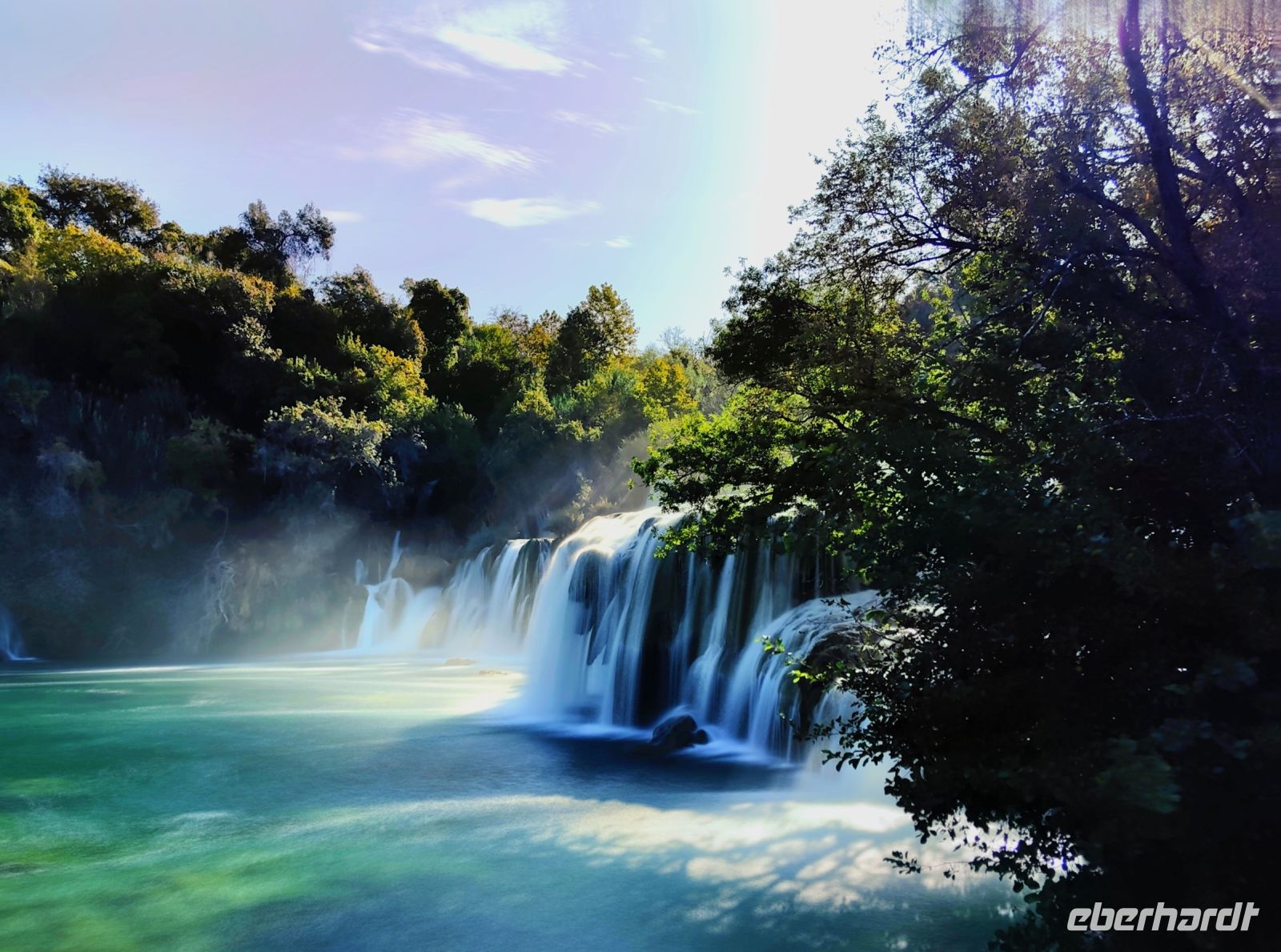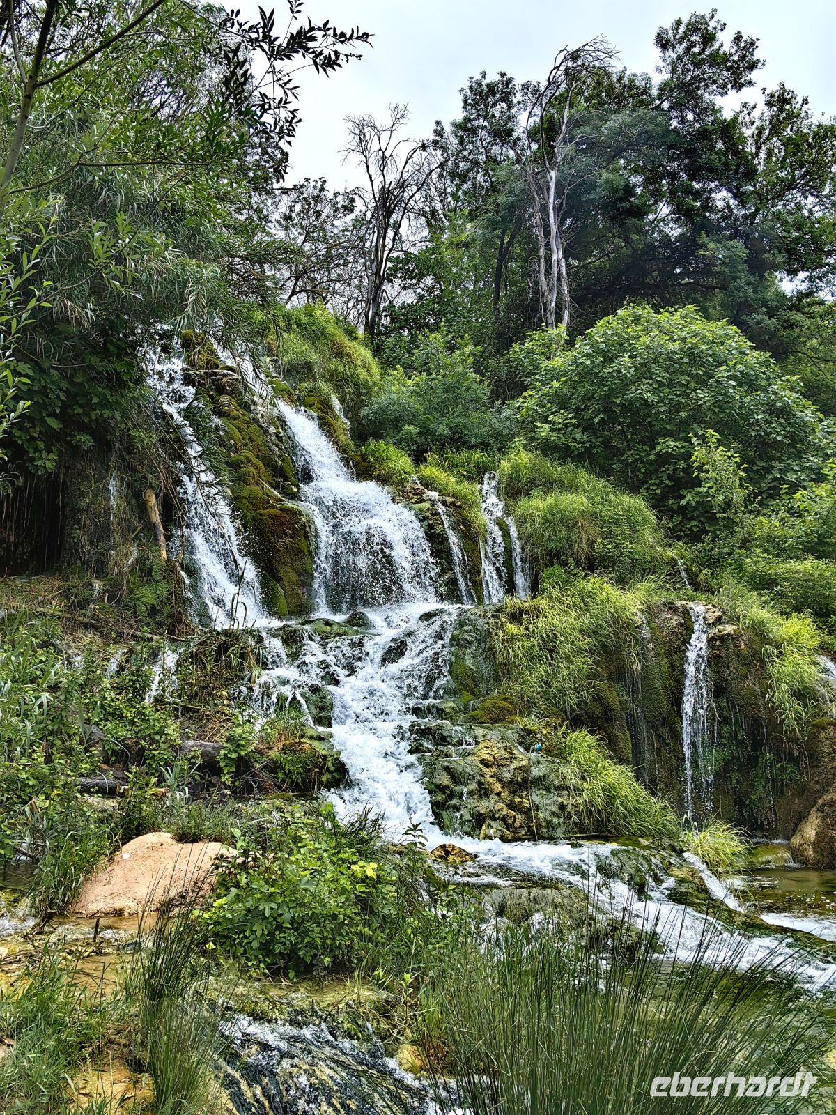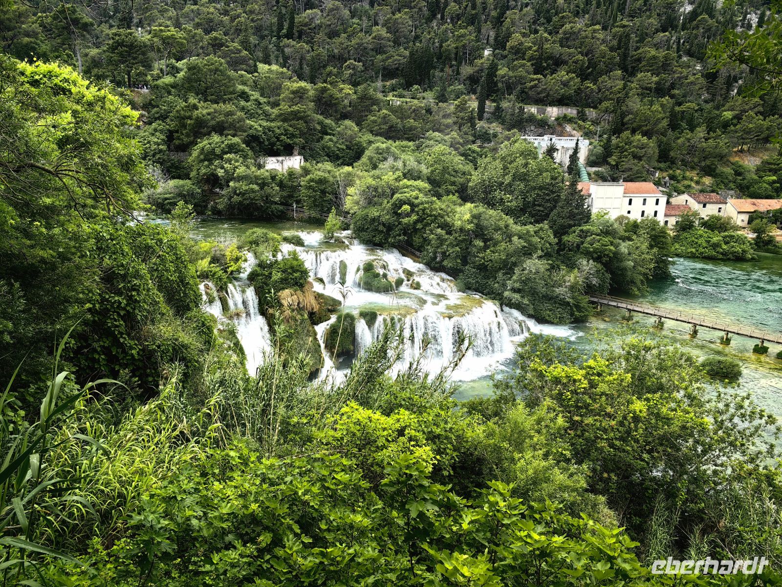 Wir tauchen ein in die paradiesisch dahin plätschernde Flußlandschaft des Skradinski Buk, die Karpfen stehen förmlich im Wasser und scheinen auf ein paar Brotkrumen zu warten. Die Krka, der Fluß, der sich durch den gesamten Nationalpark schlängelt, fließt canyonartige Schluchten entlang und an den Ufern findet man zahlreiche Festungsruinen, elfengleiche verwunschene Wälder, uralte Maulbeerbäume und etliche Aussichtspunkte, von denen man wundervolle Ausblicke hat. Dieser Nationalpark begeistert uns fast noch mehr als Plitvice wenige Tage zuvor, die Stille ist magisch und wir machen unzählige Erinnerungsfotos von der Umgebung und den Wasserfällen.