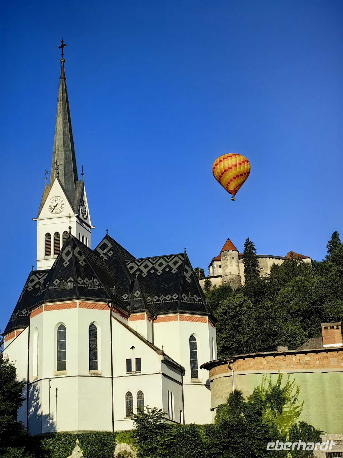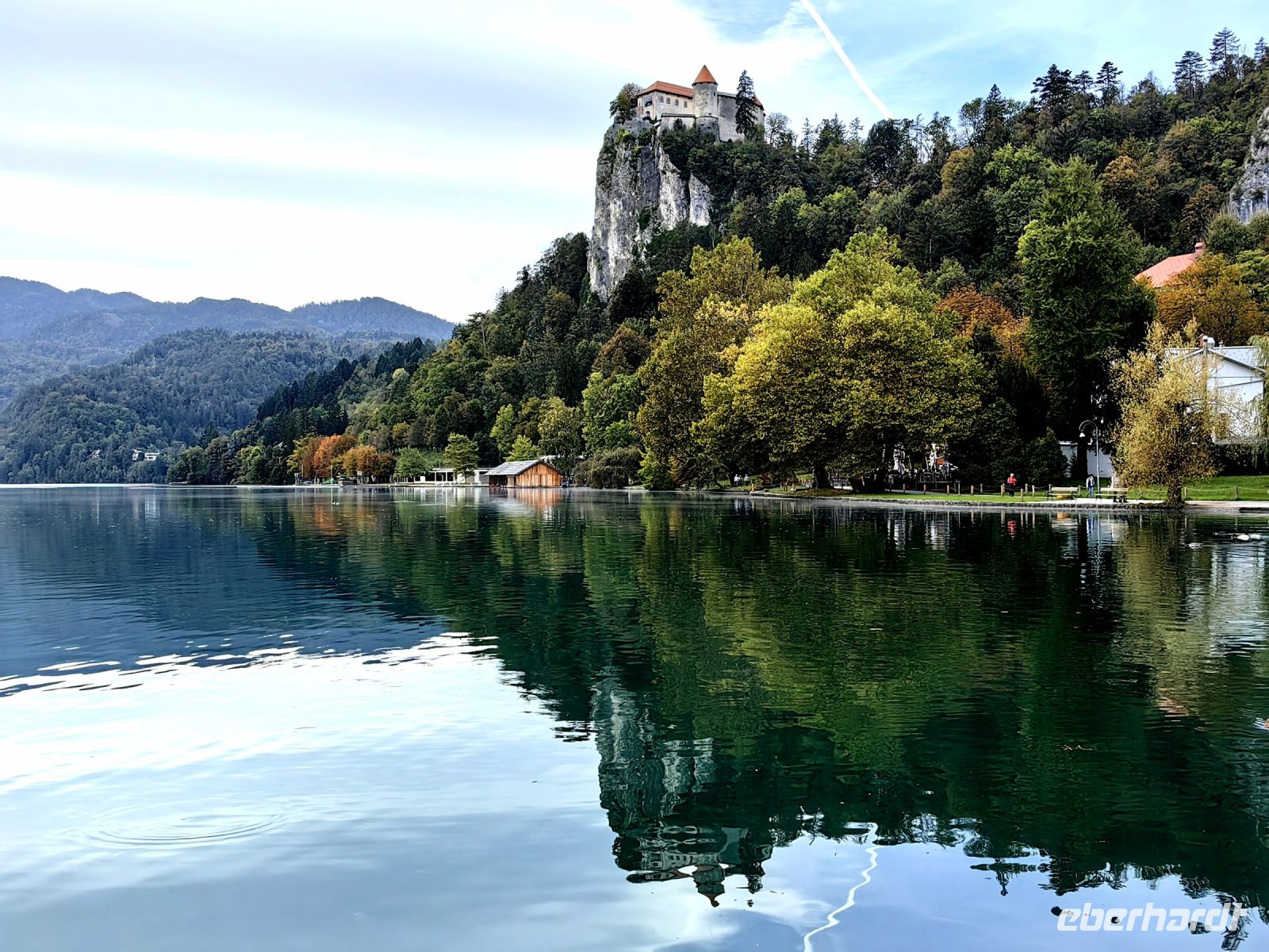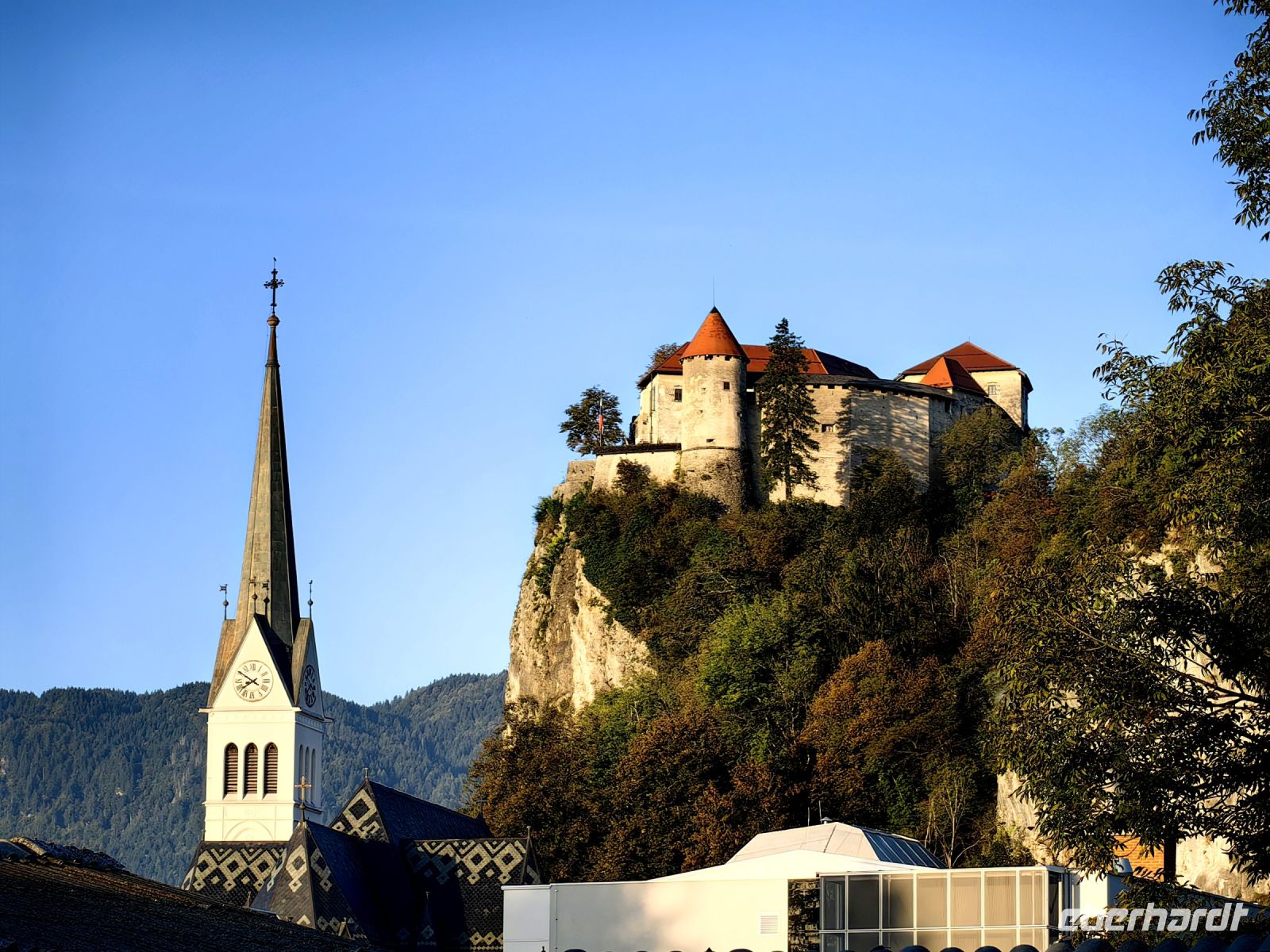Der slowenische Luftkurort Bled, liegt an den Ausläufern der Julischen Alpen am gleichnamigen Gletschersee und das Panorama gleicht ohne Übertreibung einem Postkartenmotiv. Über allem thront hoch oben auf einem Felsvorsprung die Burg Bled und dahinter sieht man immer wieder die Gipfel des nahe gelegenen Bergmassivs. Ein gelungener Abschluß also, der so manchen Gast über Slowenien als nächstes Urlaubsziel nachdenken läßt.