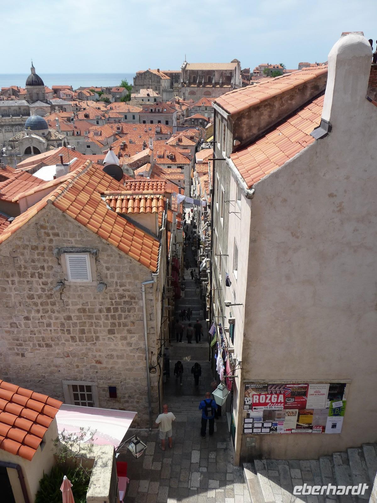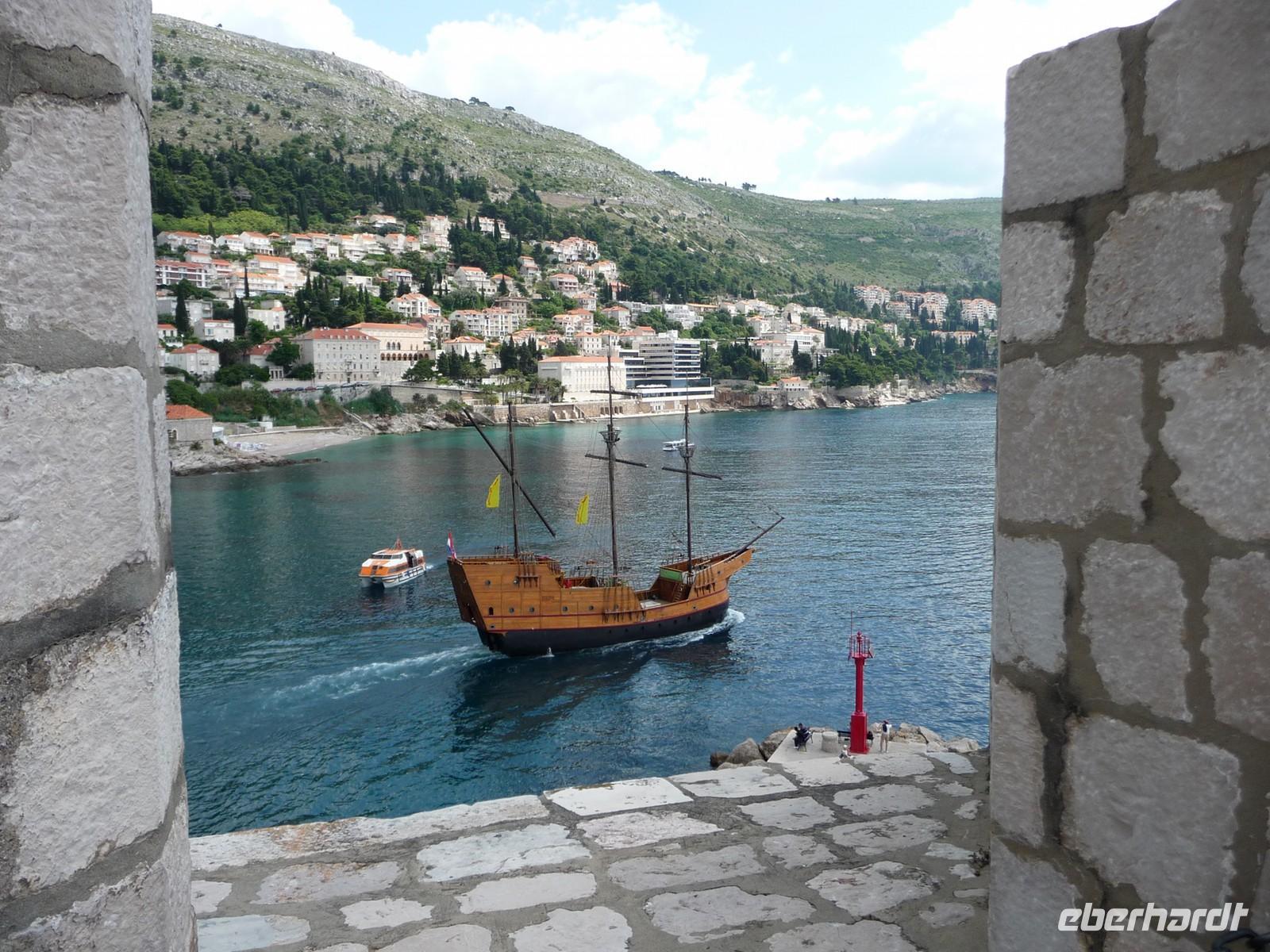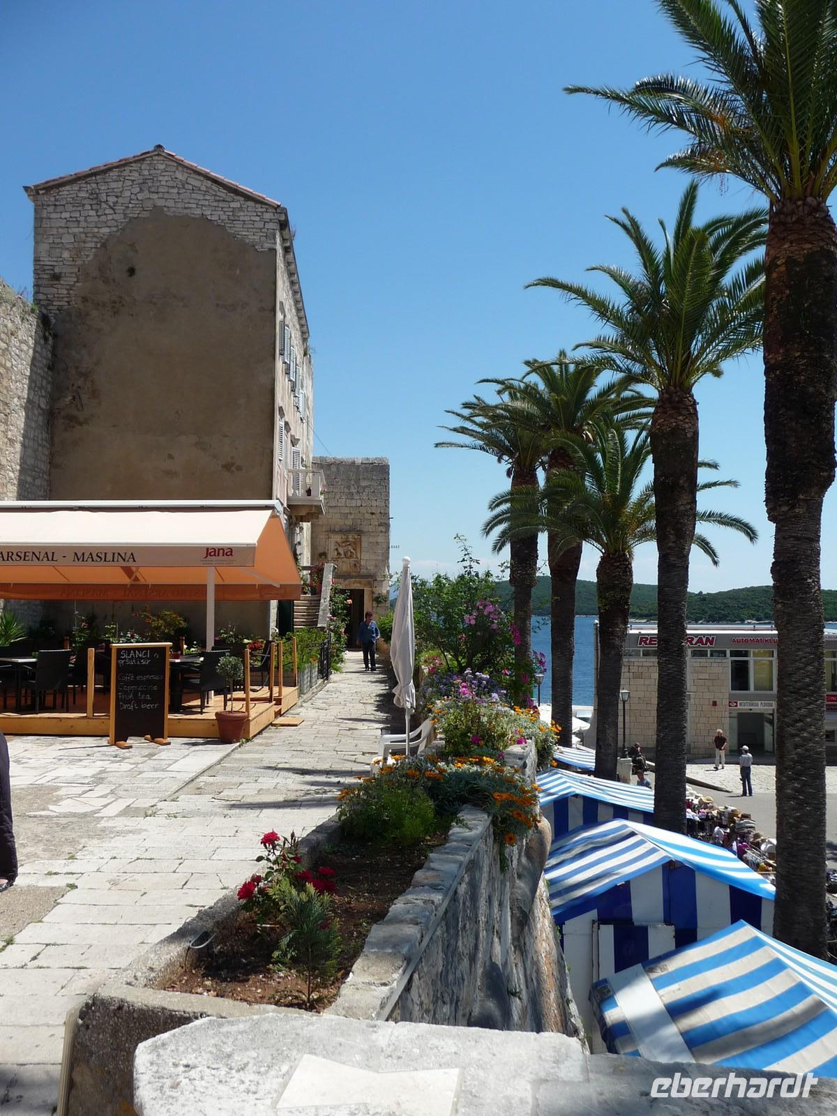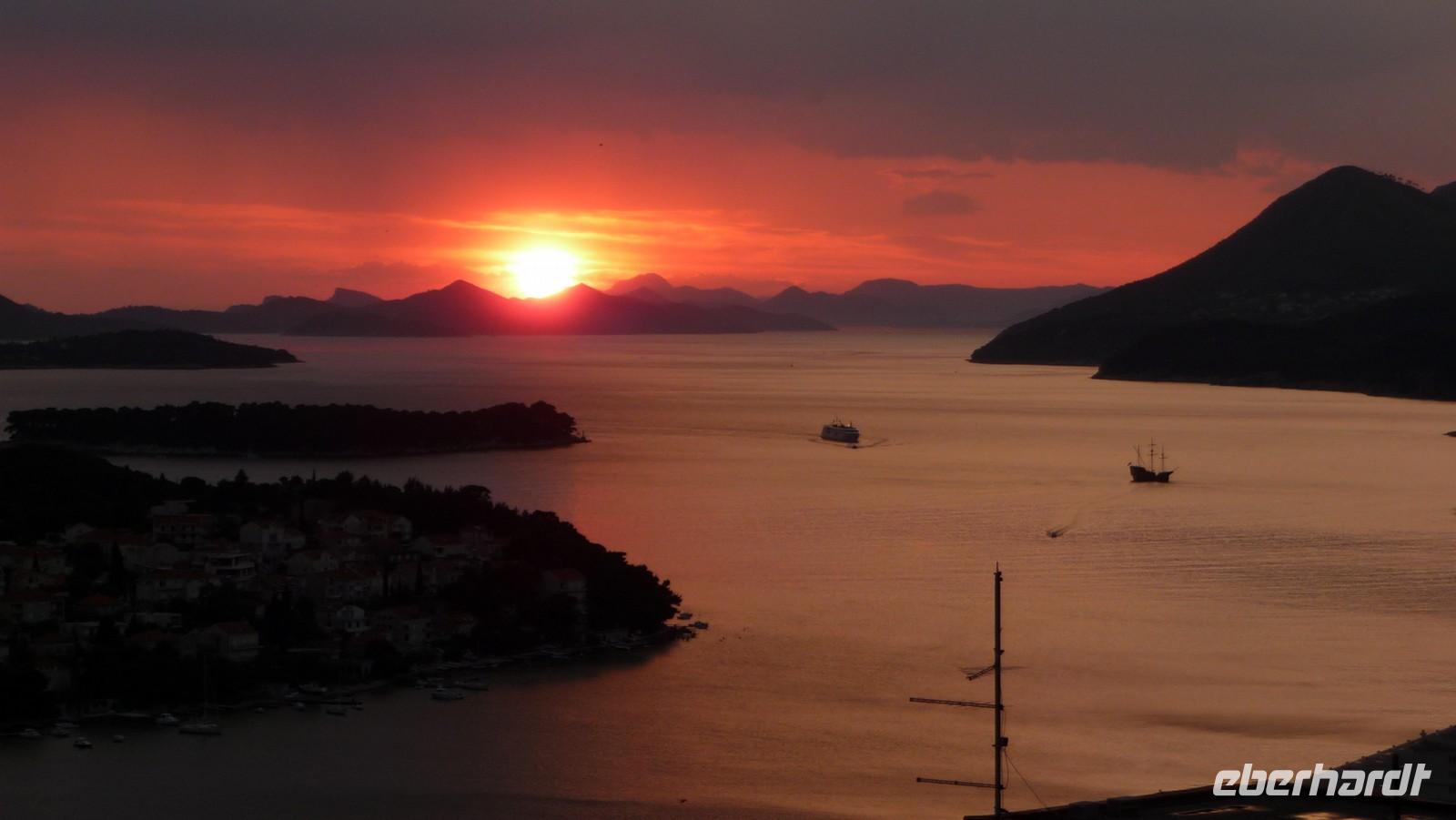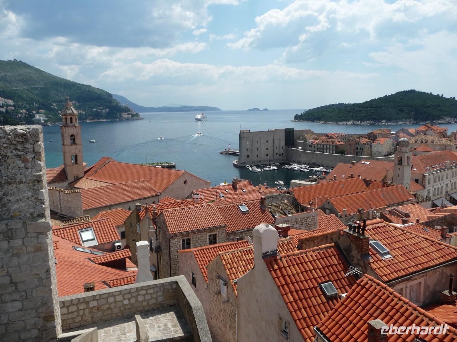 Dann die Fahrt durchs Velebit-Gebirge nach Split, der beeindruckenden Hafenstadt an der Adria mit den historischen Gassen der Altstadt und dem römischen Kaiserpalast, in dem eine Blumenausstellung die Erklärungen von Vesna optisch ergänzte. Die Weiterfahrt entlang der Markarska Riviera, der Neretva-Mündung und der Halbinsel Pelesac nach Dubrovnik. Diese einzigartige Stadt an der Adria zeigte uns Antea und wir erkundeten sie weiter über den Weg entlang der Stadtmauer und eine Fahrt mit der Seilbahn zum Aussichtsberg.