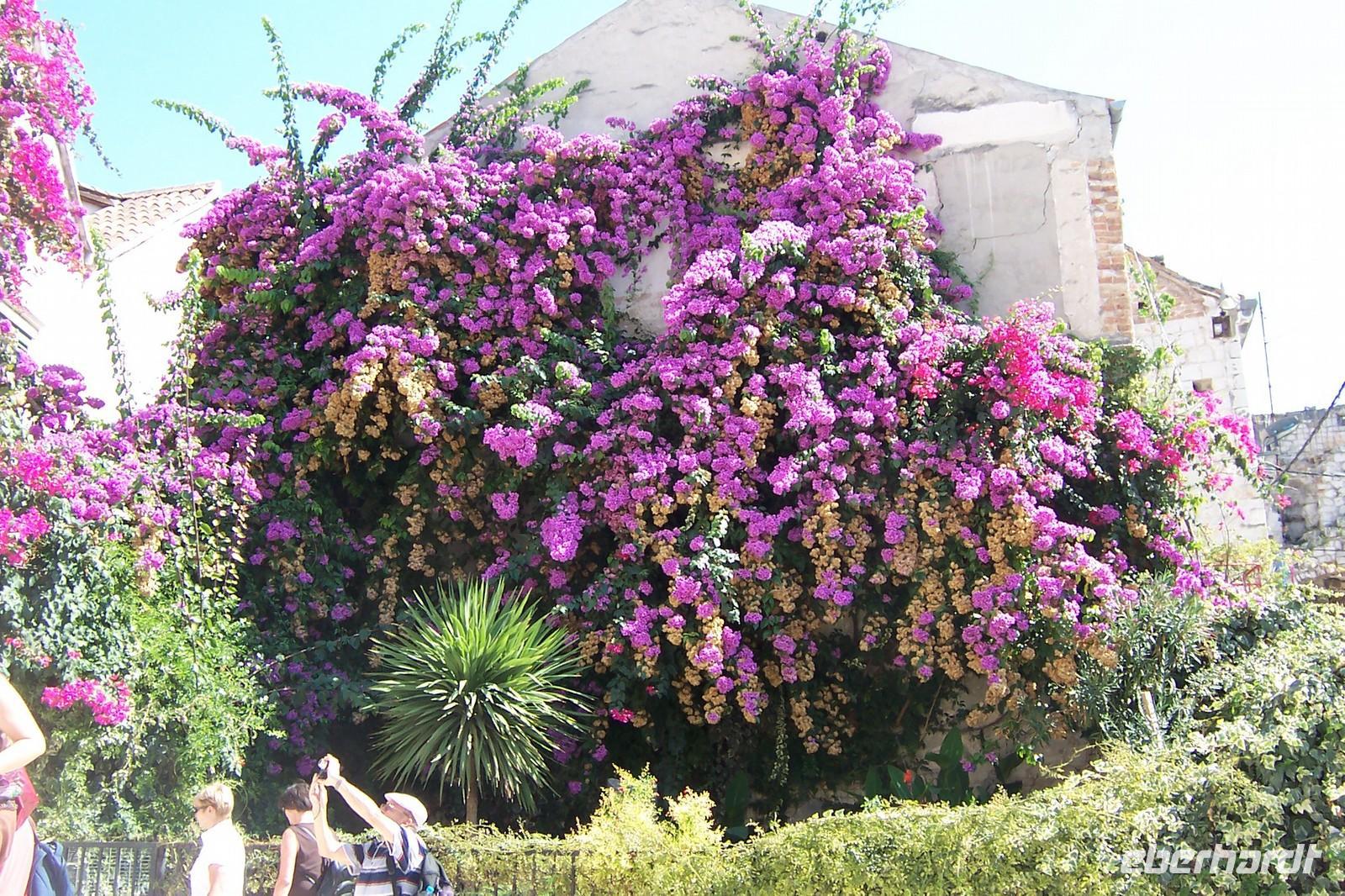 Rund 500 km Weg haben wir heute vor uns und wir wollen zeitig aufbrechen. So einfach war es aber nicht. Fünf Busse wollten 8.00 Uhr starten, d.h. für das Hotel ausgesprochen hohe Anforderung diese Abreise auch gut ?zu Händeln?. Mit etwas Verspätung ging es aber endlich los. Heute führt uns unser Weg aus dem Hinterland an die blaue Adria. Auf dem Weg nach Split beobachten wir auch Kriegsschäden des ?Bruderkrieges?. Wir haben hohe Temperaturen bis 36 Grad und bevor wir Split erreichen, wird in einer Pause die Garderobe gewechselt.