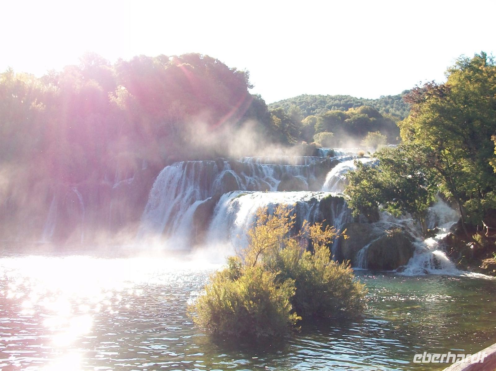 Schon von weitem kündigt sich das Rauschen des Wasserfalls an. Wir befinden uns im Krka- Nationalpark und gehen zum oberen Aussichtspunkt um einen ersten Blick auf den Skradinski Buk