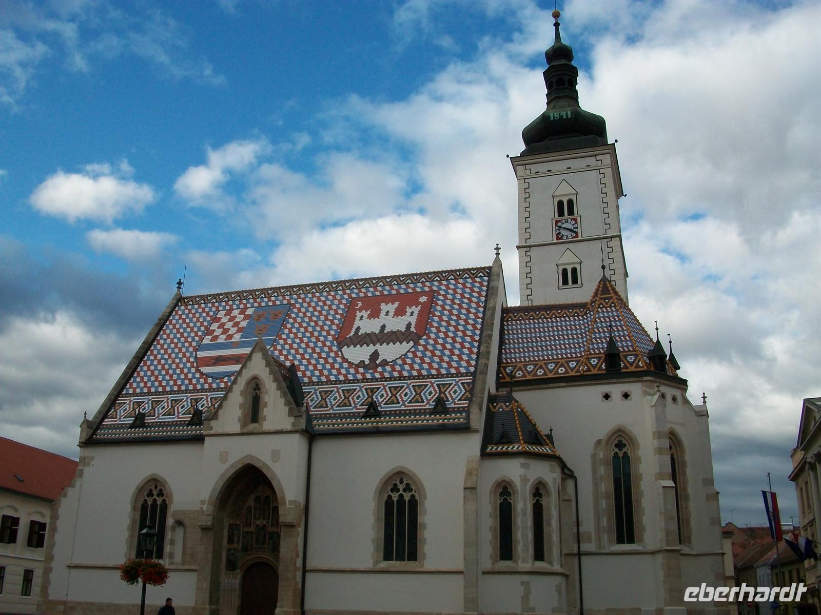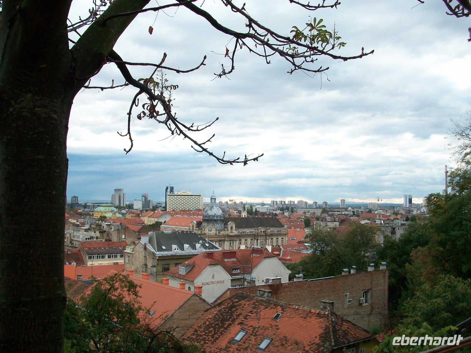 Marienbild an. Mit Milovan gehen wir hinauf zum Markusplatz, staunen über die bunten Dachziegel der Markuskirche und gehen über den Jesuitenplatz zum Aussichtspunkt der uns einen weiten Blick über das Häusermeer dieser interessanten Stadt werfen lässt. Die dunklen Wolken sind nur noch am Horizont zu sehen, sie werden uns auf dieser Reise nicht mehr stören.