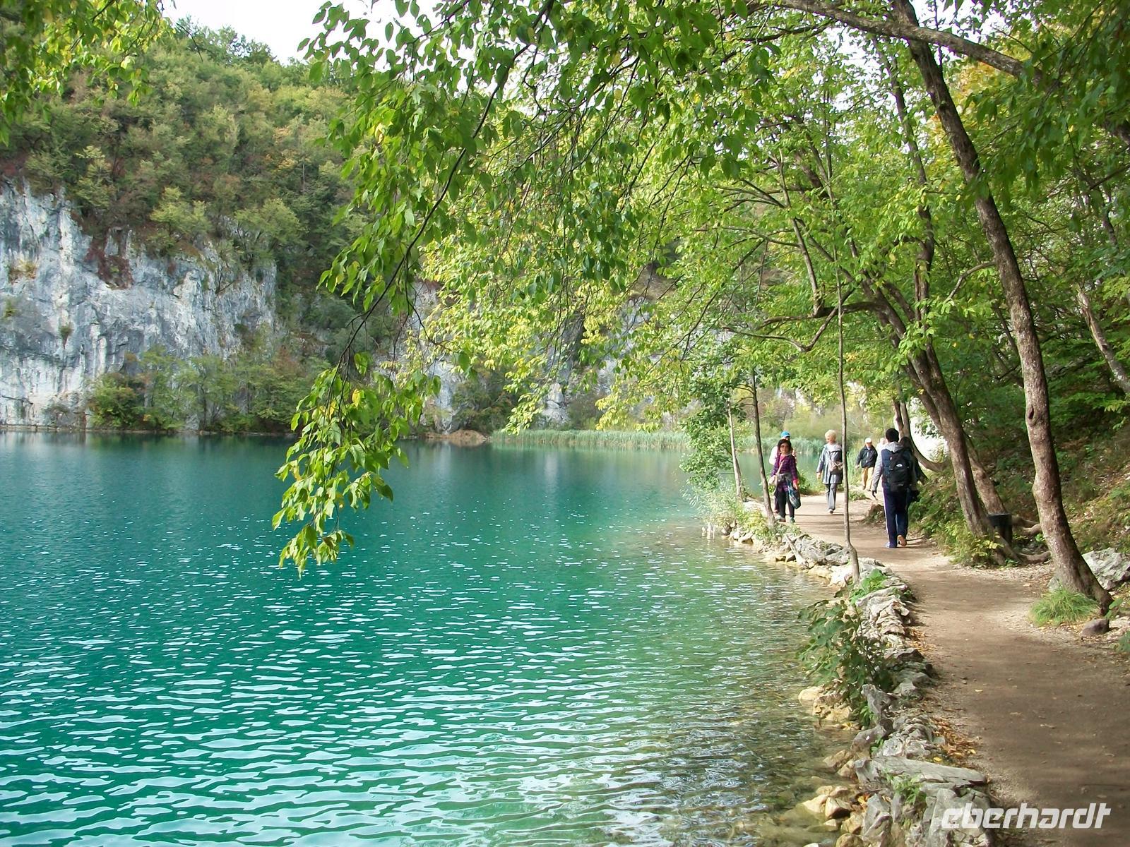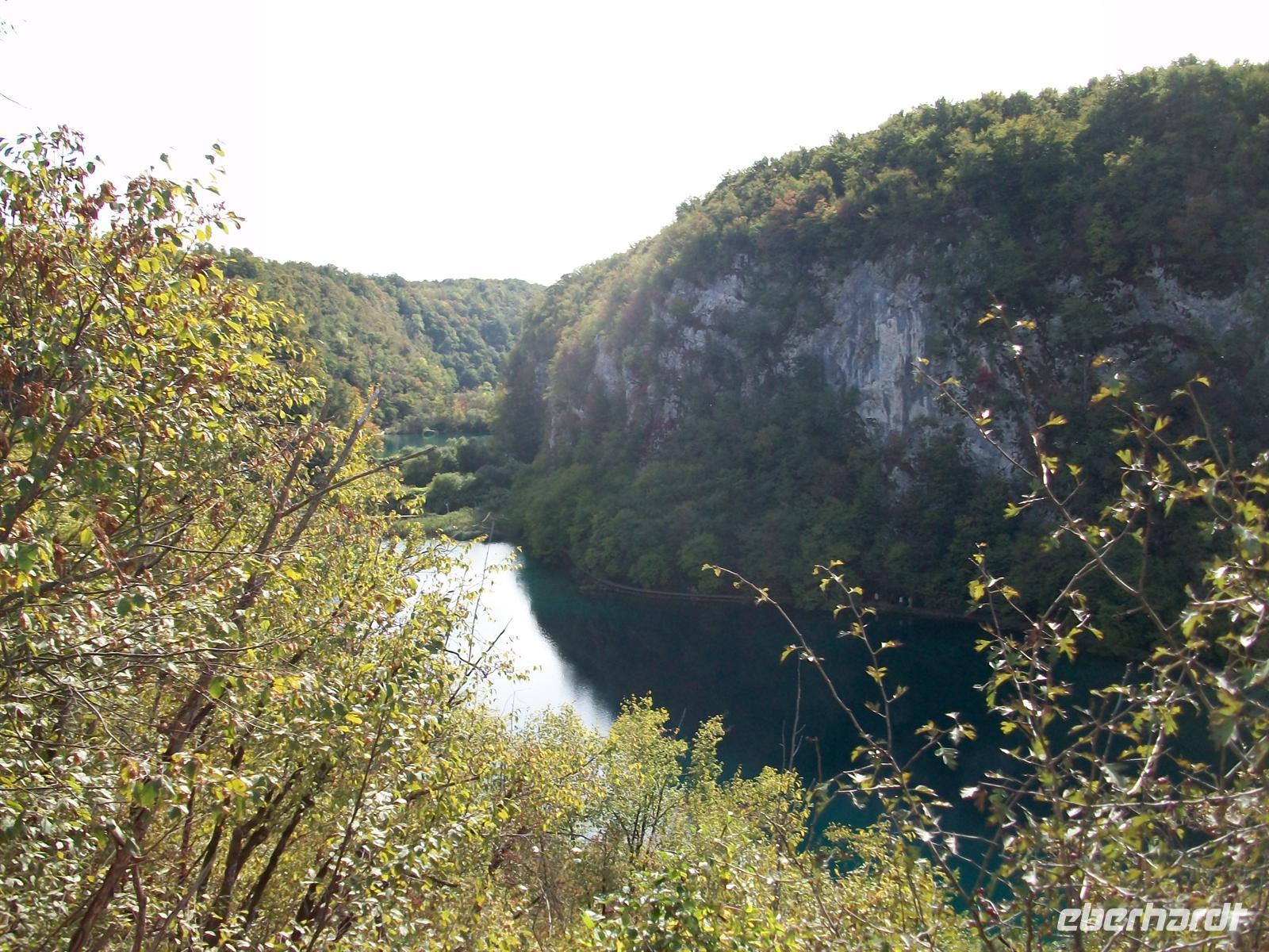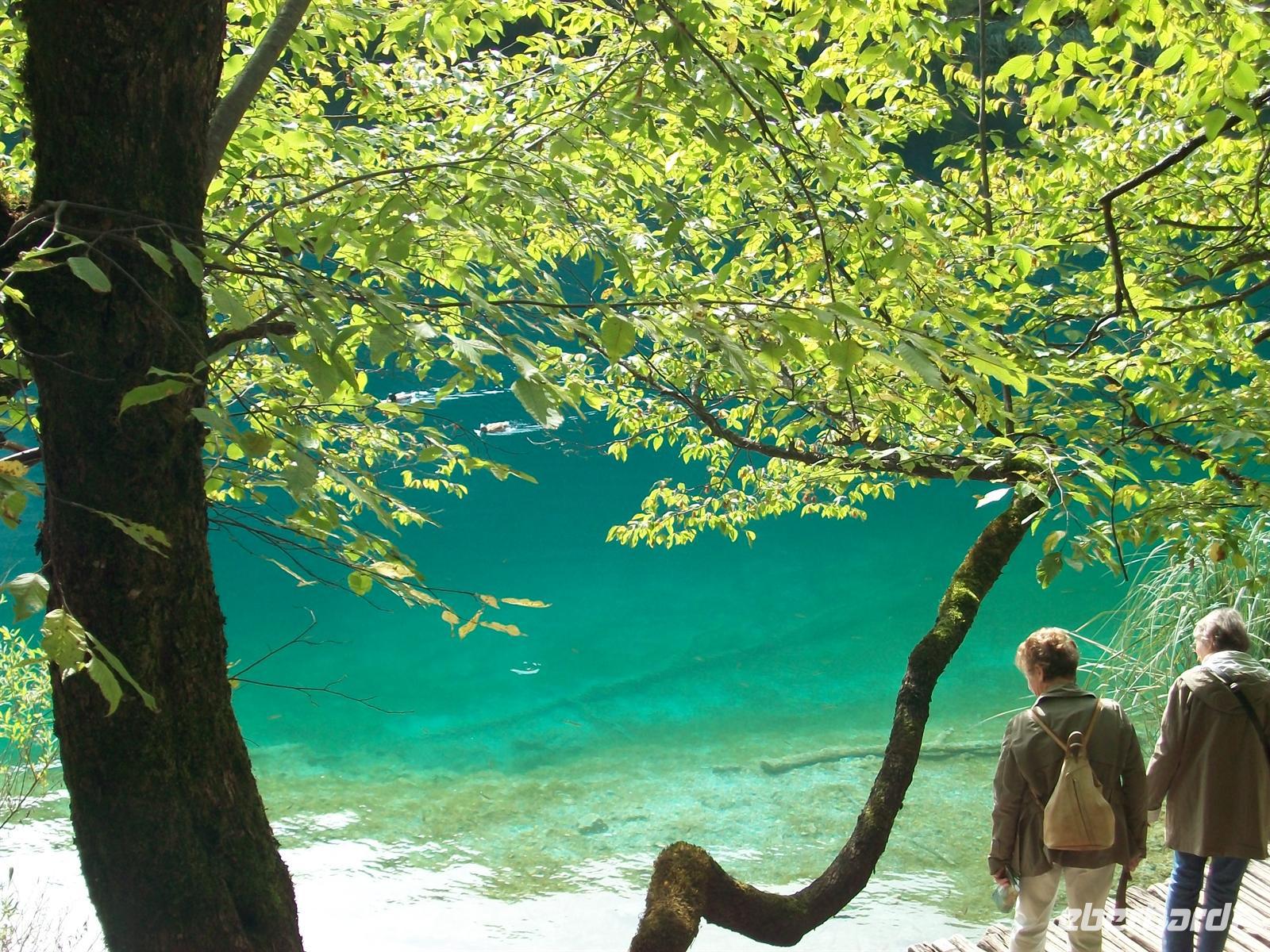 Sonnig aber kühl empfängt uns der Nationalpark. Nach dem nahrhaften Mittagessen im Nationalitätenrestaurant sind wir nun im Park unterwegs. Die Sonnenstrahlen funkeln in zahlreichen Reflexen im türkisfarbenen Wasser der Seen; die Blätter der Bäume tragen schon die herbstlich bunte Farbe, und in den klaren Fluten stehen die Saiblinge und genießen auf ihre Art den schönen Tag.