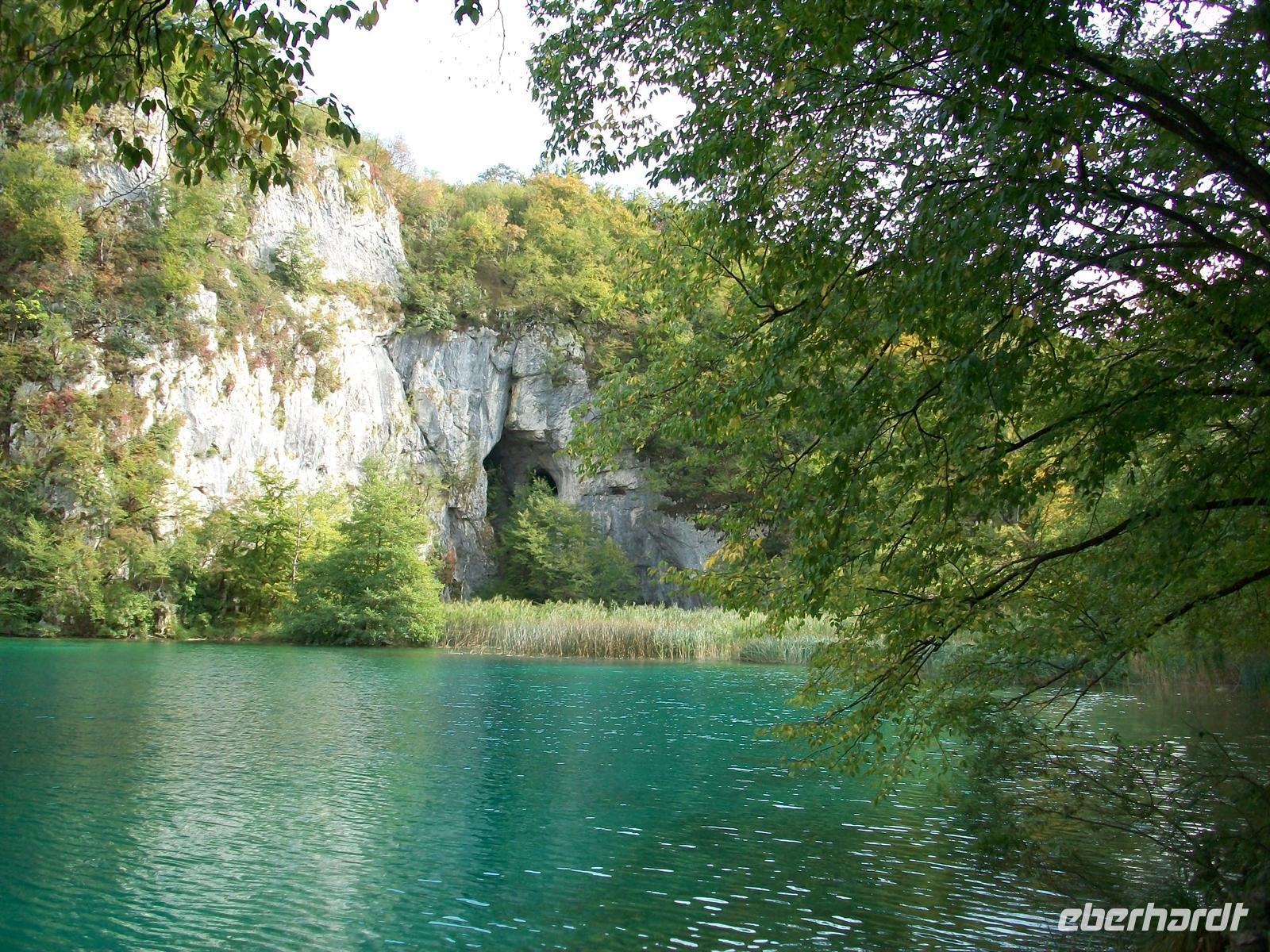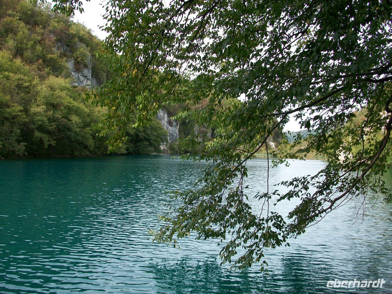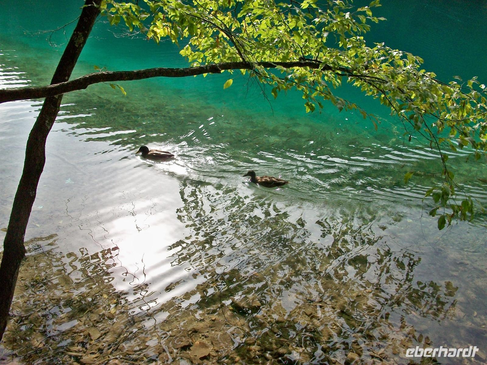 Sonnig aber kühl empfängt uns der Nationalpark. Nach dem nahrhaften Mittagessen im Nationalitätenrestaurant sind wir nun im Park unterwegs. Die Sonnenstrahlen funkeln in zahlreichen Reflexen im türkisfarbenen Wasser der Seen; die Blätter der Bäume tragen schon die herbstlich bunte Farbe, und in den klaren Fluten stehen die Saiblinge und genießen auf ihre Art den schönen Tag.