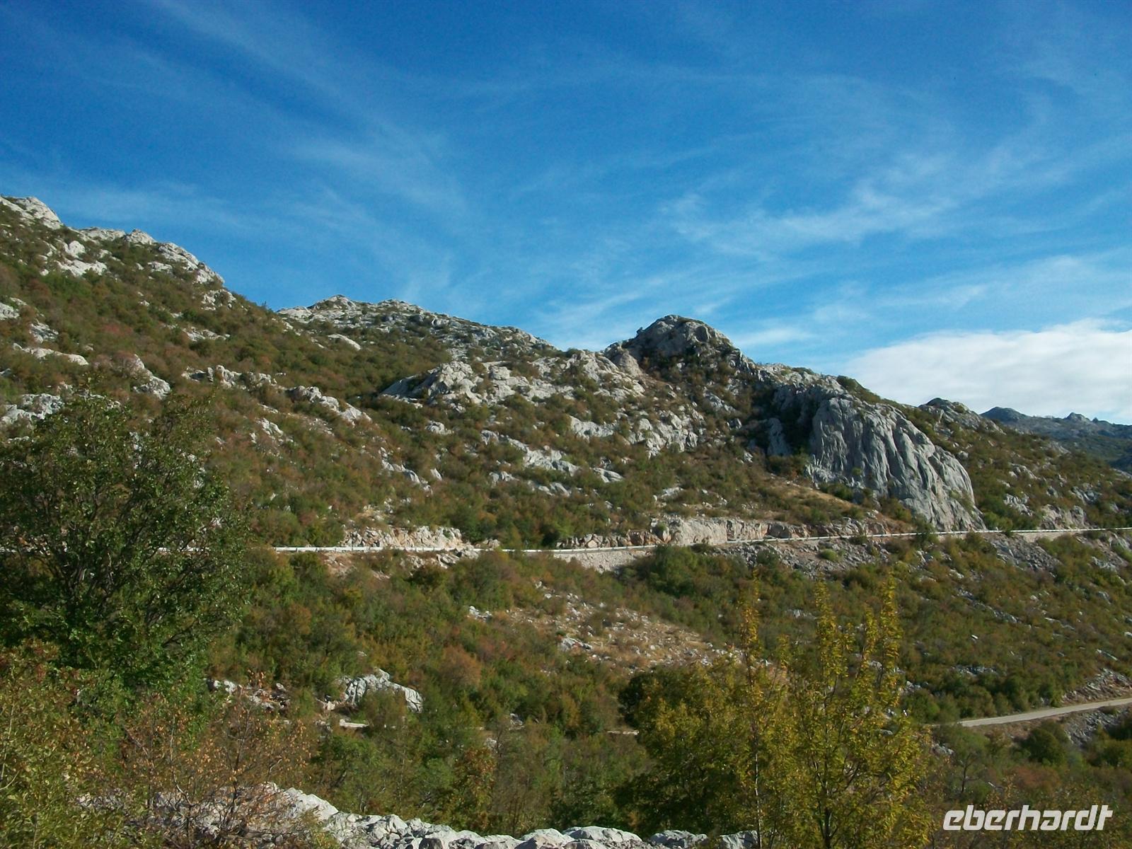 überschritten und sind nun auf der Landstraße unterwegs. Der Herbst hat hier schon Einzug gehalten, mit einer leichten Laubfärbung kündigt er die neue Jahreszeit an. Das sticht um so mehr ins Auge da wir uns bisher im immergrünen Bereich der Adria befunden haben.