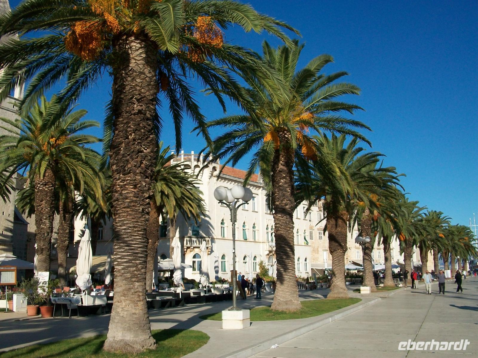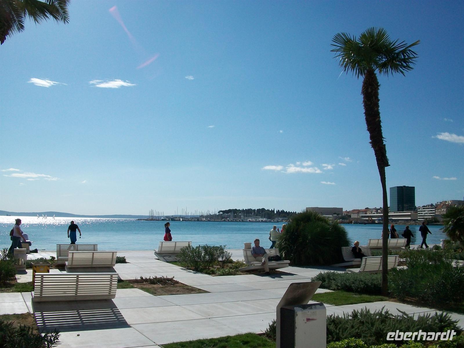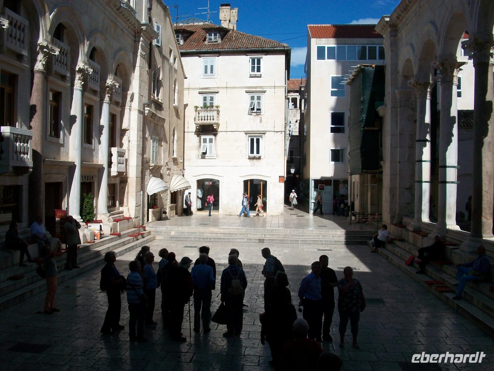Bald kommt die Wasserfläche der Adria in Sichtweite zu der wir nun hinunterfahren und kurz nach zwölf erreichen wir Split. Beim Aussteigen umfängt uns angenehm warme Luft; den Herbst haben wir erst einmal hinter uns gelassen, hier sind wir noch einmal im Sommer angelangt. Unsere Stadtführerin Vesna wird uns in den nächsten 90 Minuten mitnehmen auf eine Zeitreise bis ins 3. Jahrhundert, sie wird uns die Hinterlassenschaften des Römischen Kaisers Diokletian zeigen um dann mit uns ins Mittelalter vorzustoßen- hinein in die Zeit der Venezianer. Der Zauber dieser Zeitreise ist hier in Split besonders groß. Bis 15.00 Uhr verbleibt unseren Gästen noch etwas Freizeit, dann setzen wir unsere Fahrt fort die in den nächsten Stunden direkt an der Adria- Uferstraße entlang führen wird. Die Kroaten nennen sie die „Jadranska Magistrala“ und sie kann mit Fug und recht als eine der schönsten Uferstraßen Europas bezeichnet werden, für mich persönlich ist sie die Schönste!