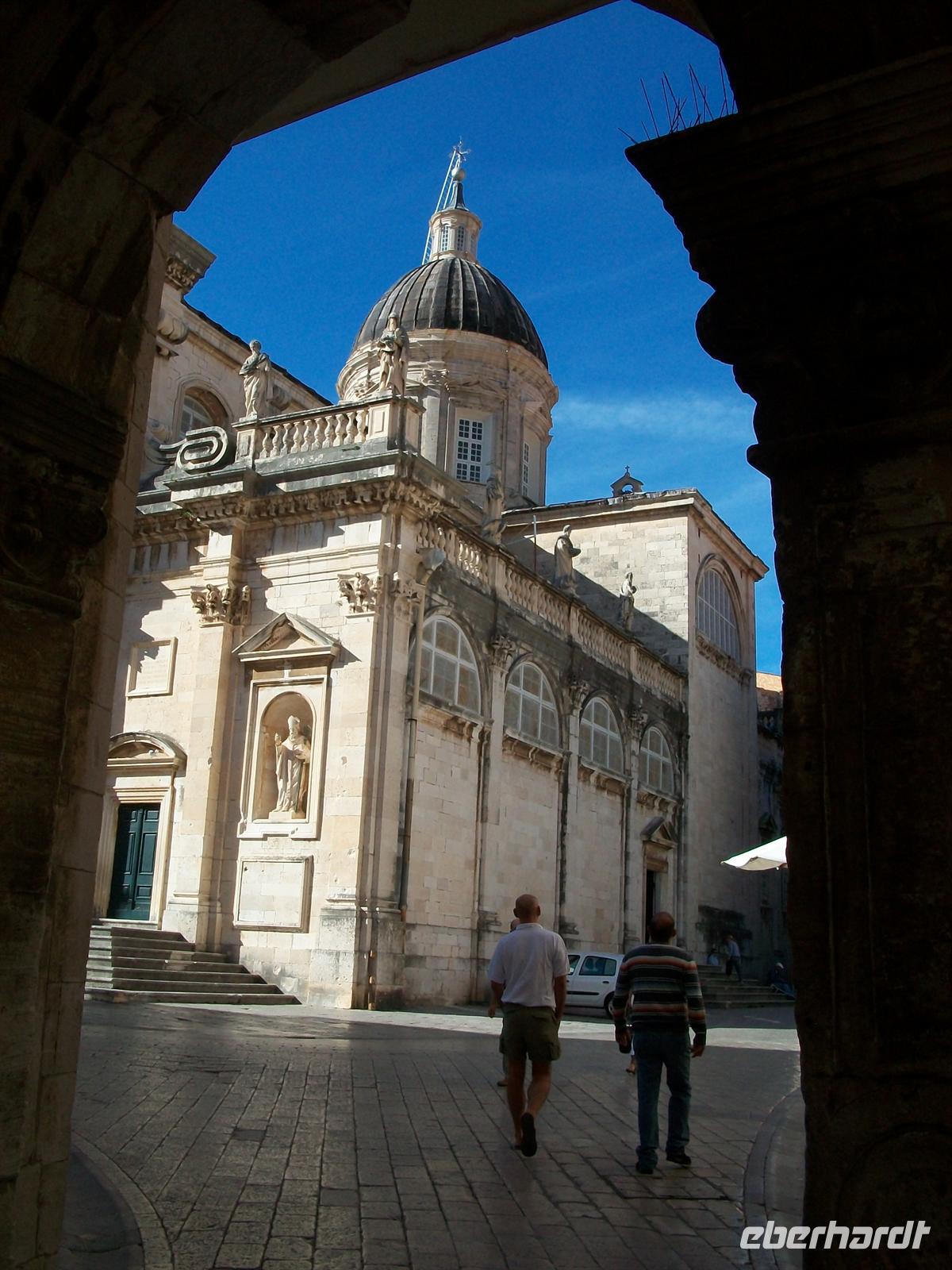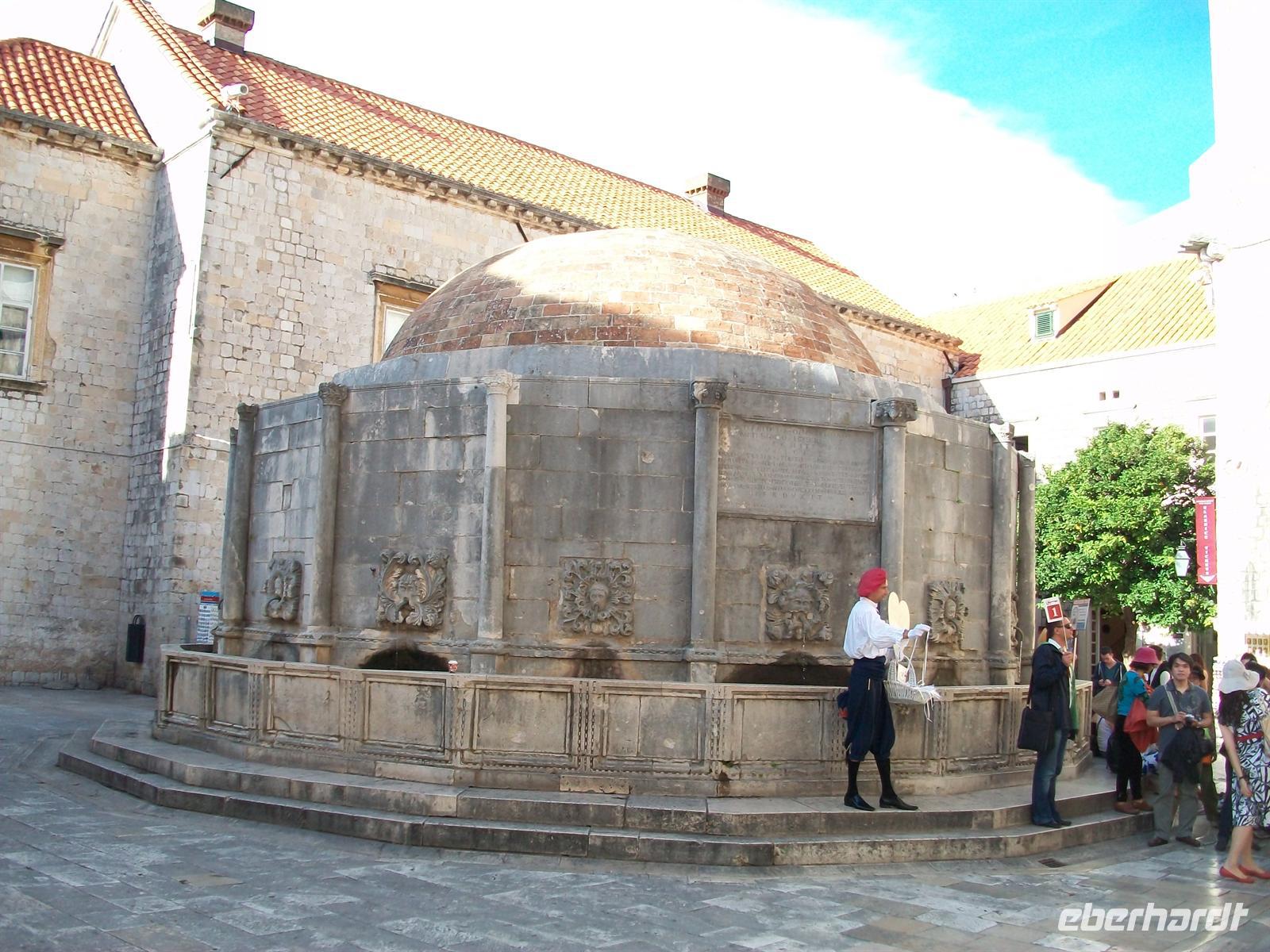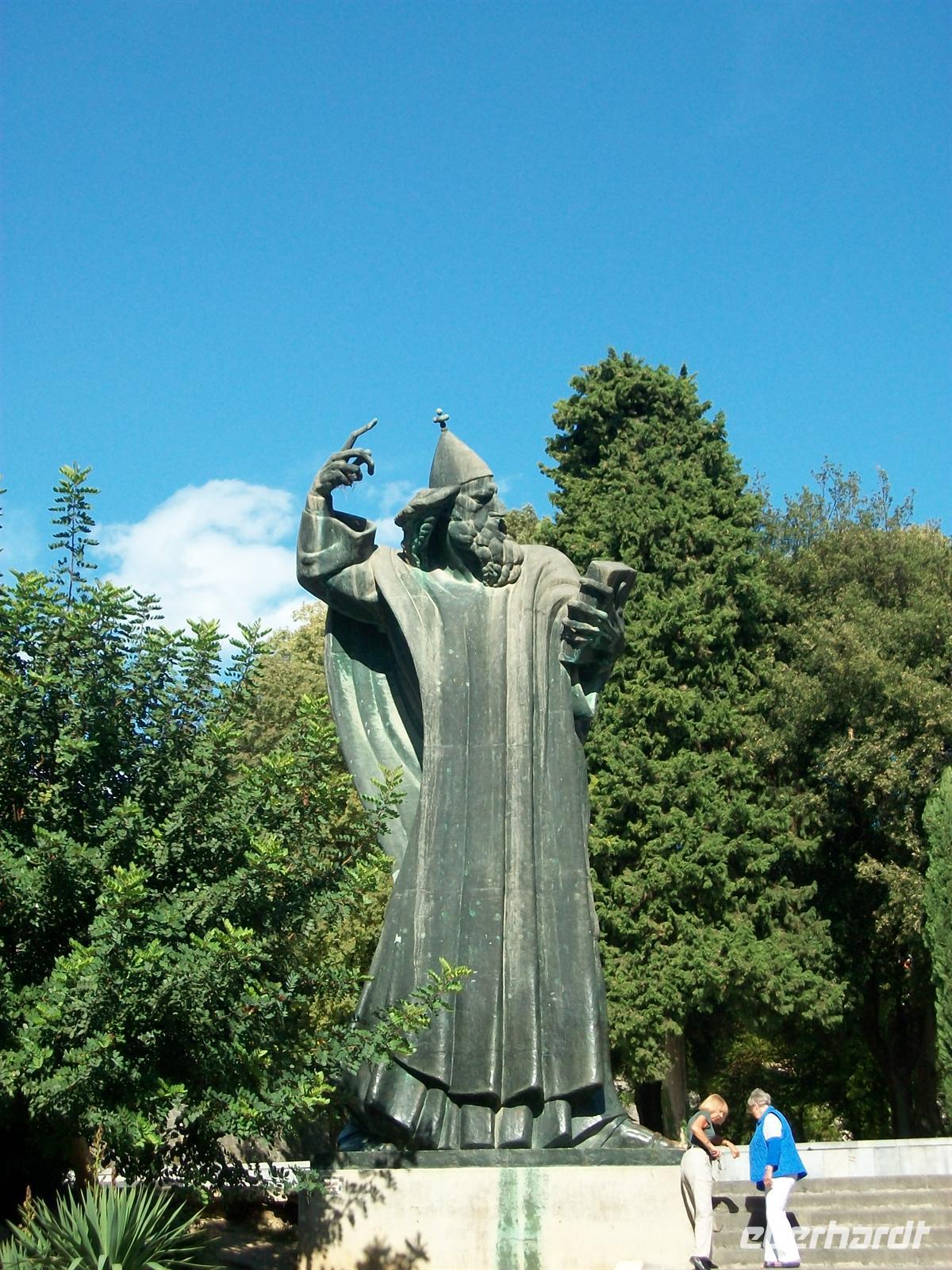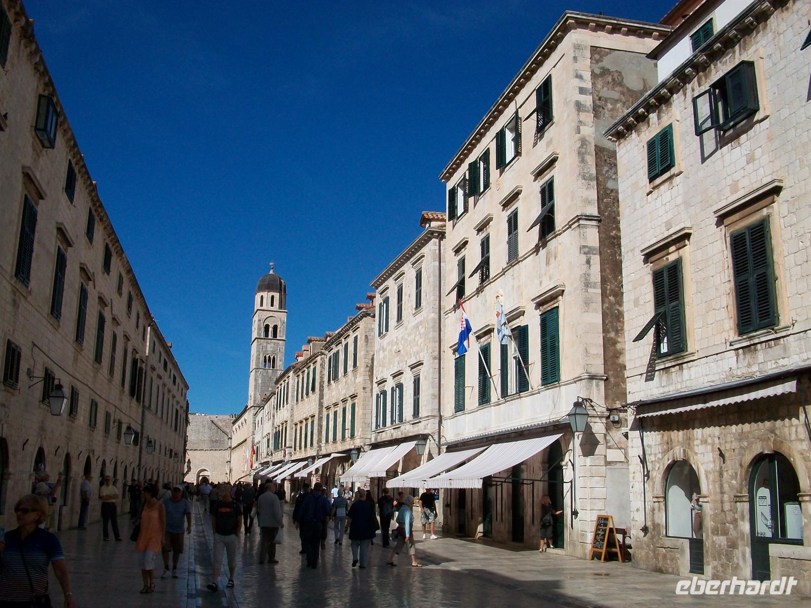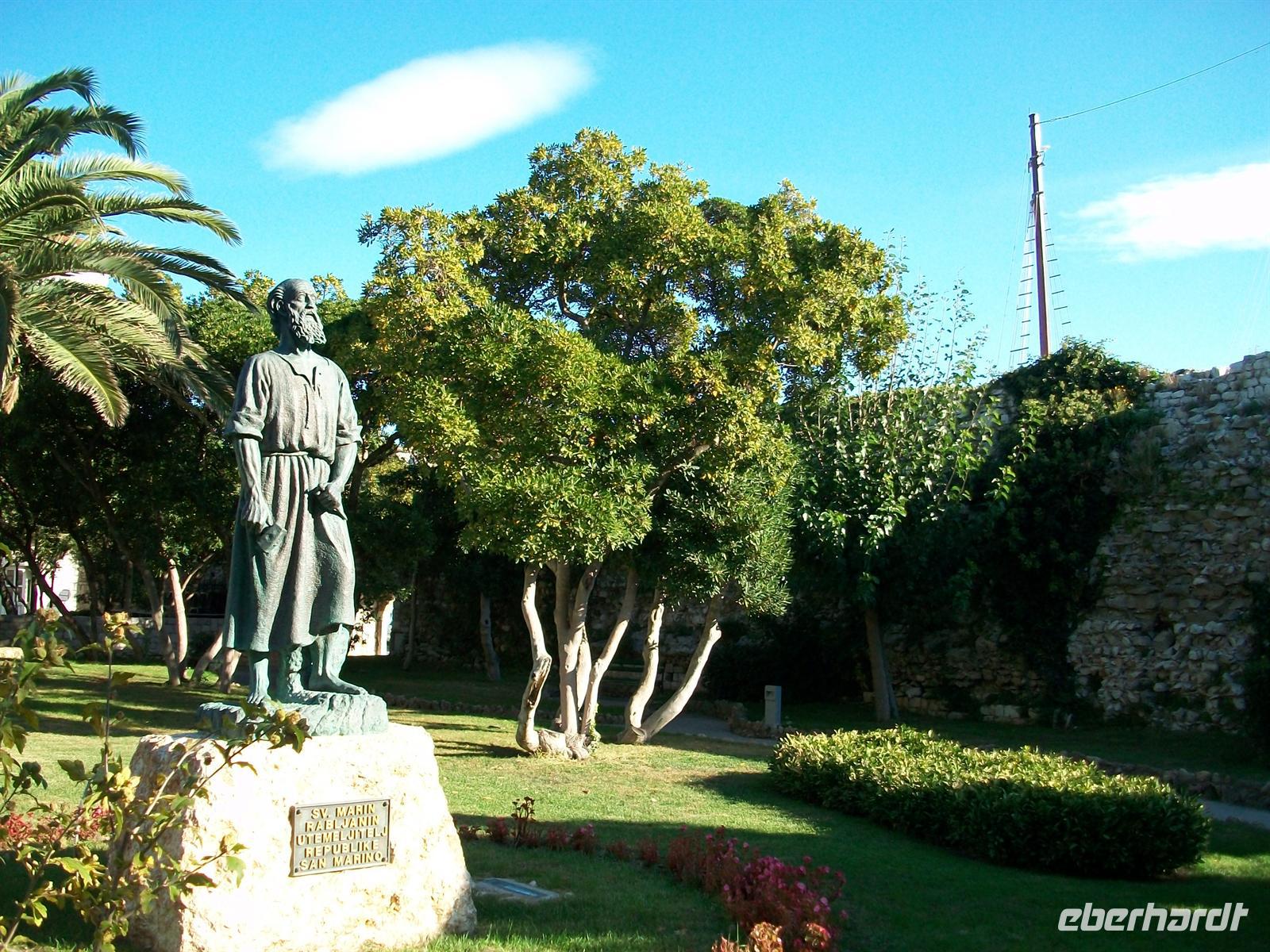 Mächtige Mauern umschließen die Altstadt, ein quirliges Leben herrscht vor dem Stadttor am Pile- Platz. Reisebusse bringen die Gäste von den Kreuzfahrtschiffen, welche sich diese großartige „“ anschauen möchten. Da wir etwas eher gestartet sind ist das Treiben in der Altstadt noch nicht so groß. Mit unserem Stadtführer Albin betreten wir, nicht ohne vom Stadtpatron Blasius einen steinernen Gruß bekommen zu haben Dubrovnik, die einst mächtige Stadtrepublik, die erst durch Napoleon der Autonomie beraubt wurde, die sie über Jahrhunderte