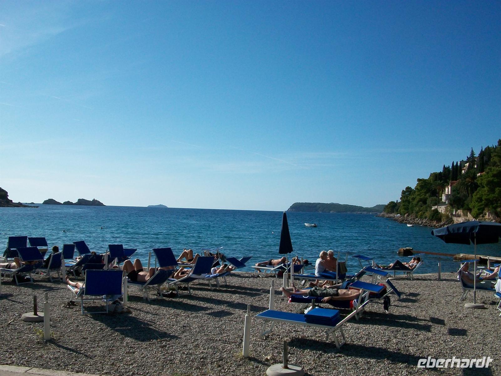 Mal ganz unten am Wasser, dann wieder über hundert Meter über der blauen Adria geht die Fahrt vorbei an zahlreichen Buchten und Badestränden, an denen selbst zu dieser Jahreszeit noch Hochbetrieb herrscht, unserem heutigen Ziel entgegen- Dubrovnik.