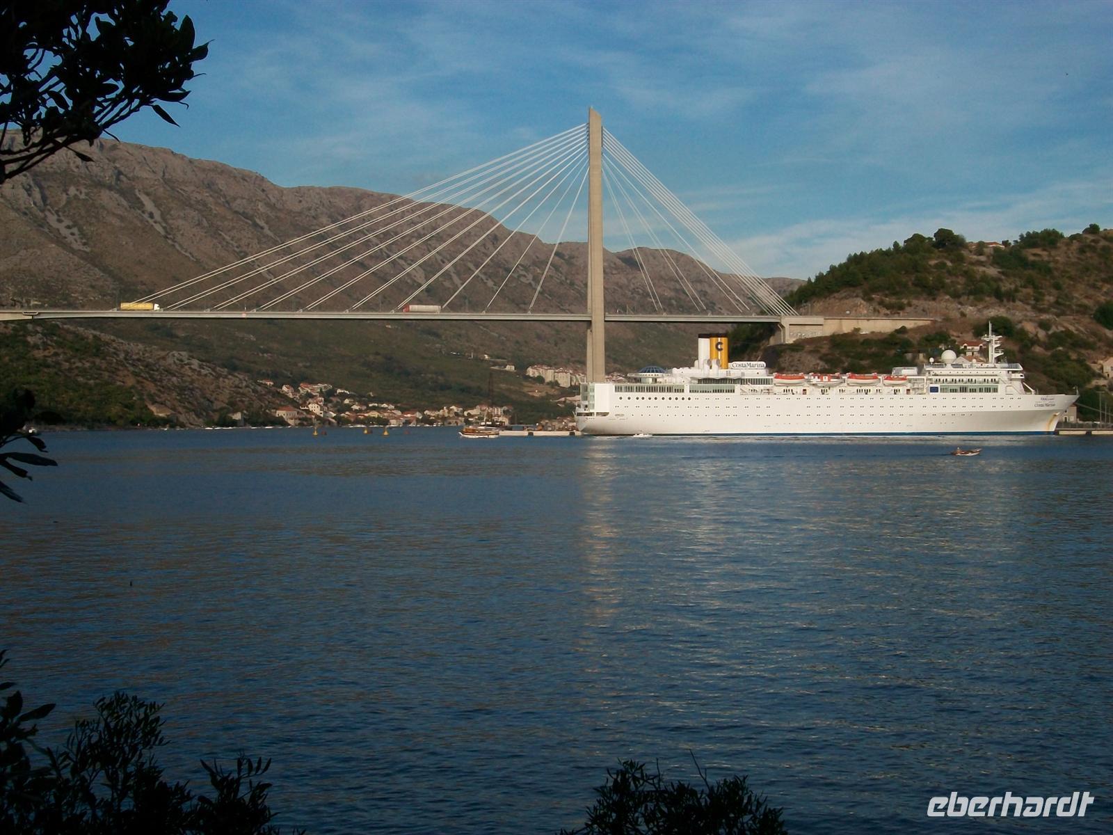 Bald hat nach der Dämmerung Dunkelheit Einzug gehalten; über dem Küstengebirge ist der Mond aufgegangen und nach dem wir um die Bucht des Hafens Gru¸ gefahren sind, erreichen wir gegen halb acht unser Hotel in Dubrovnik.