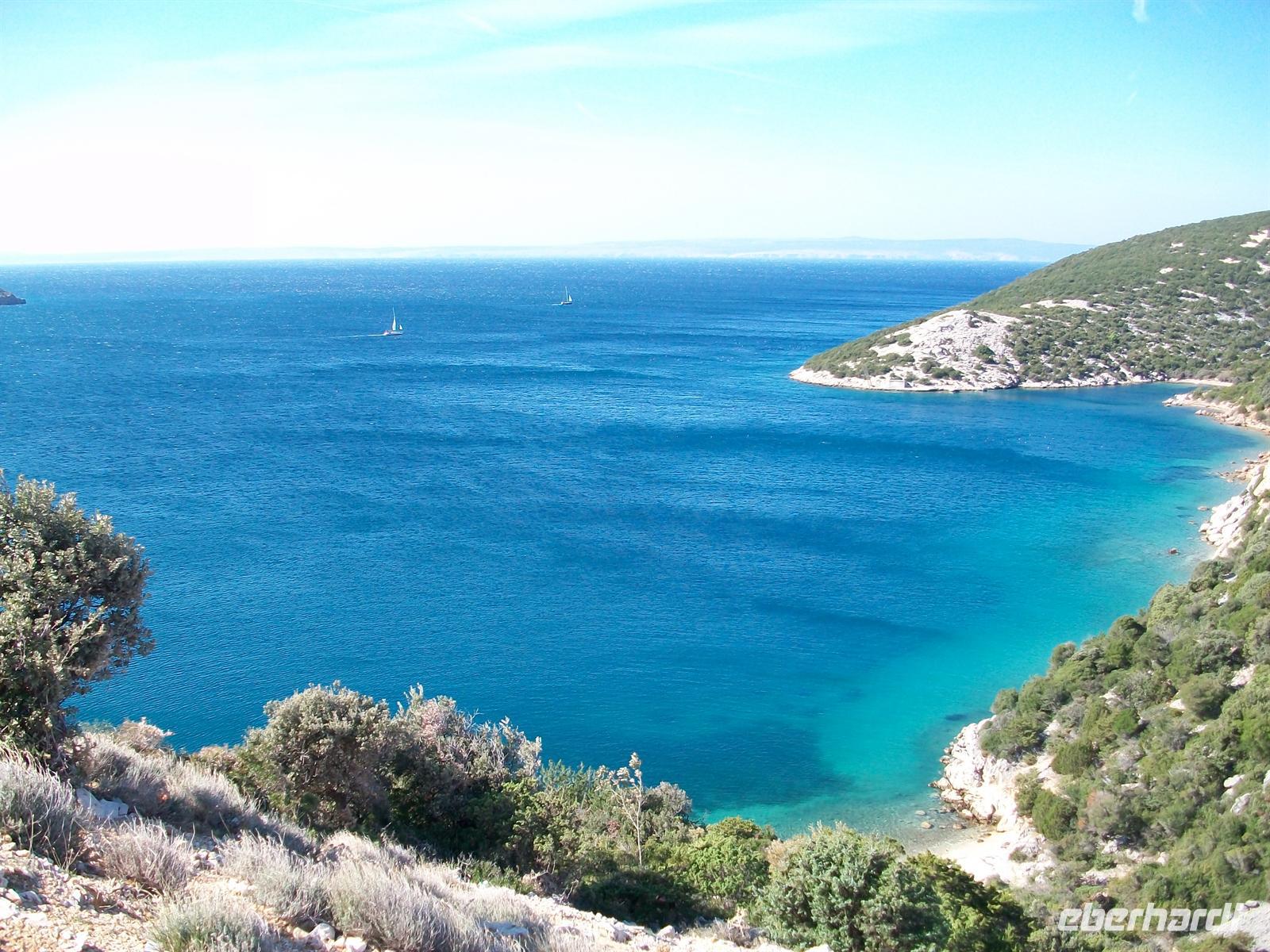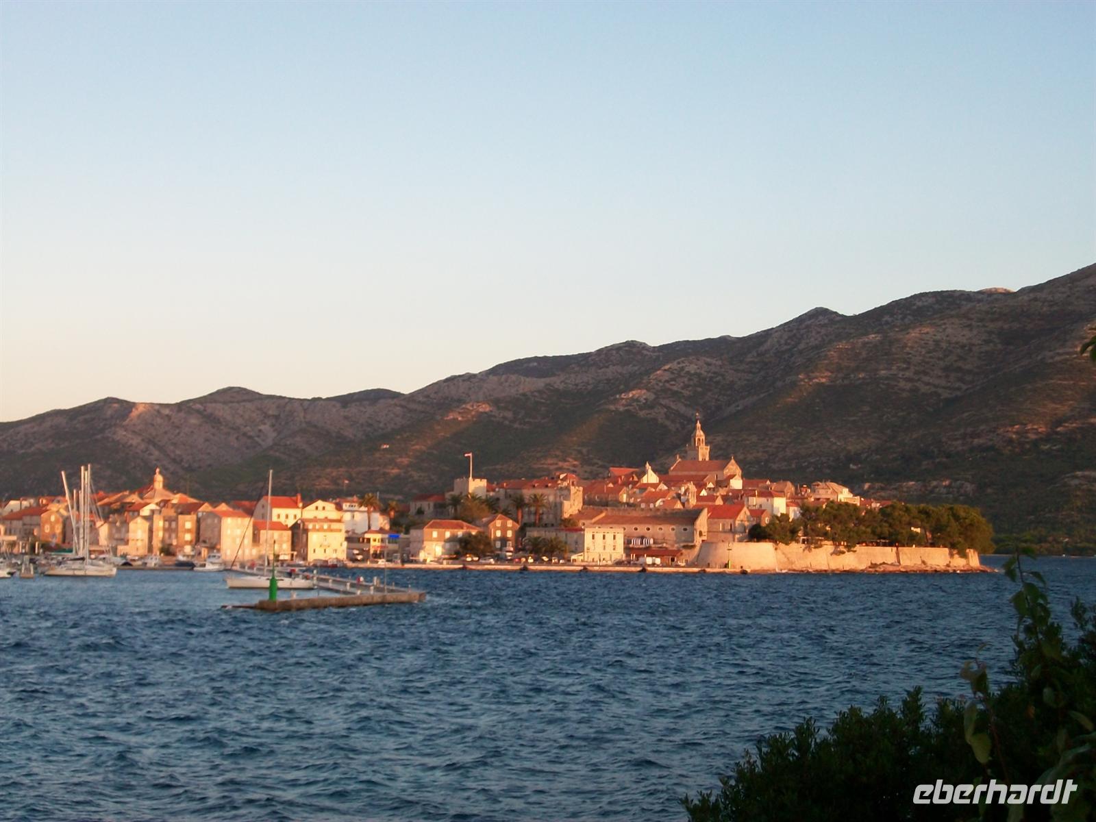 Am anderen Ende der Insel angelangt statten wir dem Ort Vela Luka noch einen Besuch ab, dann geht es auf der Inselstraße zurück; die Fahrt führt uns fast 600 Meter über den Meeresspiegel mit einem phantastischen Ausblick auf die Karsthänge des Festlandes und die Inselwelt. Die Sonne widerspiegelt sich in tausenden Reflexen auf den Wassern der Adria.