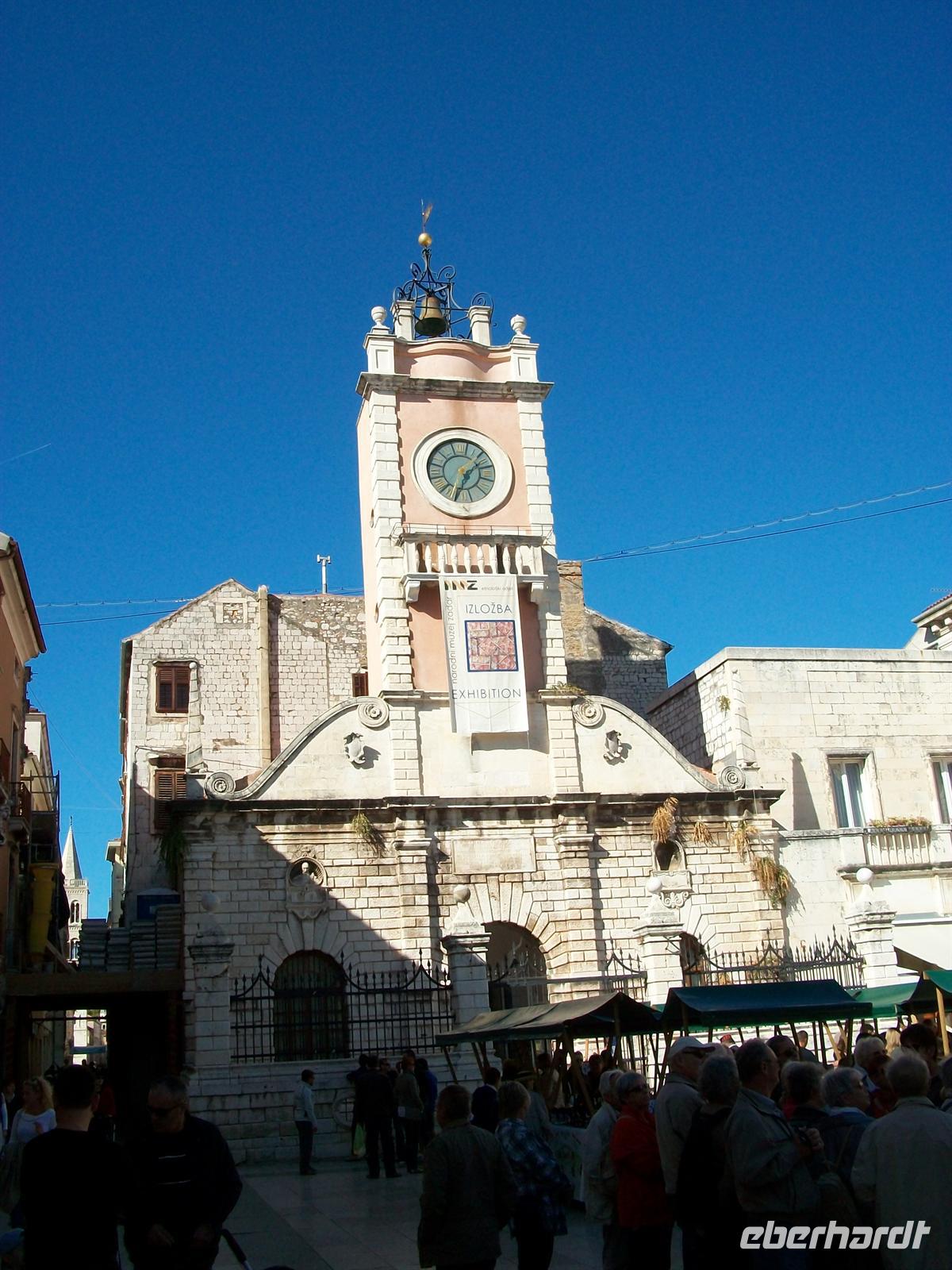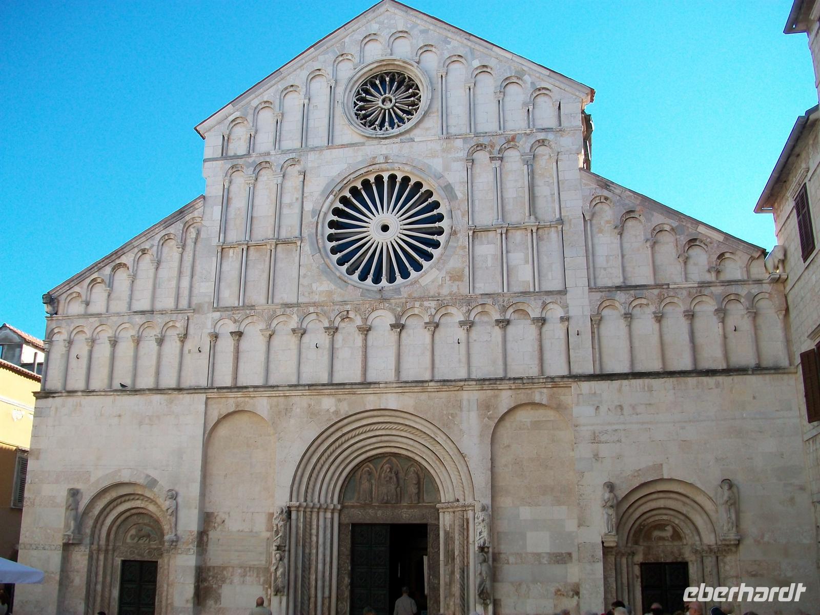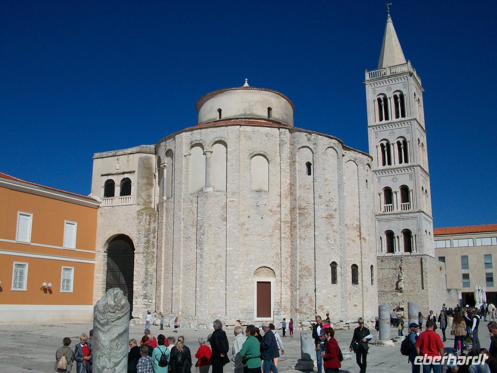 Zuerst besuchen wir Zadar, die Stadt mit dem eigentümlichen Stilmix, zwischen Römischer Baukunst, Romanik, Gotik, Renaissance und Moderne. Fachkundig werden wir von Edi dabei begleitet der wie immer in seiner sympathischen Art unsere Gruppe mit den Besonderheiten dieses Ortes vertraut macht.