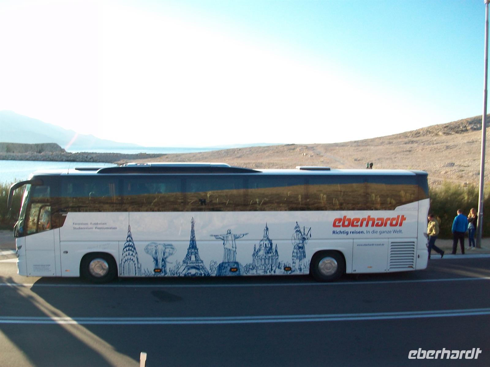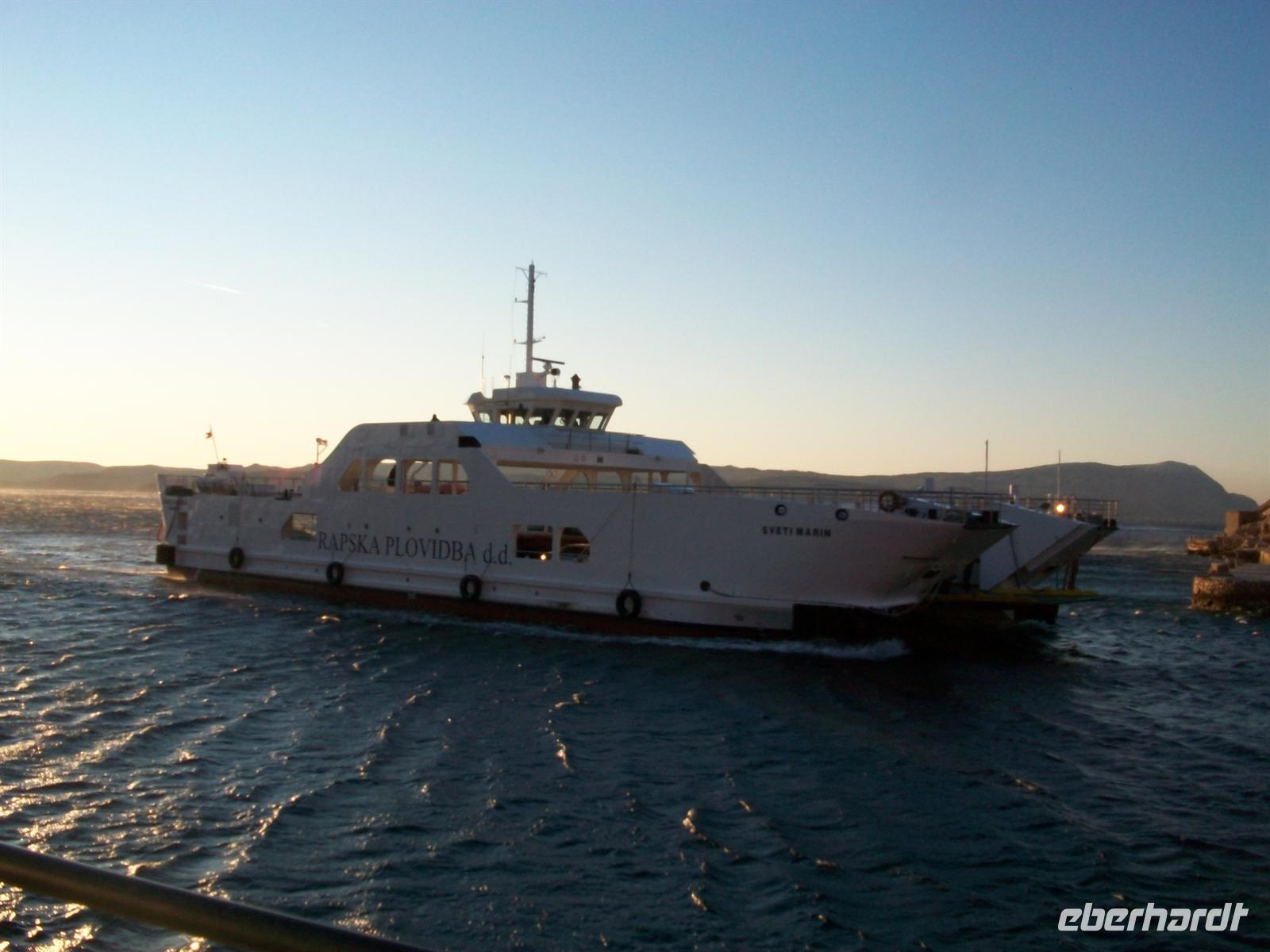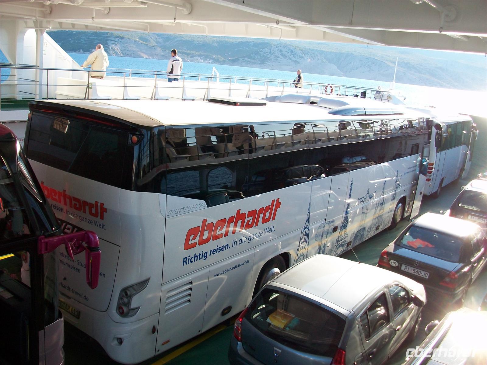 Nach einer kurzen Rast in Karlobag fahren wir bis nach Jablanac, dieser Abschnitt ist für unseren Bus freigegeben, freilich rüttelt Bora weiterhin am Bus aber mit sicherer Hand lenkt unser Chauffeur Peter das Fahrzeug und bald sind wir am Fähranleger angekommen.