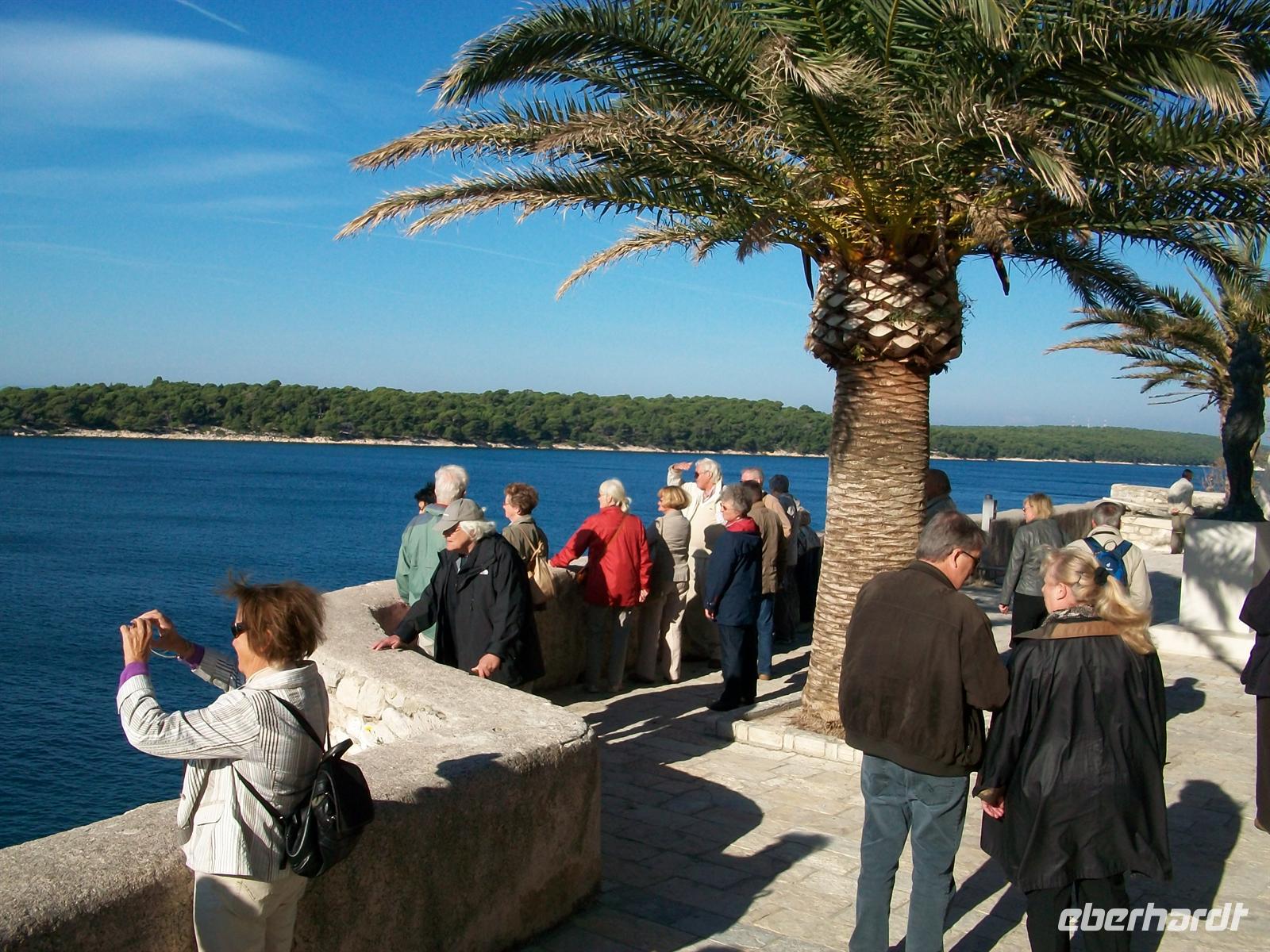 Himmel und gegen die Kühle gibt es Jacken. Viktor, unser örtlicher Führer, zeigt uns die Schönheiten seines Heimatortes und gegen 11.00 Uhr starten wir mit dem Bus zu unserer kleinen Inselrundfahrt. Jetzt in der Nachsaison ist schon alles sehr ruhig geworden und lässt uns Raum alles ohne Hektik genießen zu können. Überhaupt ist das noch einmal ein ruhiger Tag bevor es dann morgen nach Slowenien geht.