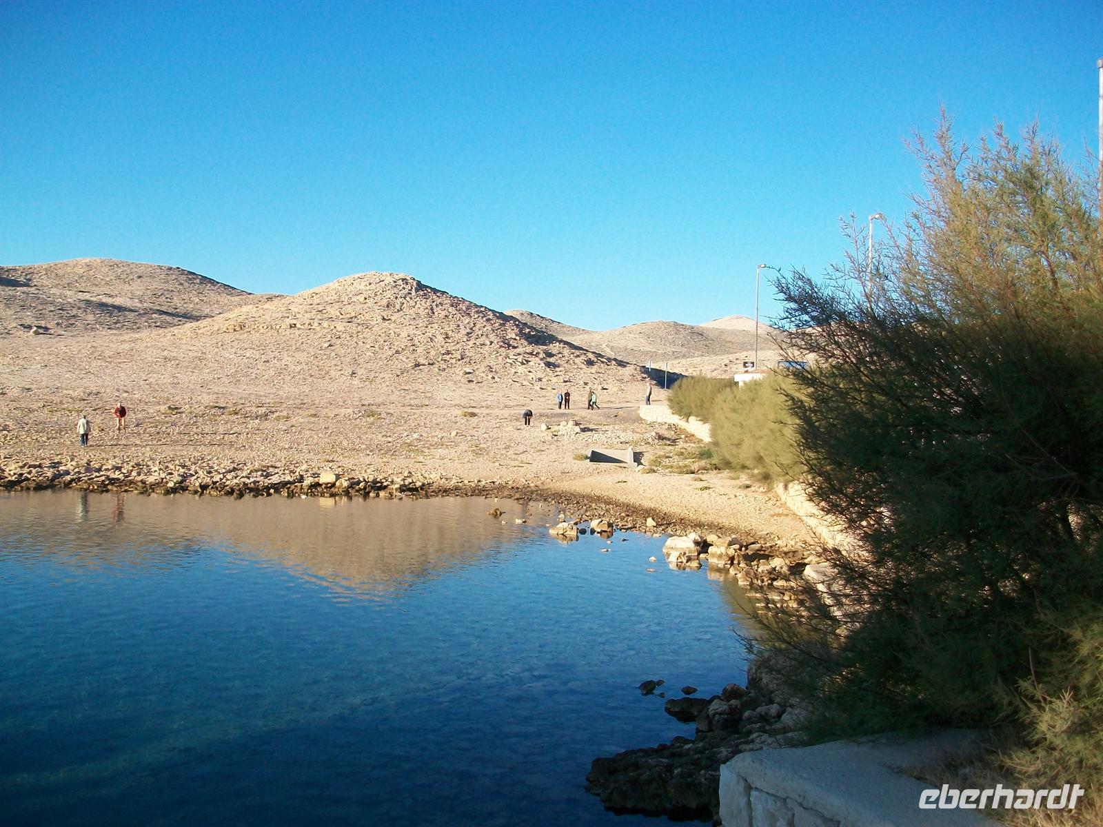 Insel Rab bekommen. Die Autobahn die auch gesperrt war wurde vor kurzem wieder freigegeben und so geht es hinauf zum Berg Sveti Rok unter dem ein Tunnel hindurch führt. Danach sind wir im Hinterland in einer ganz anderen Welt. Kahl und karstig ist die Landschaft hier wenig einladend und dennoch irgendwie faszinierend.