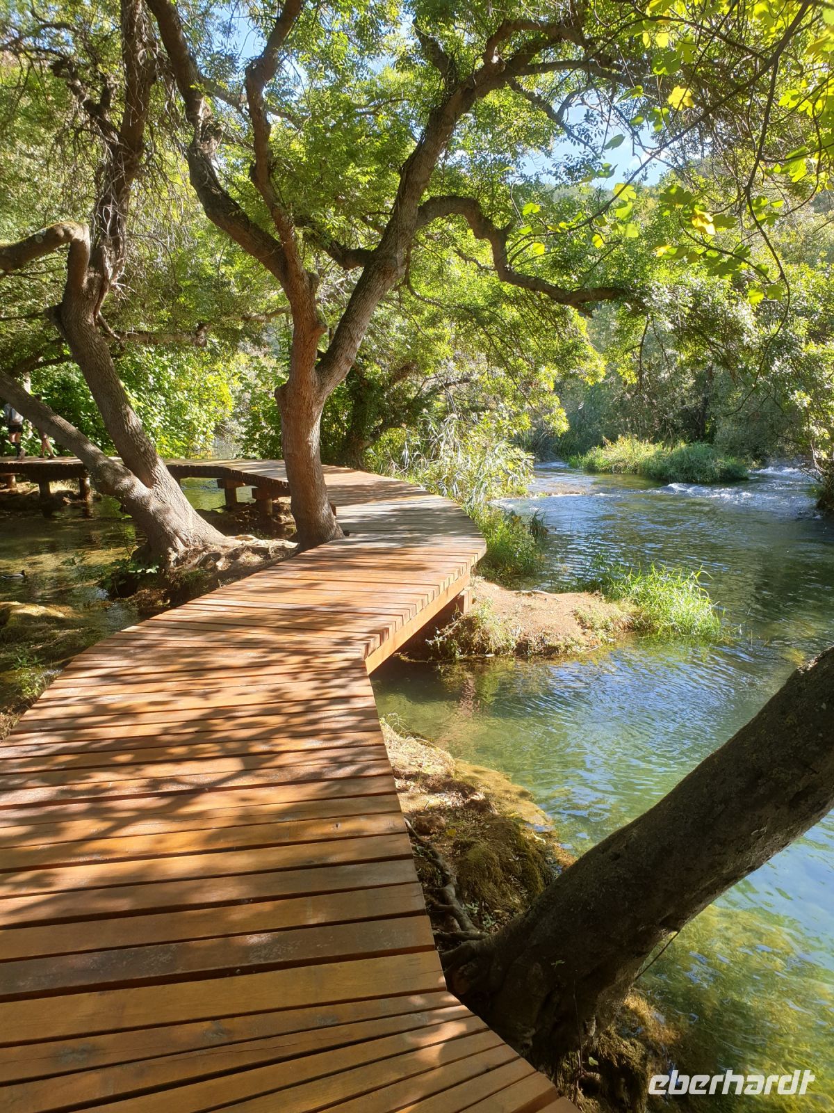 Von hier aus folgen wir dem Krka Fluss zum nach ihm benannten Nationalpark. Dort angekommen erleben wir den Park intensiv und hautnah indem wir den nicht ganz einfach zu berollenden Holzbohlenweg oberhalb des Skradinski Bug nutzen.
