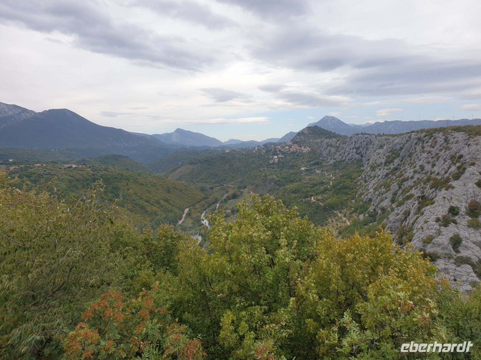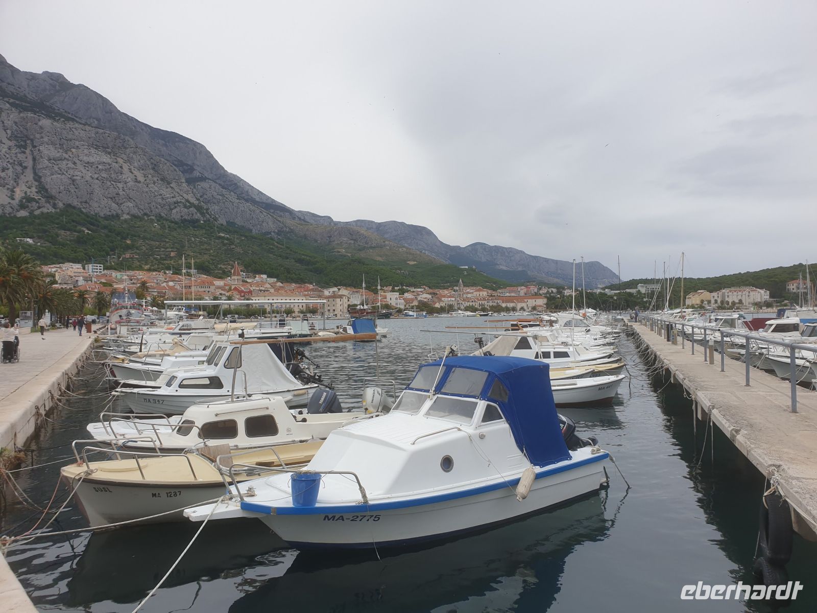 Wir rollen über die breiten Wasserläufe, entlang großer Flächen bestückt mit wilden Alpenveilchen, sehen zahlreiche Fische und Hören das Rauschen der aus dem Gebirge kommenden Wassermassen. Durch das karstige Hinterland der Adriaküste nutzen wir die Autobahn zur Makarska Riviera. In Makarska beziehe wir dann das nächste Hotel, Basis für die kommenden Ausflüge.
