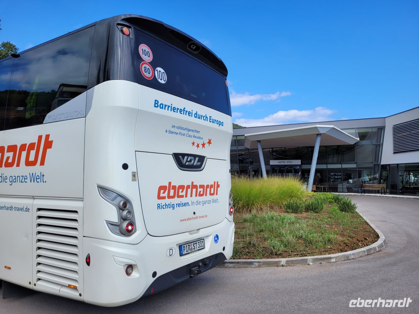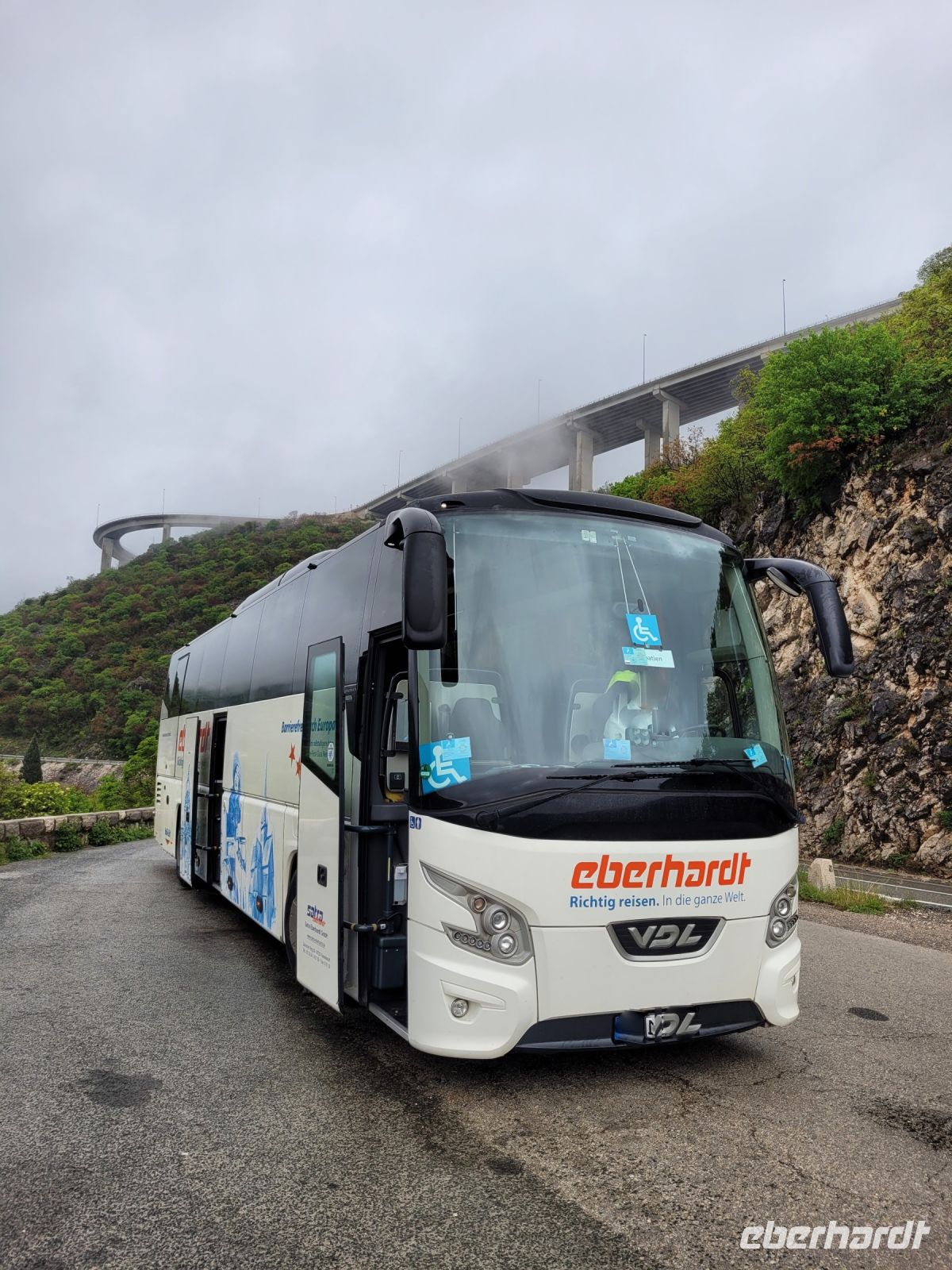 Am Dresdner Flughafen erwartet der behindertengerechte Reisebus von Eberhardt Travel die ersten Gäste zur Reise "mit und ohne Rollstuhl nach Kroatien".