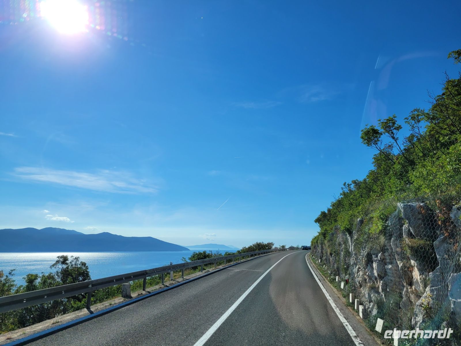 Ein letzter Blick auf die Adria, bevor es mittels Tunnel durch das Biokovo Gebirge zur Autobahn geht. Nachdem wir bei Šibenik die Krka gequert haben, wird der Blick auf den Velebit frei.