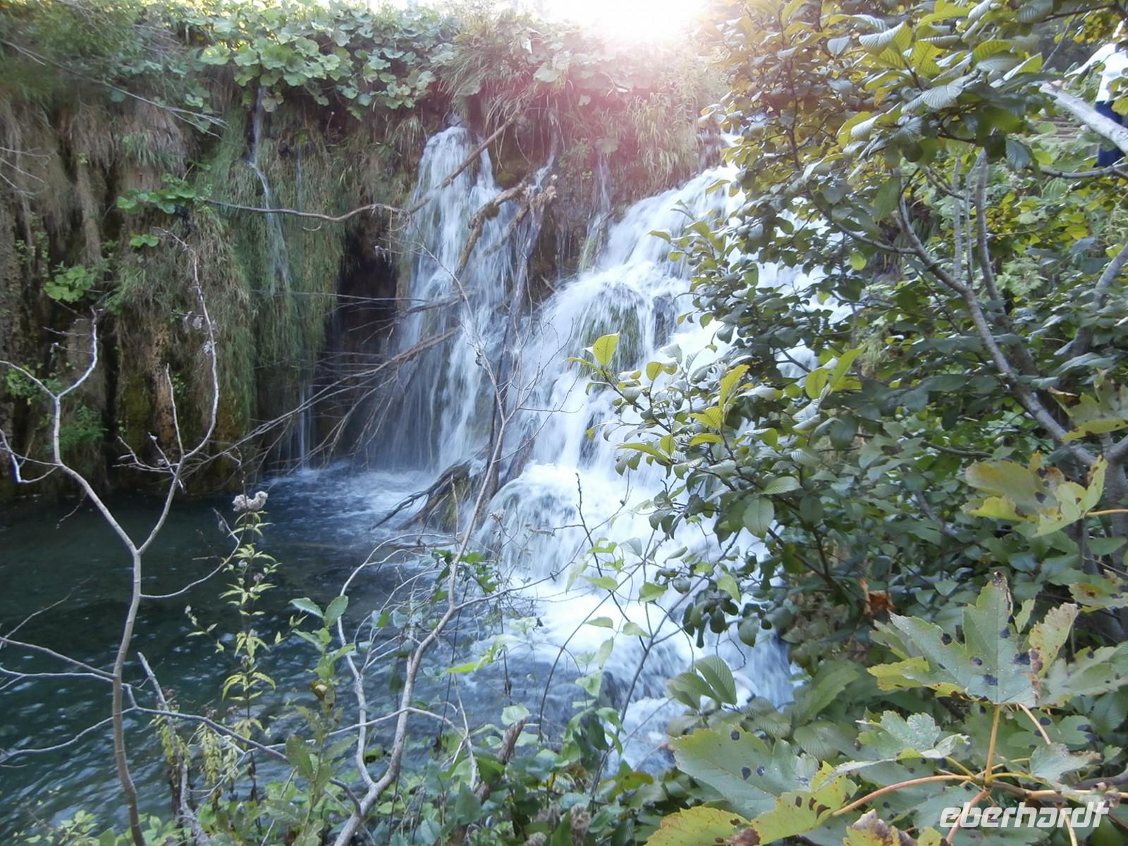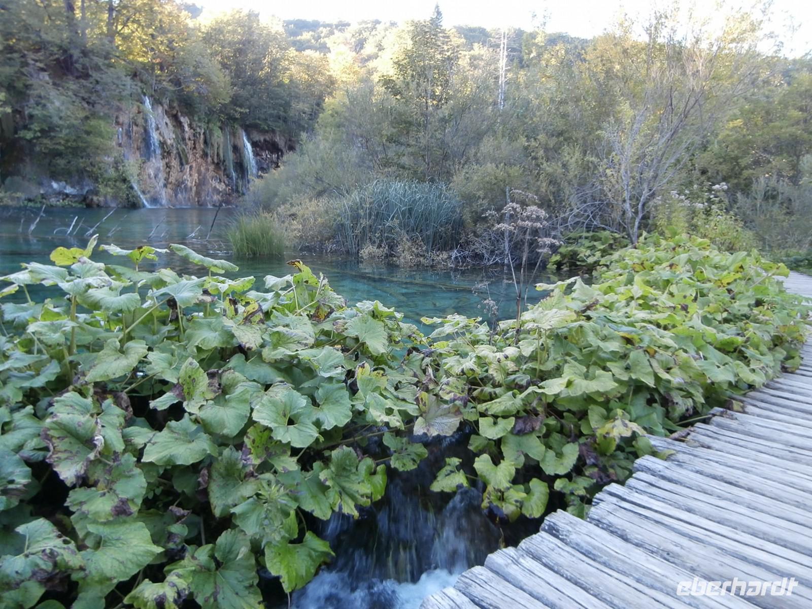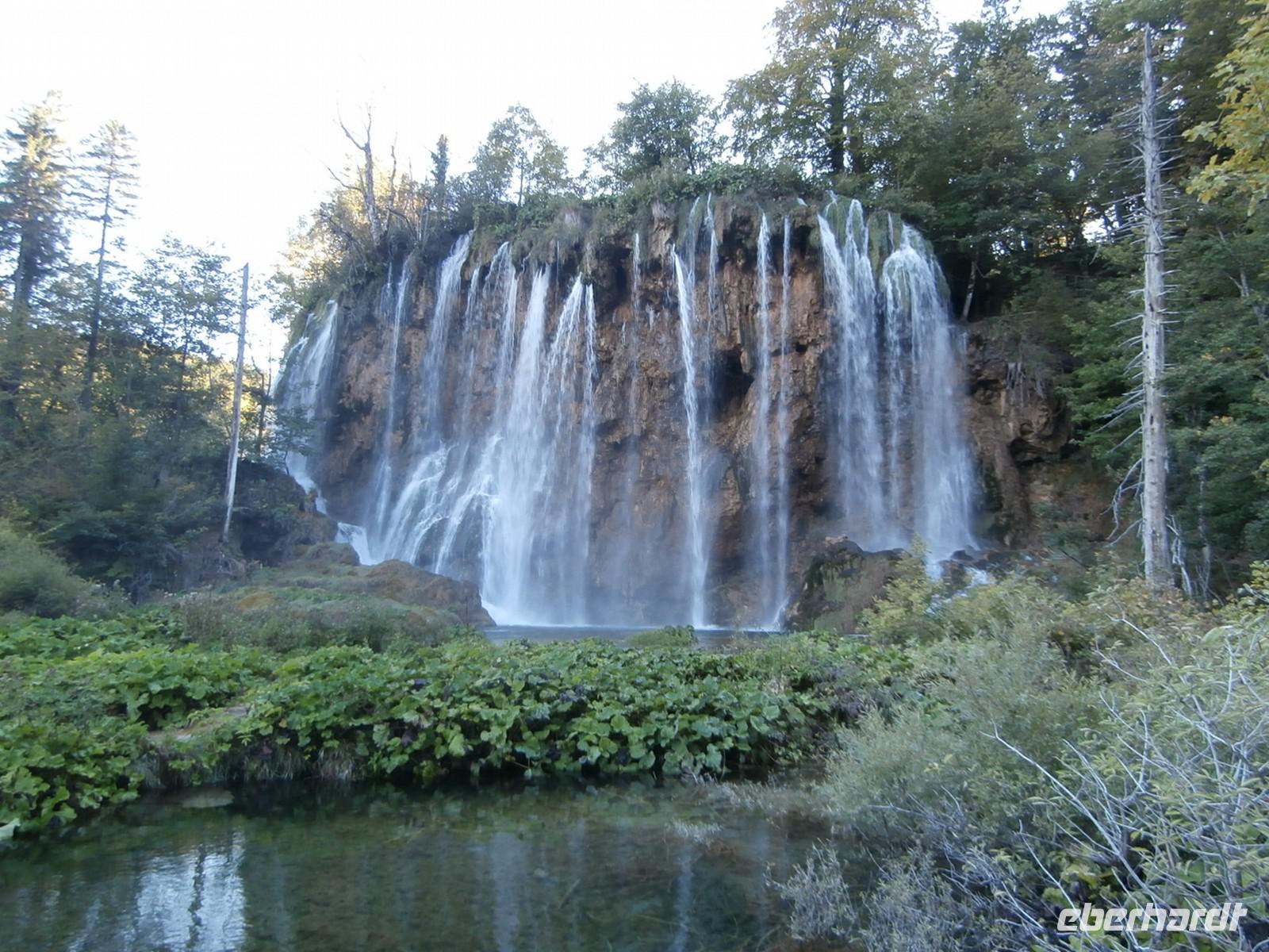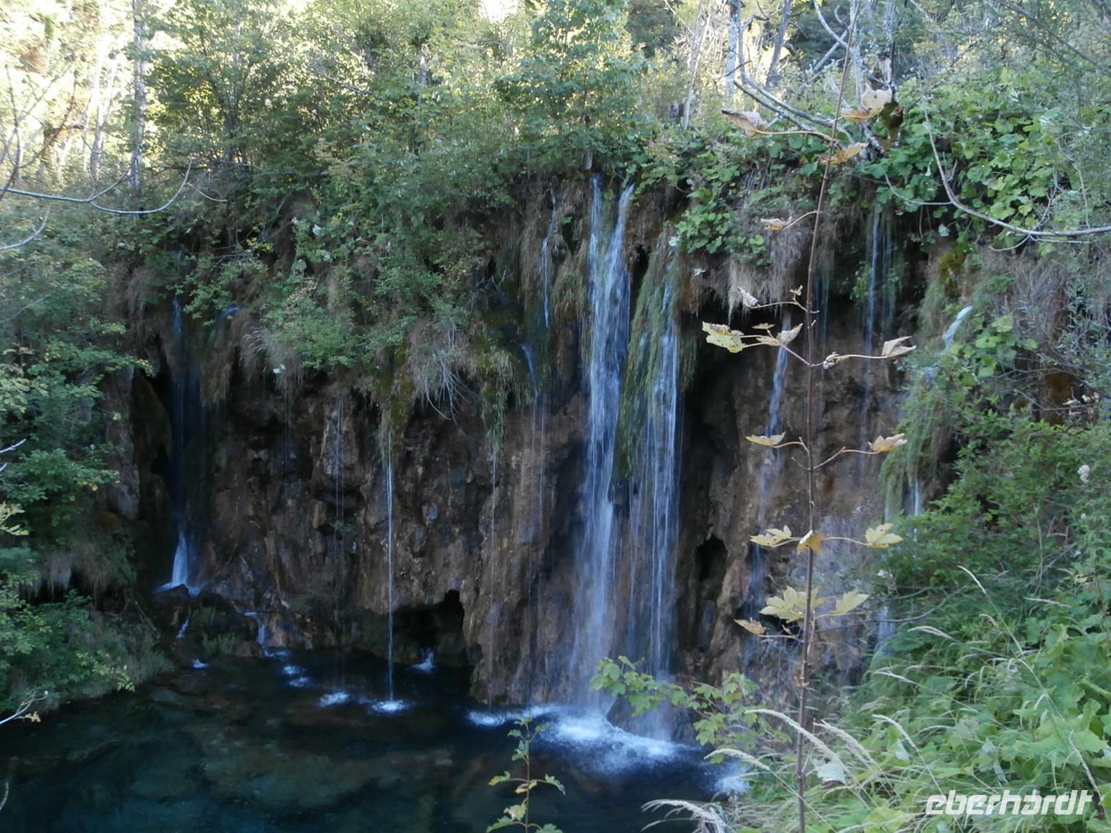 Heute Morgen werden wieder alle Koffer von Frank verladen und gut gelaunt reisen wir weiter. Für kurze Zeit fahren wir ganz nah entlang der Grenze zu Ungarn, in Mursko Sredisce reisen wir in Kroatien ein, unsere Fahrt geht vorbei an Varazdin und durch das sanfte Hügelland der Hrvatske Zagorje. Mit azurblauen Himmel und Sonne erreichen wir am Nachmittag unser Hotel Jezero in Plitvice. Nach kurzer Frischepause begeben wir uns auf eine abenteuerliche Wanderung mit Benutzung von Bus und Schiff, auf den Spuren der Karl-May-Helden. Die Filme wurden in den 1960er Jahren hier im Nationalpark in der phantastischen Naturkulisse gedreht. Auf dem Rundwanderweg gehen wir über Holzstege, kommen in Serpentinen nach unten zum grün leuchtenden Koluderovac Jezero, er war im Film der Silbersee. Über Knüppeldämme queren wir so einige Seen im Park, sehen viele Wasserfälle, unter ihnen einer 78 Meter hoch. Hier nehmen wir unser Gruppenfoto auf. Dann geht's aufwärts weiter, vorbei an der Schatzhöhle und weiteren Seen, die alle höher liegen, ihr Wasser ergießt sich in schäumenden Kaskaden. Nach einer Rast besteigen wir das Elektroboot und fahren zum anderen Ufer, von wo aus weiter bei leicht einsetzender Laubfärbung gewandert wird. Begeistert kehren wir zum Hotel zurück und treffen uns zum Abendessen im Restaurant.