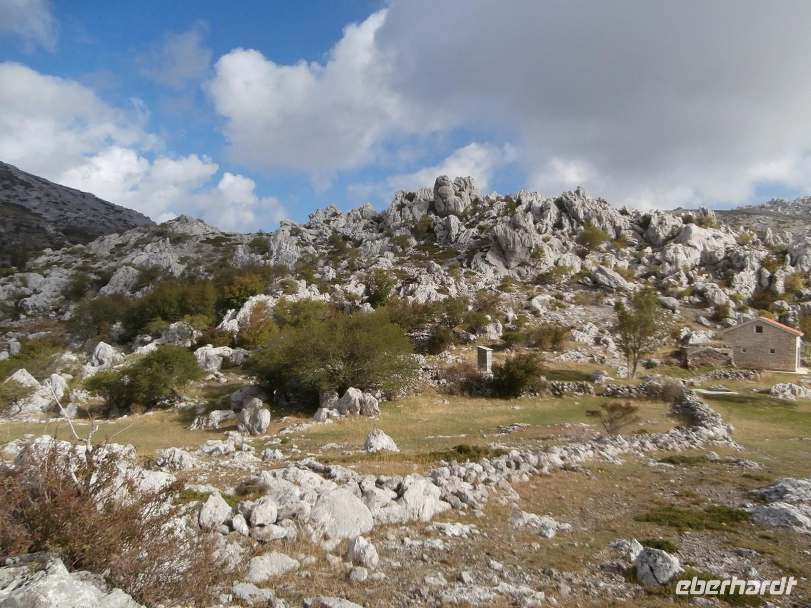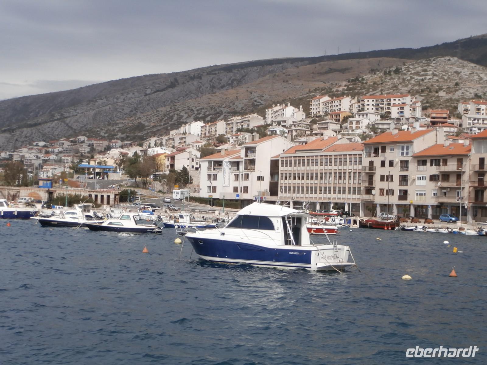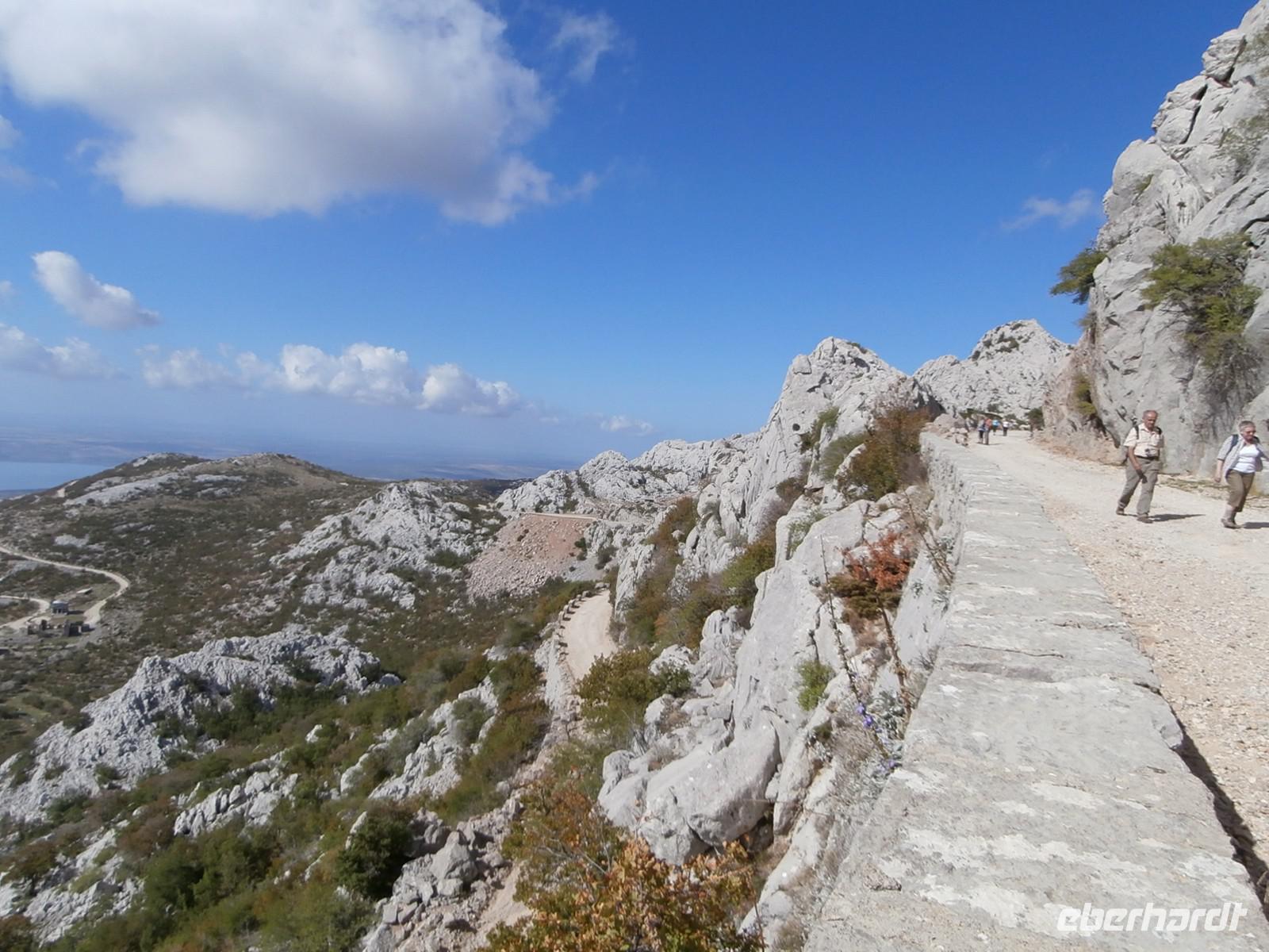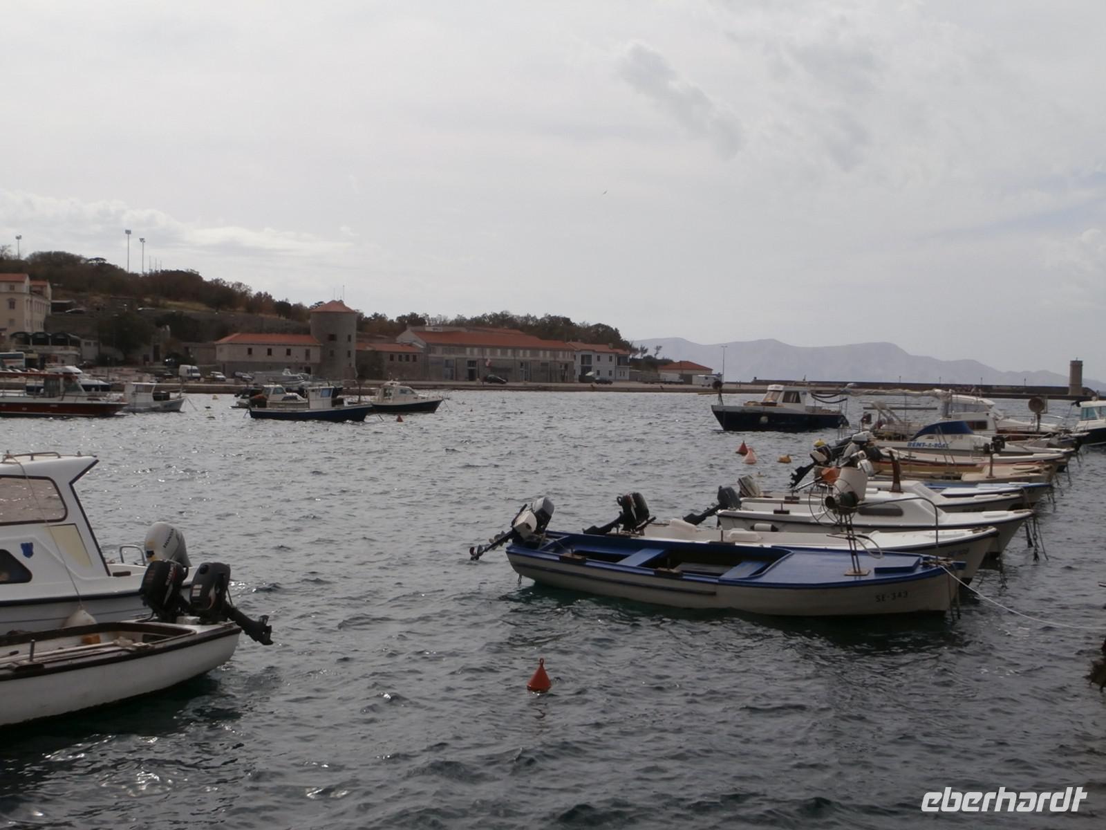 Paklenica erhielt seinen Namen vom Schwarzkieferharz, der wird Paklina" genannt und findet Verwendung beim Bestreichen der Schiffe. Zum Eingang im Nationalpark wandern wir heute direkt ab Hotel und gehen gemeinsam bis zum Eingang. Ich kaufe die Tickets und treffe unseren örtl. Reiseleiter Ante, der schon ein alter Bekannter ist. Mit einführenden Worten und vielen Erklärungen marschieren wir los. Es gibt die große und kleine Paklenica im seit 1978 unter Naturschutz stehenden Park und wir wandern und klettern teilweise durch die große Paklenica Schlucht. Immer wieder sehen wir an den steilen Felswänden Kletterer. Ein halbes Jahrhundert Tradition im Bereich des Alpinismus und Sportkletterns kann Paklenica vorweisen. Auch Schauplatz für den Dreh zahlreicher Szenen der Filme um Winnetou ist die Schlucht Velika Paklenica. An der Berghütte angekommen können wir ein leckeres Picknick genießen, gegrillte Wurst mit Fladenbrot dazu bestellen wir uns Bier, Cola oder Kaffee. Viele Wanderfreunde gehen mit mir noch hoch zur anderen Hütte und weiter zum Ivancev Dom, hier werden wir herzlich empfangen und genießen guten Kaffee und schöne Aussicht. Begeistert vom Ausflug kehren wir später zum Hotel zurück. Bei Ankunft gibt es heute Aufruhr, es ist kein Wasser da, im Ort wurde die Hauptleitung bei Baumaßnahmen zerstört. Da wir gleich in Wassernähe wohnen, geht es für Viele von uns zur Abkühlung ins kalte Wasser des Velebitkanals. Mit Rotwein erleben wir so noch einen fantastischen Sonnenuntergang. Am Abend gibt es wieder ein schmackhaftes Essen mit Muscheln und Fisch. Wasser läuft später auch wieder durch die Leitung, welch ein Glück für uns alle.