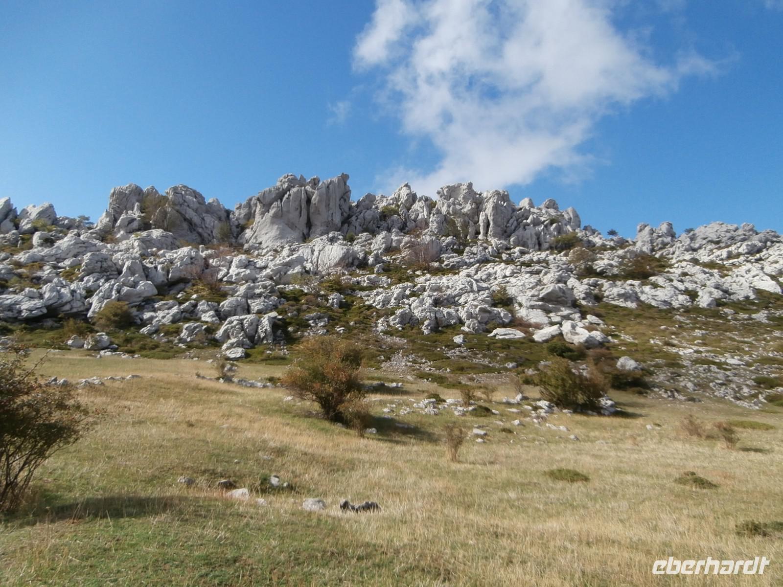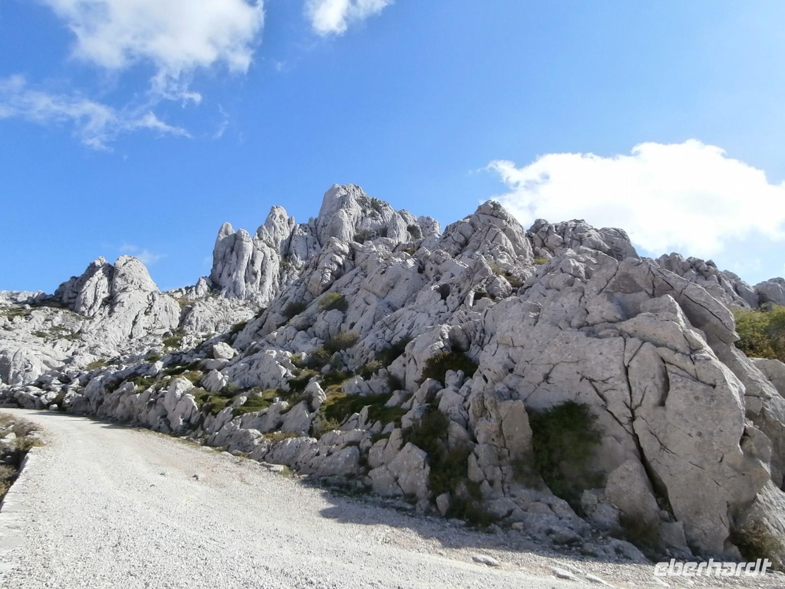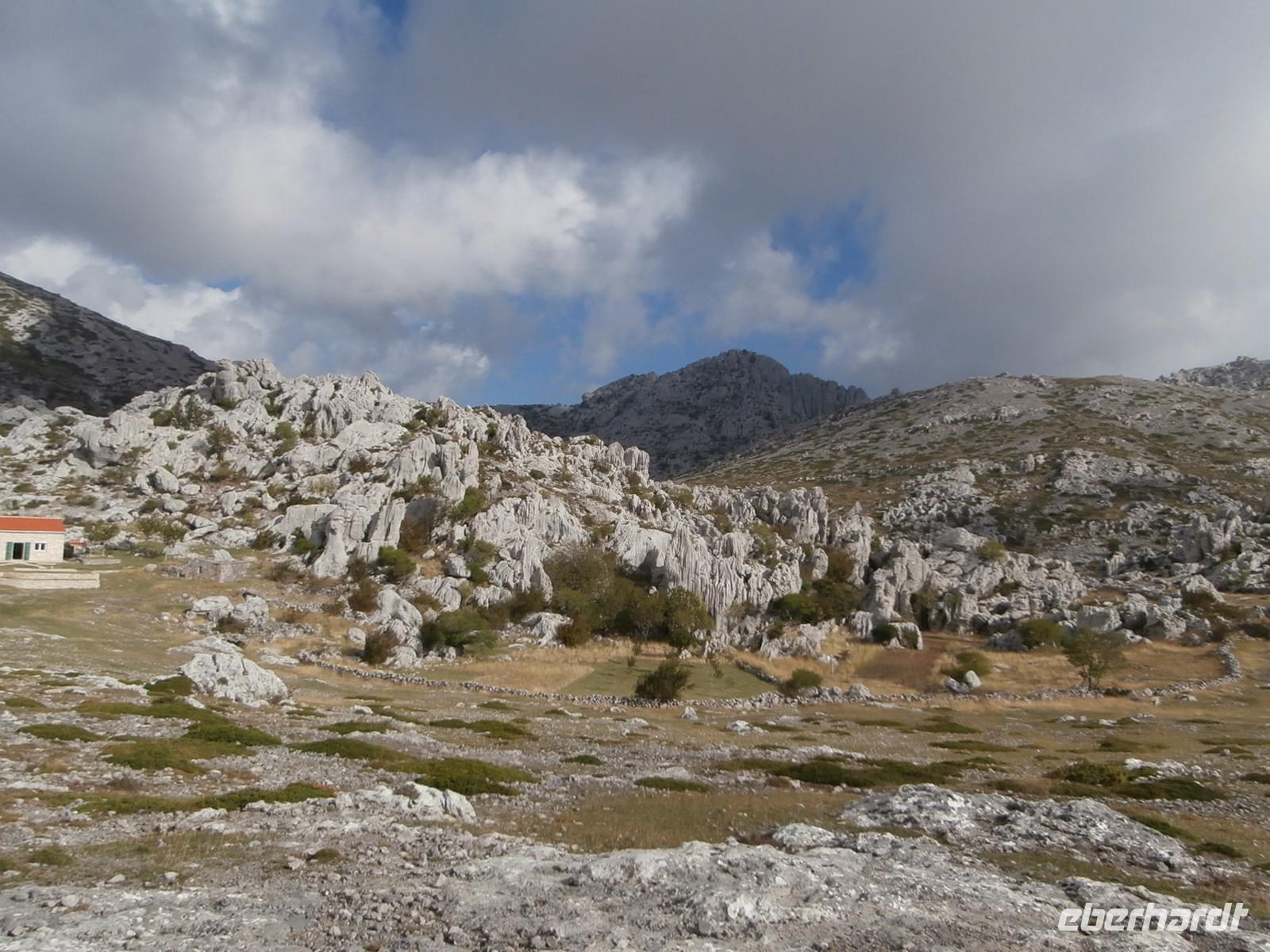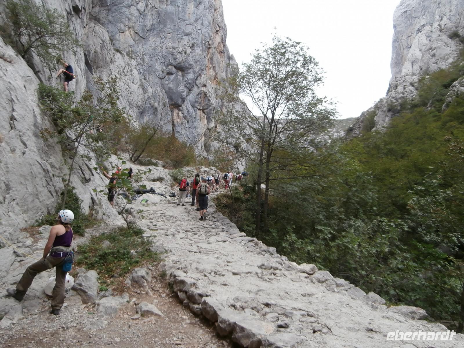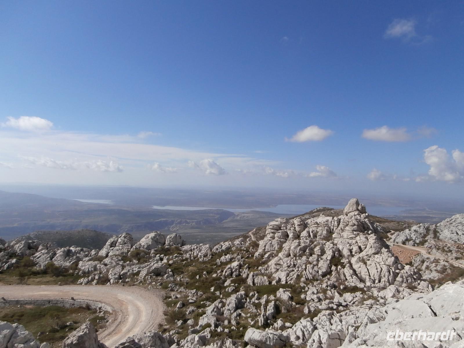 Paklenica erhielt seinen Namen vom Schwarzkieferharz, der wird Paklina" genannt und findet Verwendung beim Bestreichen der Schiffe. Zum Eingang im Nationalpark wandern wir heute direkt ab Hotel und gehen gemeinsam bis zum Eingang. Ich kaufe die Tickets und treffe unseren örtl. Reiseleiter Ante, der schon ein alter Bekannter ist. Mit einführenden Worten und vielen Erklärungen marschieren wir los. Es gibt die große und kleine Paklenica im seit 1978 unter Naturschutz stehenden Park und wir wandern und klettern teilweise durch die große Paklenica Schlucht. Immer wieder sehen wir an den steilen Felswänden Kletterer. Ein halbes Jahrhundert Tradition im Bereich des Alpinismus und Sportkletterns kann Paklenica vorweisen. Auch Schauplatz für den Dreh zahlreicher Szenen der Filme um Winnetou ist die Schlucht Velika Paklenica. An der Berghütte angekommen können wir ein leckeres Picknick genießen, gegrillte Wurst mit Fladenbrot dazu bestellen wir uns Bier, Cola oder Kaffee. Viele Wanderfreunde gehen mit mir noch hoch zur anderen Hütte und weiter zum Ivancev Dom, hier werden wir herzlich empfangen und genießen guten Kaffee und schöne Aussicht. Begeistert vom Ausflug kehren wir später zum Hotel zurück. Bei Ankunft gibt es heute Aufruhr, es ist kein Wasser da, im Ort wurde die Hauptleitung bei Baumaßnahmen zerstört. Da wir gleich in Wassernähe wohnen, geht es für Viele von uns zur Abkühlung ins kalte Wasser des Velebitkanals. Mit Rotwein erleben wir so noch einen fantastischen Sonnenuntergang. Am Abend gibt es wieder ein schmackhaftes Essen mit Muscheln und Fisch. Wasser läuft später auch wieder durch die Leitung, welch ein Glück für uns alle.