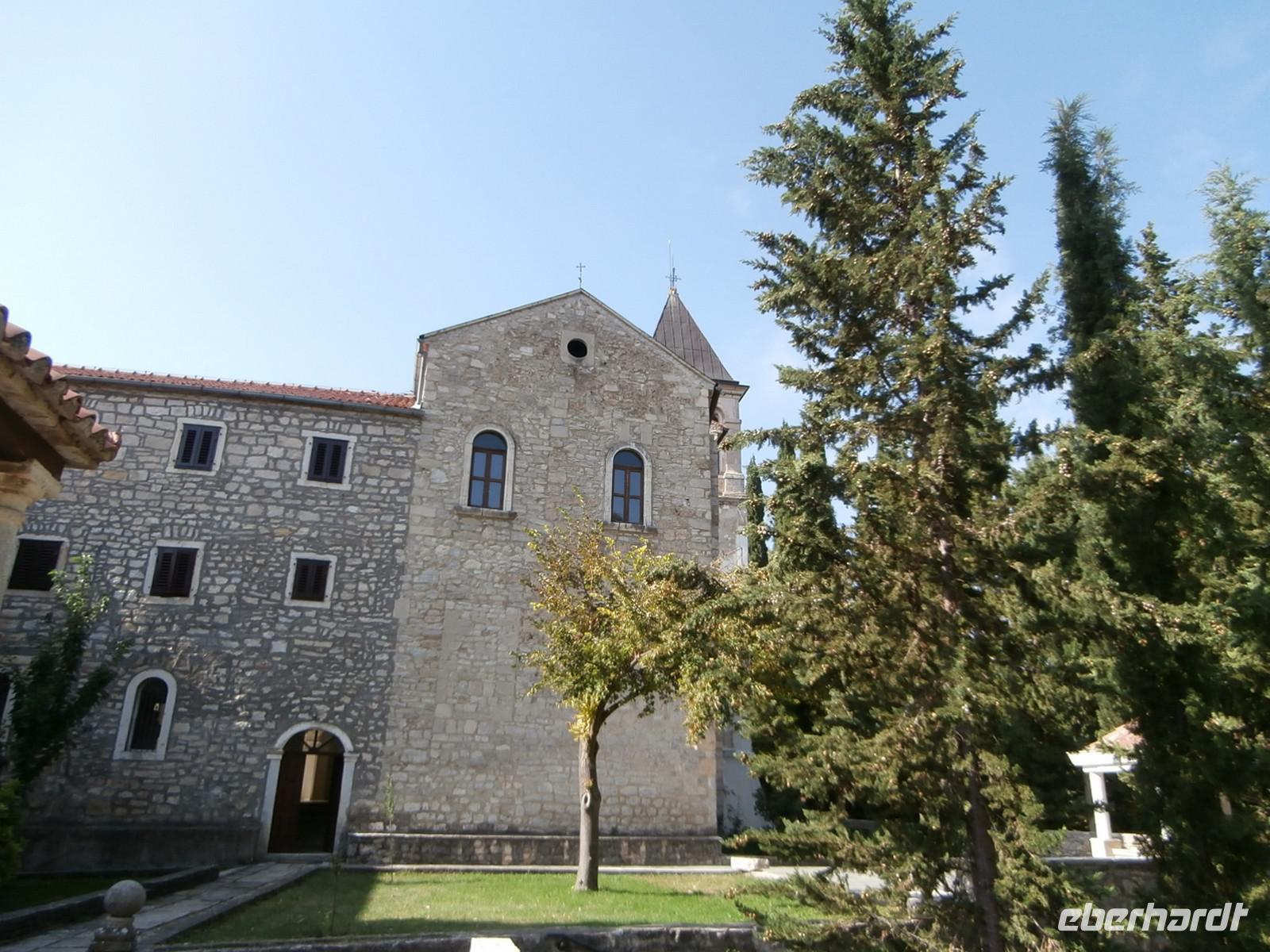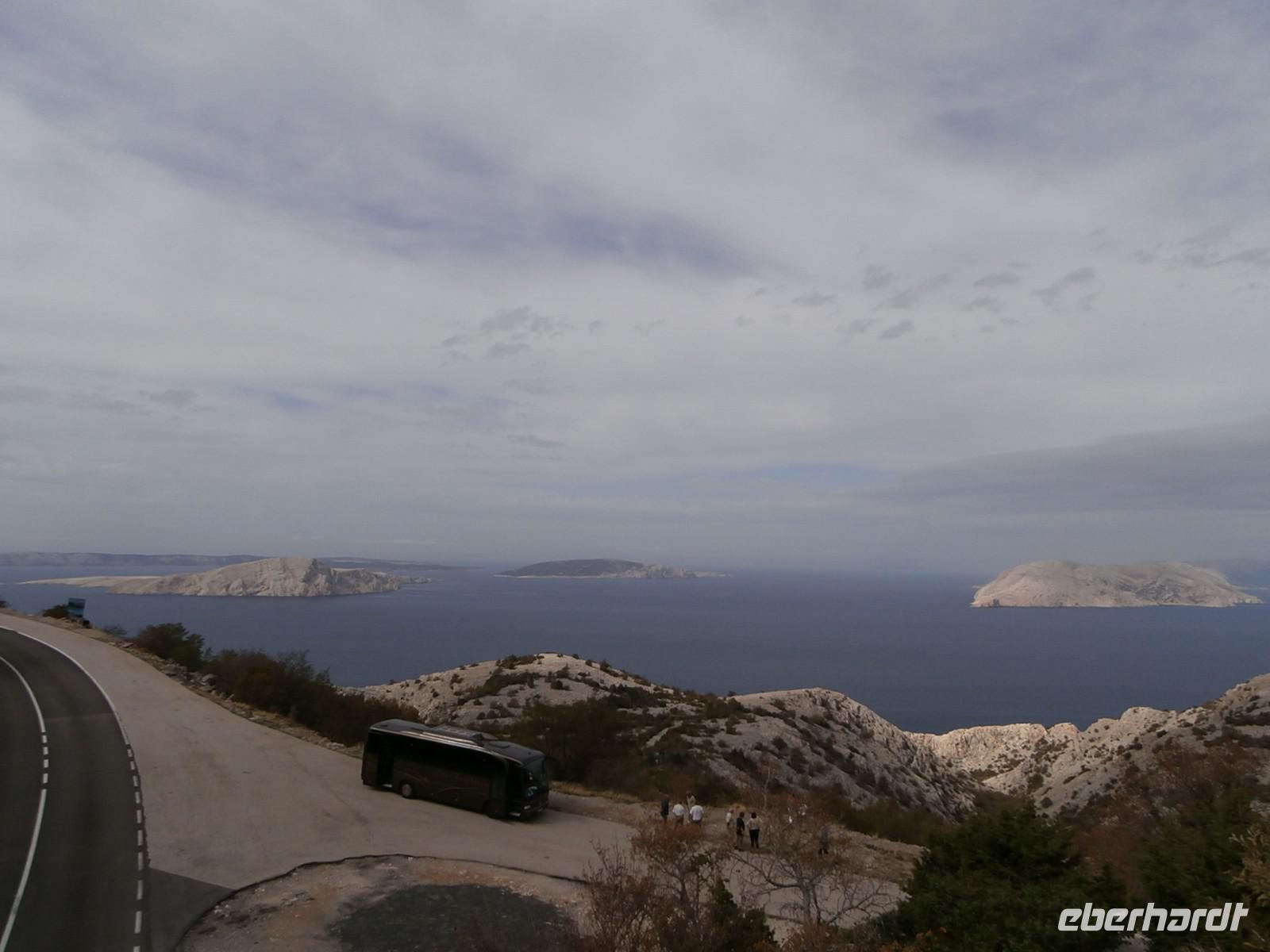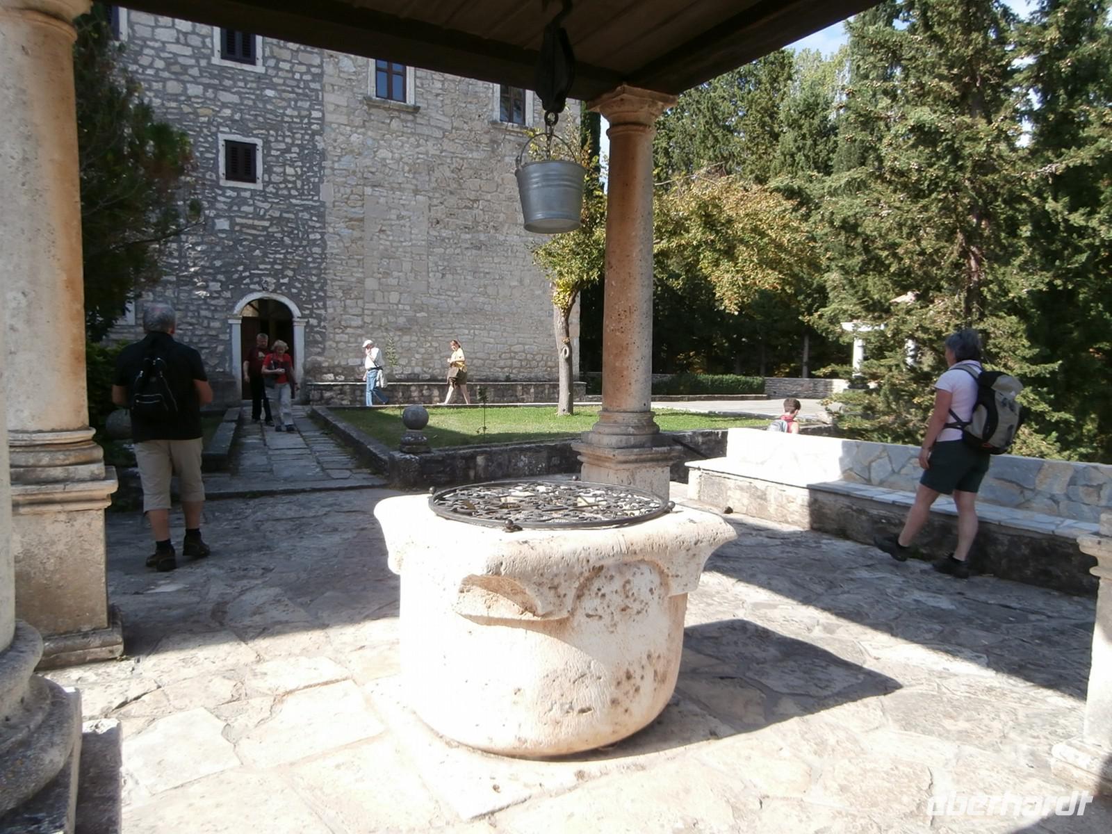 Heute heißt es Koffer verladen und Abschied nehmen, denn unsere Reise geht entlang der Küste bis hinauf auf eine Höhe von 1000 Metern. Ins höchstgelegene, bewohnte Dorf Kroatiens, nach Begovo Razdolje ins Hotel Jastreb fahren wir. Auch heute sind Sonne und Wolken unser Begleiter. Mit herrlichen Ausblicken auf die Inseln, Fotostopps an Aussichtspunkten und Besuch der Städte Karlobag und Senj erleben wir eine schöne Fahrt. An der Burg Nehaj steigen wir aus, einen Rundgang entlang der Mauern und ein Blick ins Innere, dann geht es für uns hinunter in die Stadt. Wir verlassen die Küste und fahren bis Crikvenica, hier biegen wir ins bergige Landesinnere hinauf ins Gorski Kotar ab. Am Nachmittag legen wir noch einen Aufenthalt in Fuzine ein, das ist ein Urlauberort schon im Gorski Kotar. Wir nutzen die Zeit für den Blick in die schöne Kirche, Kaffeetrinken und einen kleinen Spaziergang am Stausee. Die Ankunft im Hotel ist gegen fünf und nach dem Zimmerbezug bleibt Zeit für Erkundungen vor Ort. Unser Abendessen ist ein schmackhaftes Büffet, hier werden wir von der Hotelchefin mit einem hausgemachten Kirschlikör empfangen.