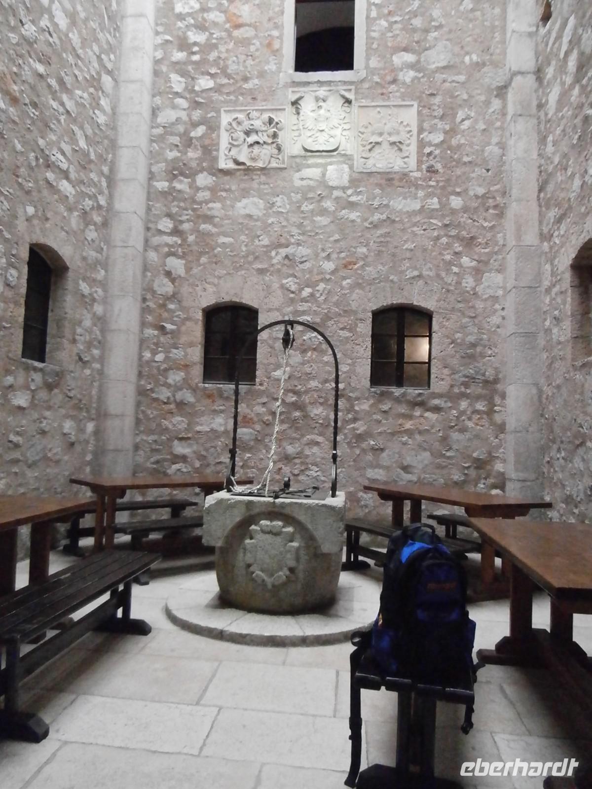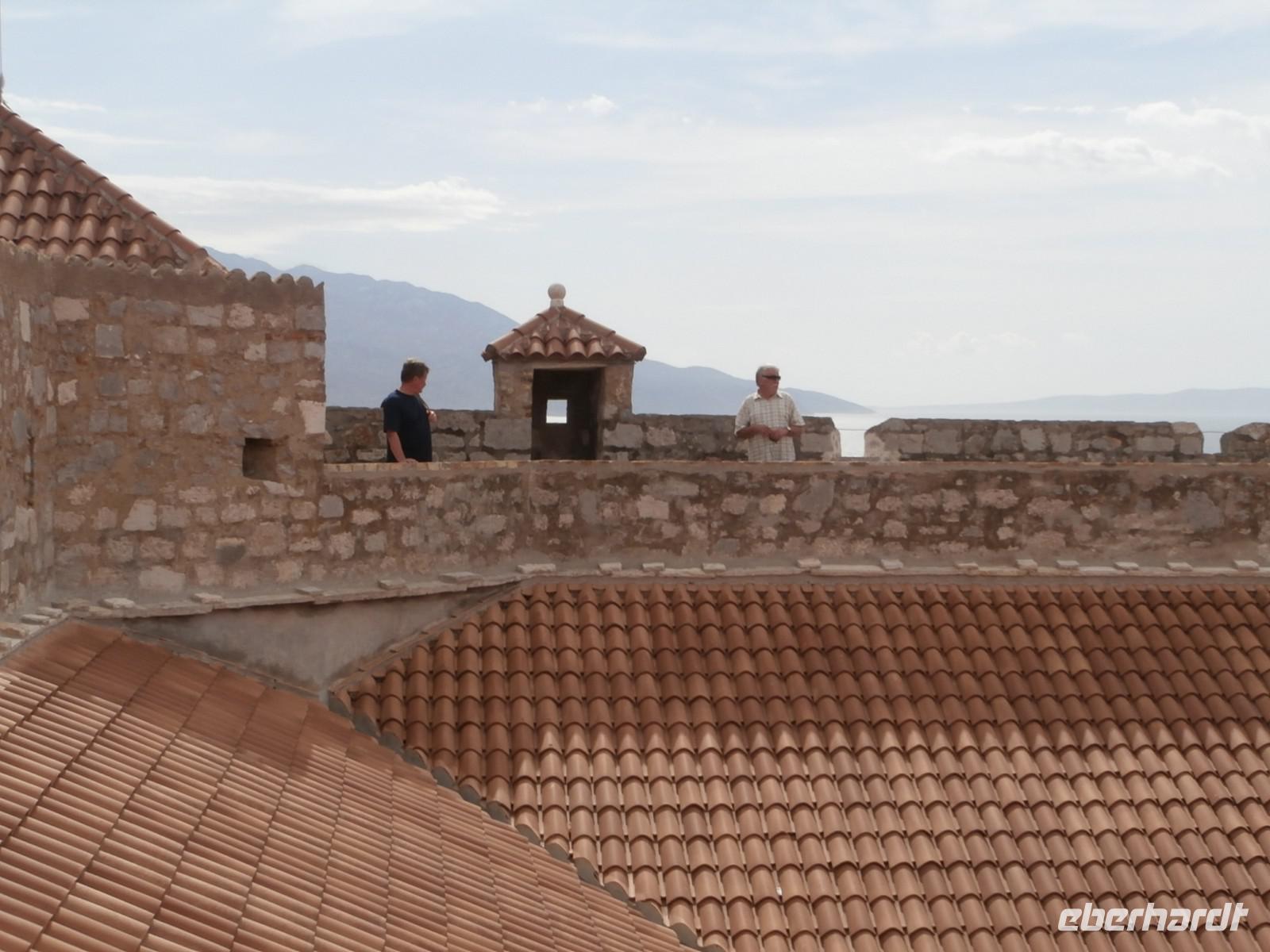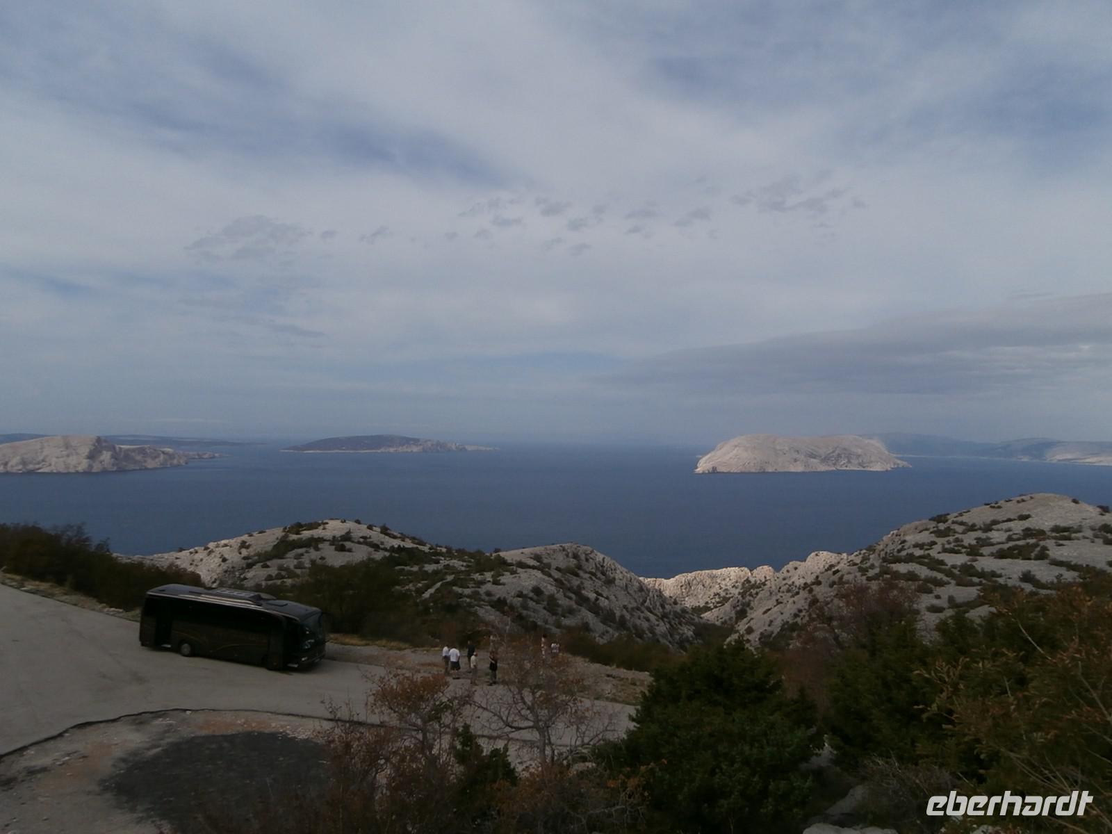 Heute heißt es Koffer verladen und Abschied nehmen, denn unsere Reise geht entlang der Küste bis hinauf auf eine Höhe von 1000 Metern. Ins höchstgelegene, bewohnte Dorf Kroatiens, nach Begovo Razdolje ins Hotel Jastreb fahren wir. Auch heute sind Sonne und Wolken unser Begleiter. Mit herrlichen Ausblicken auf die Inseln, Fotostopps an Aussichtspunkten und Besuch der Städte Karlobag und Senj erleben wir eine schöne Fahrt. An der Burg Nehaj steigen wir aus, einen Rundgang entlang der Mauern und ein Blick ins Innere, dann geht es für uns hinunter in die Stadt. Wir verlassen die Küste und fahren bis Crikvenica, hier biegen wir ins bergige Landesinnere hinauf ins Gorski Kotar ab. Am Nachmittag legen wir noch einen Aufenthalt in Fuzine ein, das ist ein Urlauberort schon im Gorski Kotar. Wir nutzen die Zeit für den Blick in die schöne Kirche, Kaffeetrinken und einen kleinen Spaziergang am Stausee. Die Ankunft im Hotel ist gegen fünf und nach dem Zimmerbezug bleibt Zeit für Erkundungen vor Ort. Unser Abendessen ist ein schmackhaftes Büffet, hier werden wir von der Hotelchefin mit einem hausgemachten Kirschlikör empfangen.