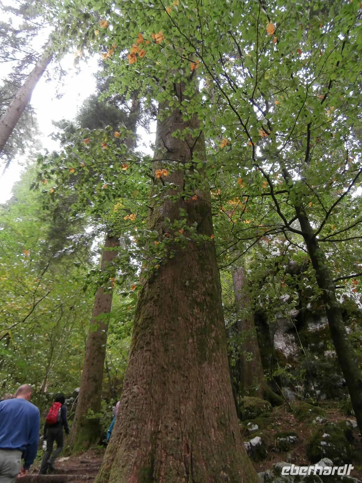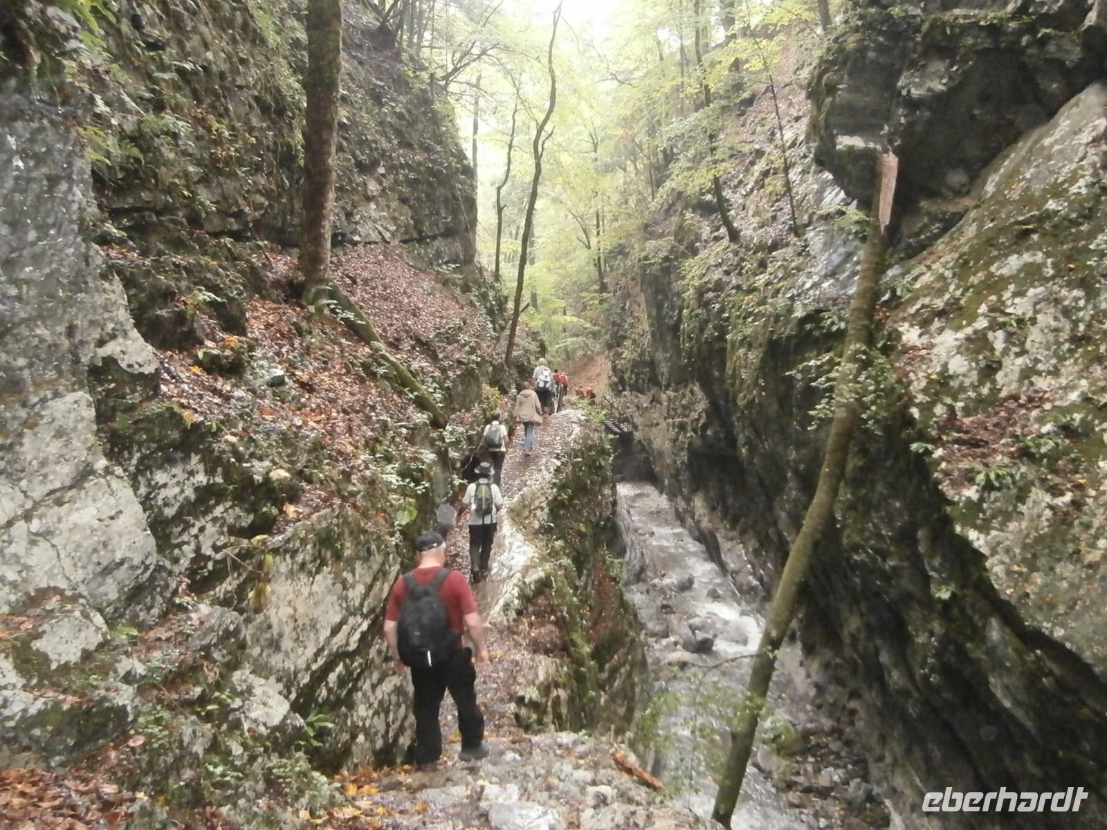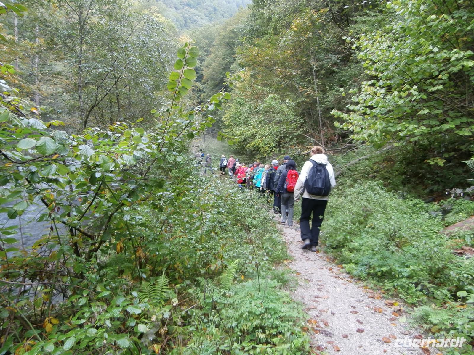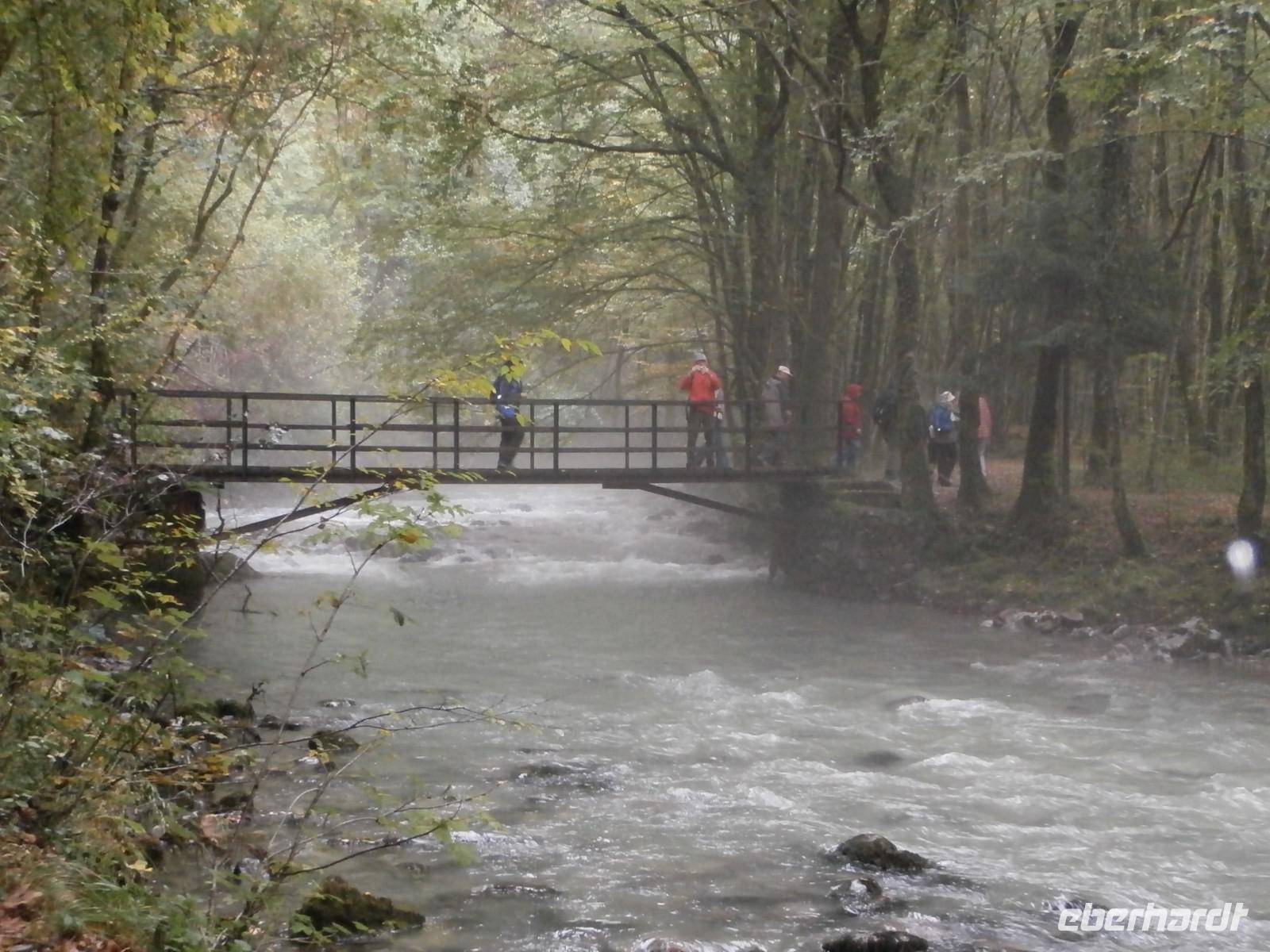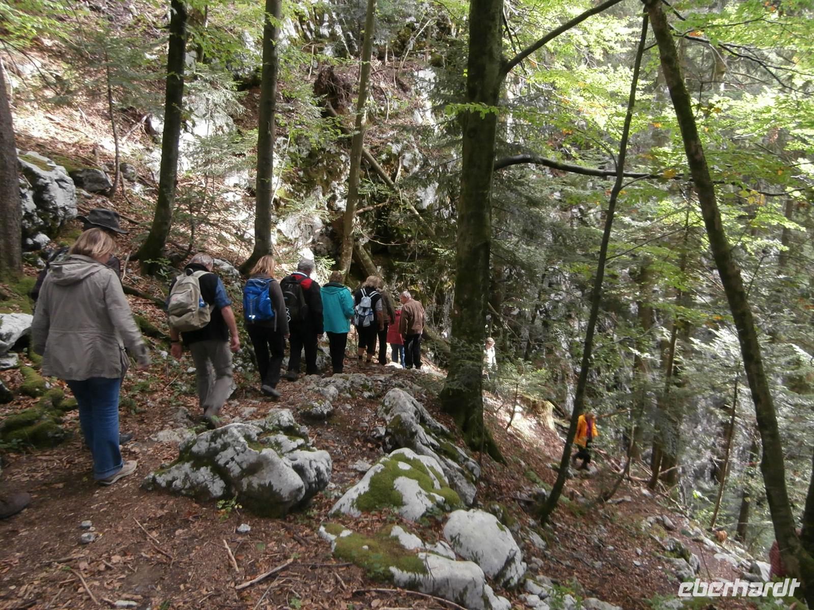 Vom Hotel Jastreb geht es heute Morgen bei strömenden Regen mit Gepäck weiter hinein ins Grüne Herz des Gorski Kotar nach Cyrni Lug. Aufgeben werden wir nicht, es wird gewandert auf dem gut zu laufenden Lehrpfad Leska, mit Regencape und Schirm ausgestattet, erfahren wir von Miro und Marko sehr viel über Tiere, Pflanzen und den hier vorherrschenden reinen Tannenwald. Unsere Pilzfreunde müssen viel Stärke beweisen beim Anblick von Steinpilzen und mir völlig unbekannten Pilzsorten. Auch über das Balzgehabe des Auerhahnes erzählt uns Marko unheimlich lustige Details. Gemeinsam kehren wir zurück zum Nationalparkhaus im NTP Risnjak. Bei besser werdendem Wetter heißt es aber nun für uns Abschied nehmen in Kroatien. Wir überqueren die Grenze zu Slowenien in Pasjak und fahren auf der Smaragdstraße durch das wildromantische Tal der Idridja und Soca. Sonnenschein und Laubfärbung lassen die Berge und die Fahrt durch Slowenien zum Erlebnis werden. Im Hotel Kanin übernachten wir in Bovec und genießen ein gutes Essen vom reichhaltigen Büfett. Die gute Lage des Ortes, umgeben von hohen Bergen, der Hausberg ist 2000 Meter hoch, nutzen wir noch für einen Rundgang und für schöne Fotoaufnahmen der untergehenden Sonne. Ein gemeinsames Bad im Hotelschwimmbad krönt unseren Aufenthalt in Bovec.