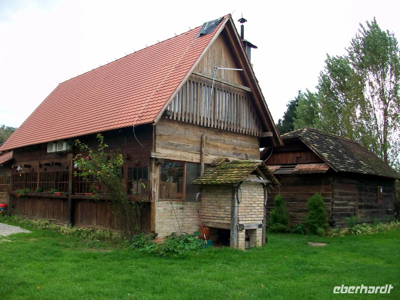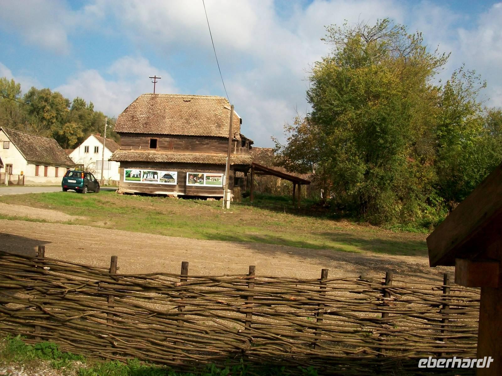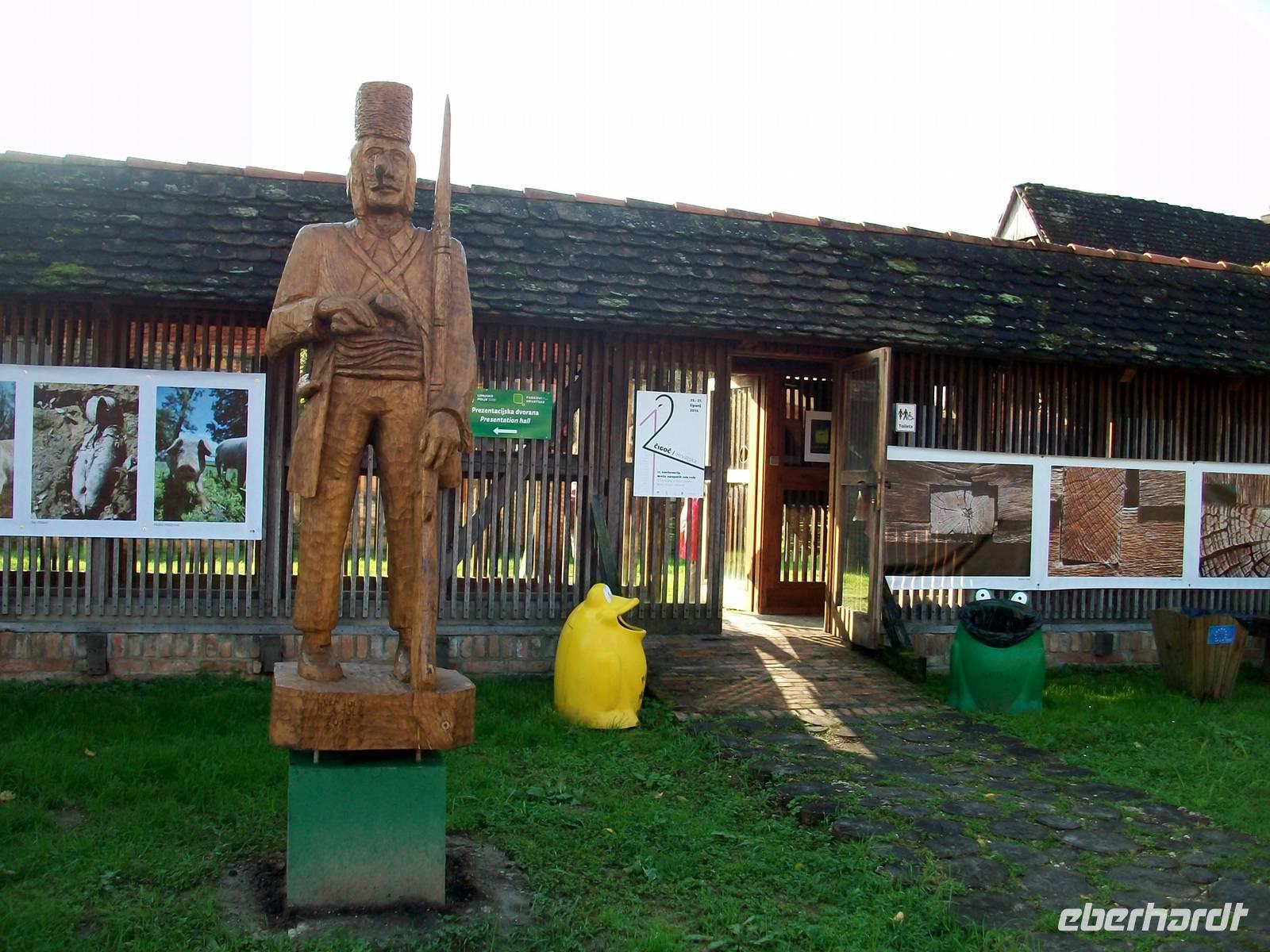 Mir dem Bus gelangen wir nach knapp zwei Stunden zur Save; hier sind die Straßen nun ziemlich eng und im Naturparkzentrum Krapje werden wir schon von Herrn Bogovic erwartet, er ist der Leiter des Parks. Schon hier umstehen uns die einfachen und typischen Holzhäuser die wir auch auf der weiteren Fahrt sehen werden.