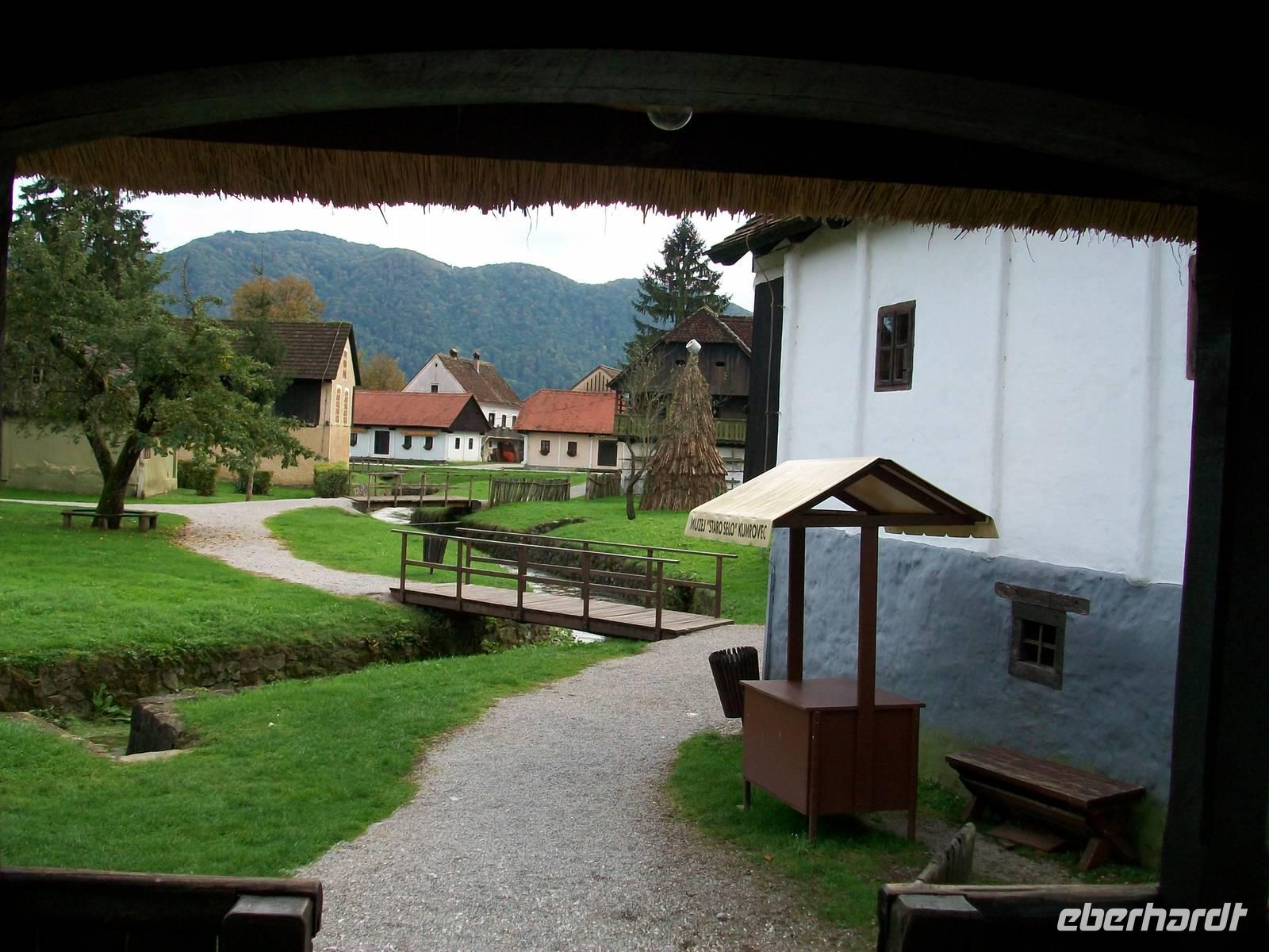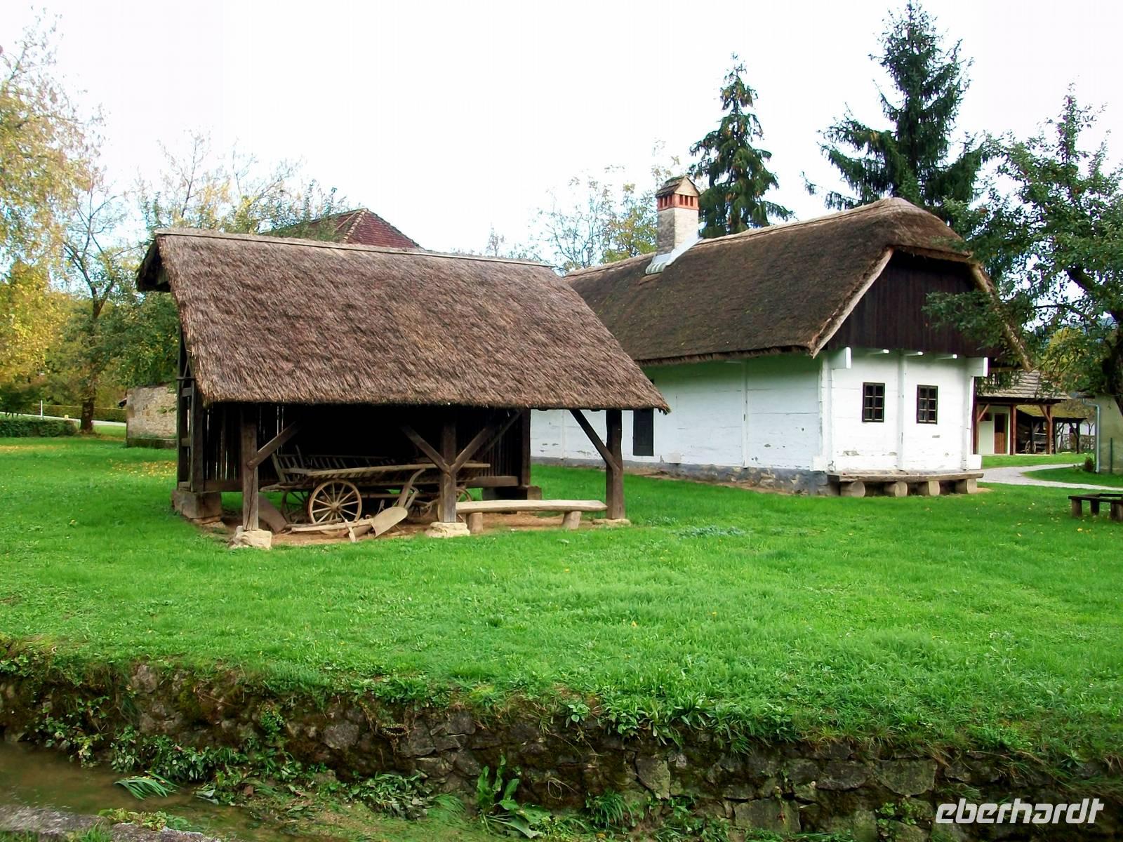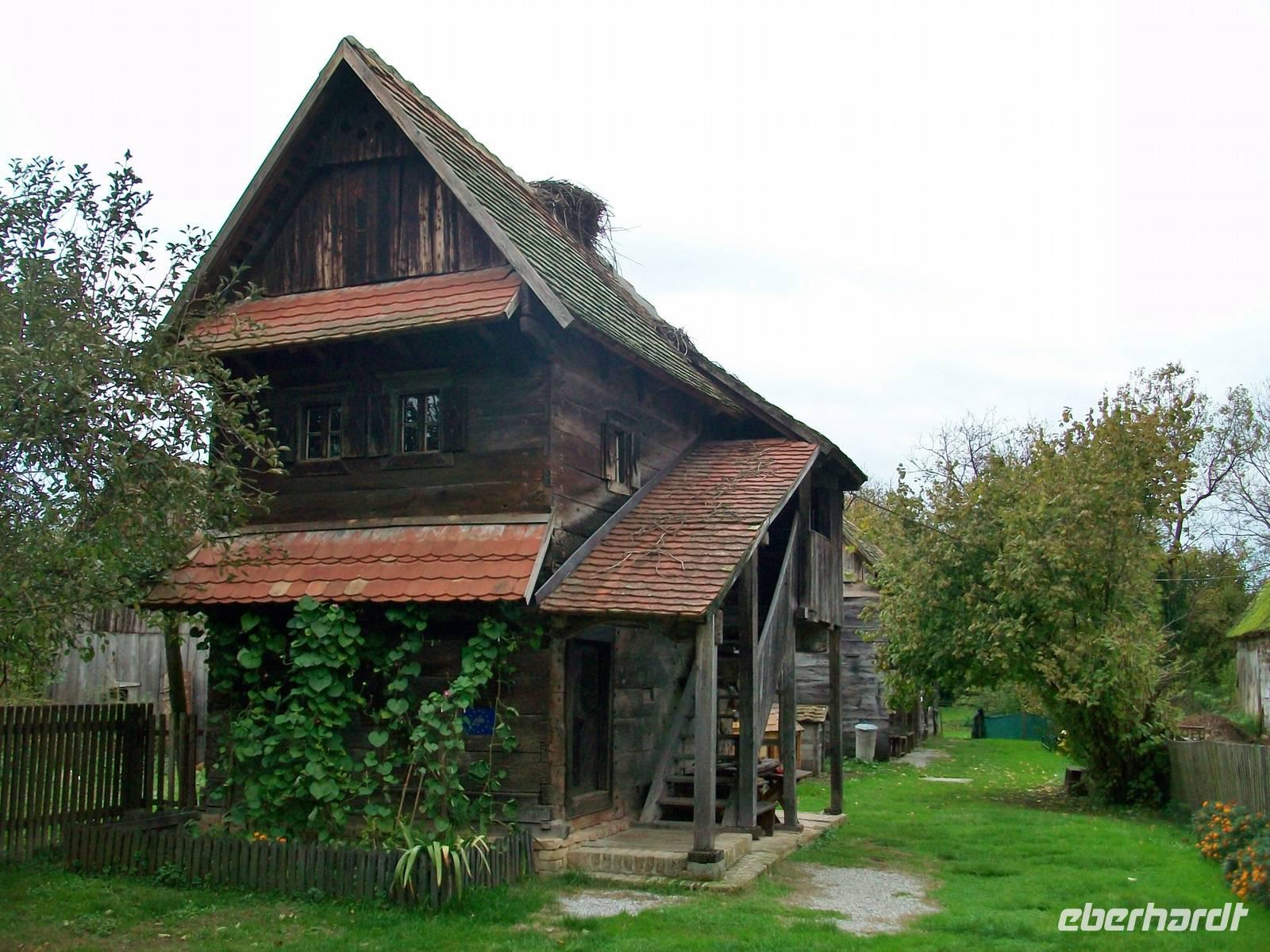 Mir dem Bus gelangen wir nach knapp zwei Stunden zur Save; hier sind die Straßen nun ziemlich eng und im Naturparkzentrum Krapje werden wir schon von Herrn Bogovic erwartet, er ist der Leiter des Parks. Schon hier umstehen uns die einfachen und typischen Holzhäuser die wir auch auf der weiteren Fahrt sehen werden.