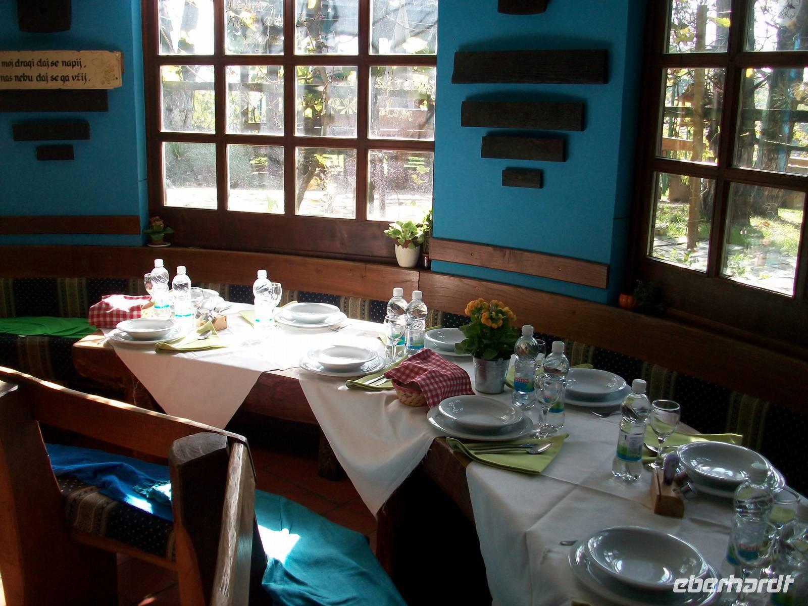 Dieser Besuch hat sich gelohnt; danach gelangen wir bei respektablem Wetter mit etwas Sonne durch das schöne Gebiet der Zagorje zu unserem Hotel. Unterhalb des Schlosses Trakošcan langen wir in dieser ruhigen Gegend an und genießen wenig später das leckere Abendessen vom Buffet.