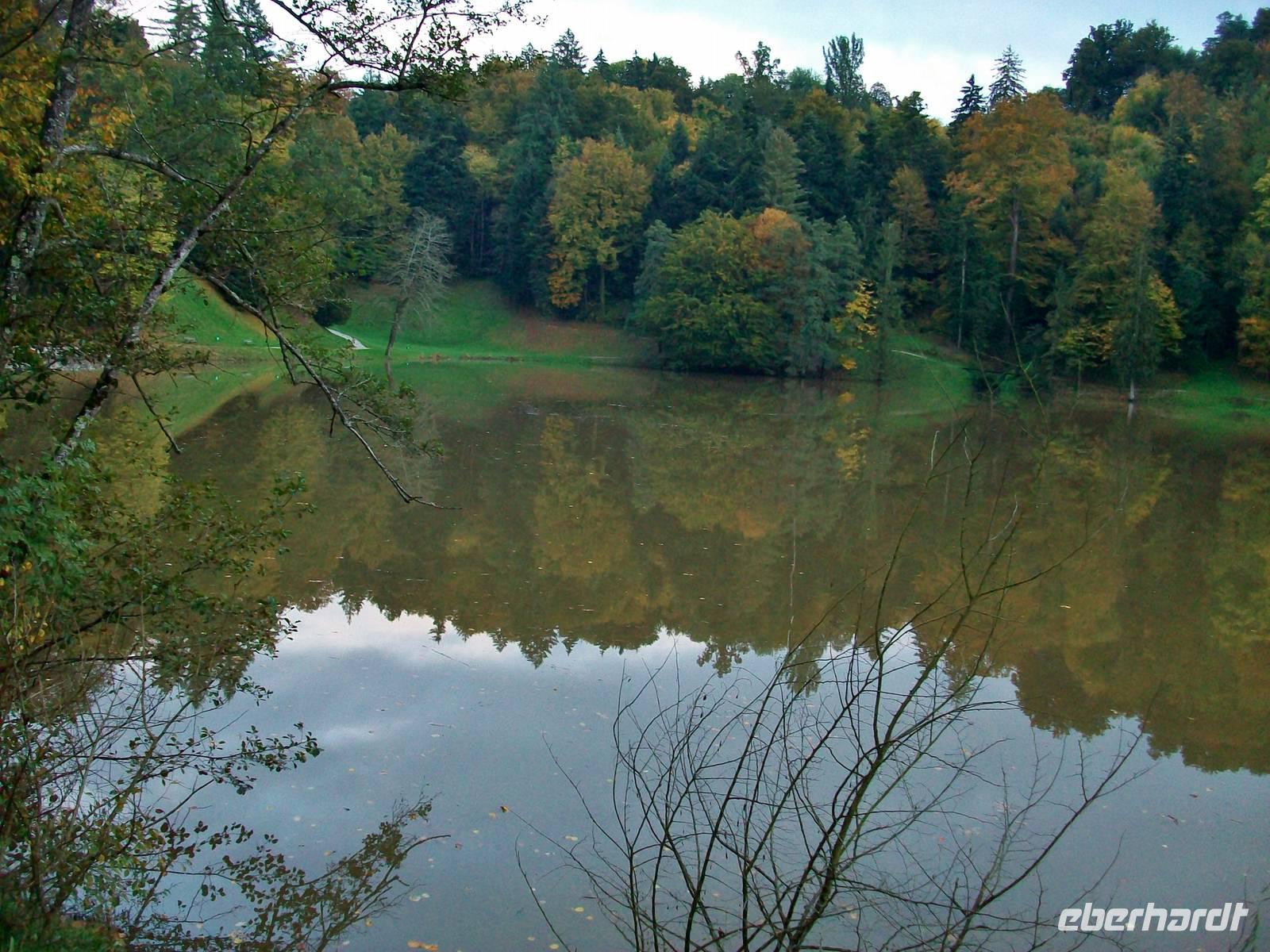 Unser Weg wird gesäumt von den Bäumen und dem bunten Herbstlaub welches unser Auge erfreut. Die Wiesen, die noch im Schatten liegen, tragen eine leichte Schicht von Raureif der uns daran gemahnt dass der Winter vor der Tür steht.
