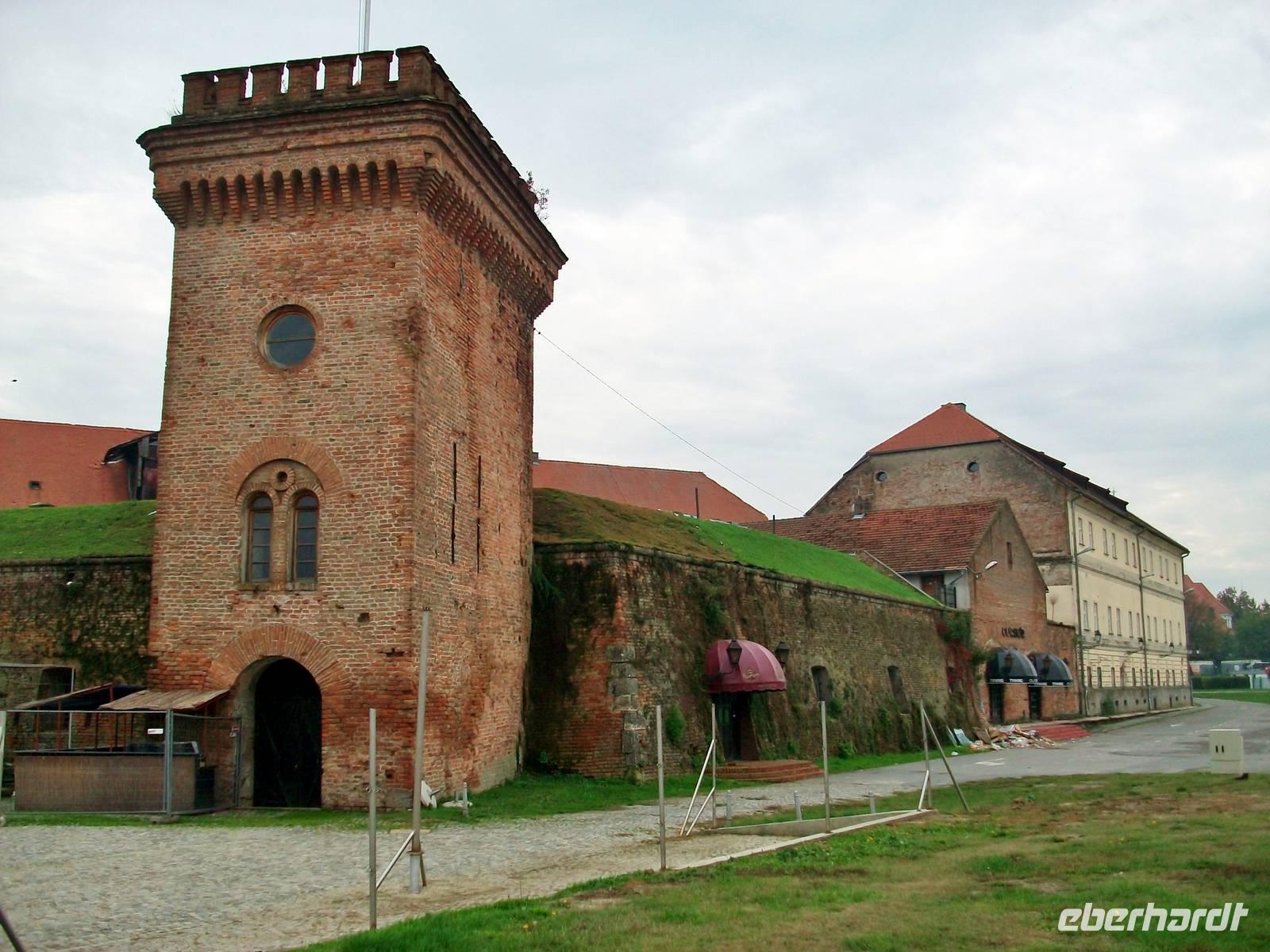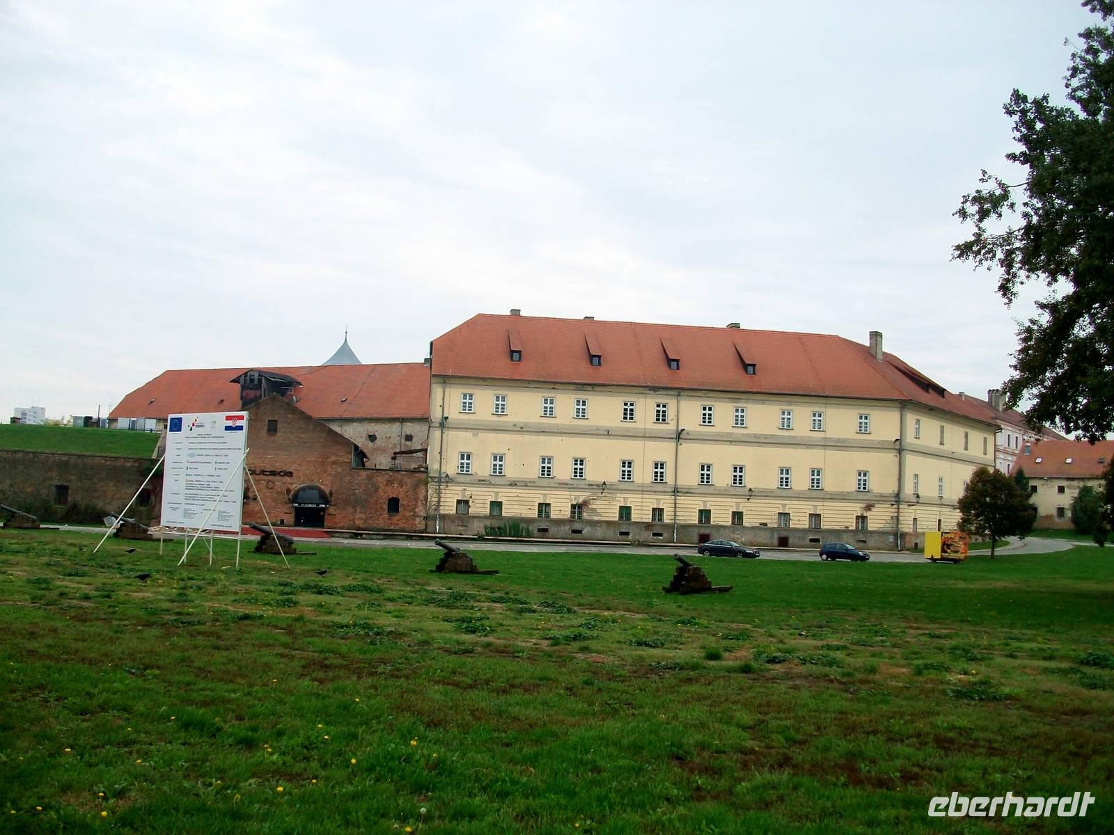 Entlang der schönen Uferpromenade schlendern wir mit Dara flussabwärts und unsere Stadtführerin bringt uns so wissenswert wie originell Osijek näher. Nach einem gemütlichen Fußweg langen wir an der Festung an. Hier hat nun der Zahn der Zeit doch etwas genagt und Geld ist dringend nötig, diesen schönen Komplex zu renovieren. Dennoch, der Rundgang bringt uns eine interessante aber auch unruhige Geschichte näher; beim Gang durch die Historie sehen wir auch die schönen Häuser die uns die Habsburger hier hinterließen und wir können wiederholt eintauchen in alte Zeiten und unserer Phantasie freien Lauf lassen.