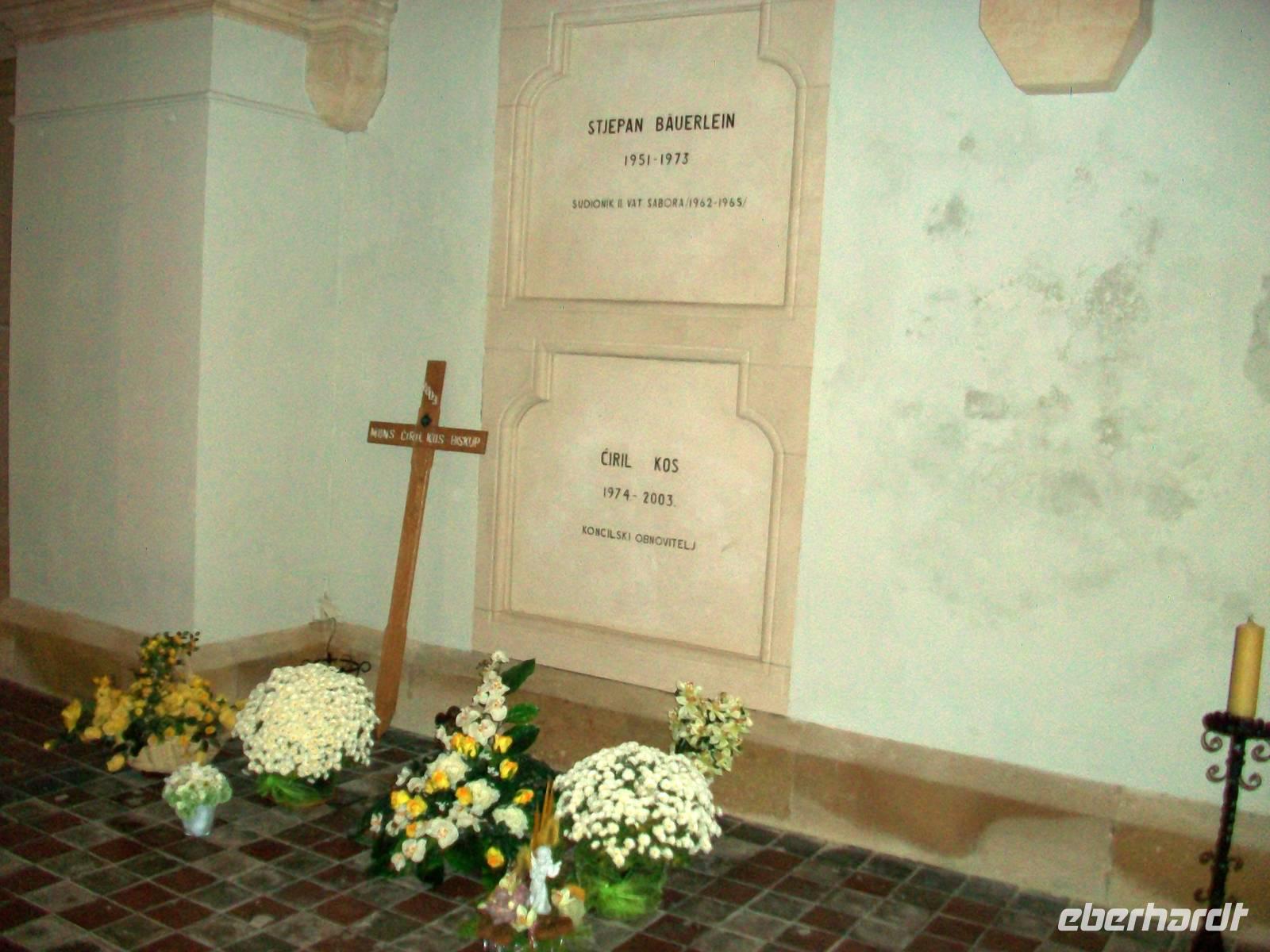 Über eine Treppe gelangen wir hinunter in die Krypta mit den verschiedenen Gräbern; auch das von Strossmayer befindet sich hier, voller Ehrfurcht sehen wir diese letzten Ruhestätten.