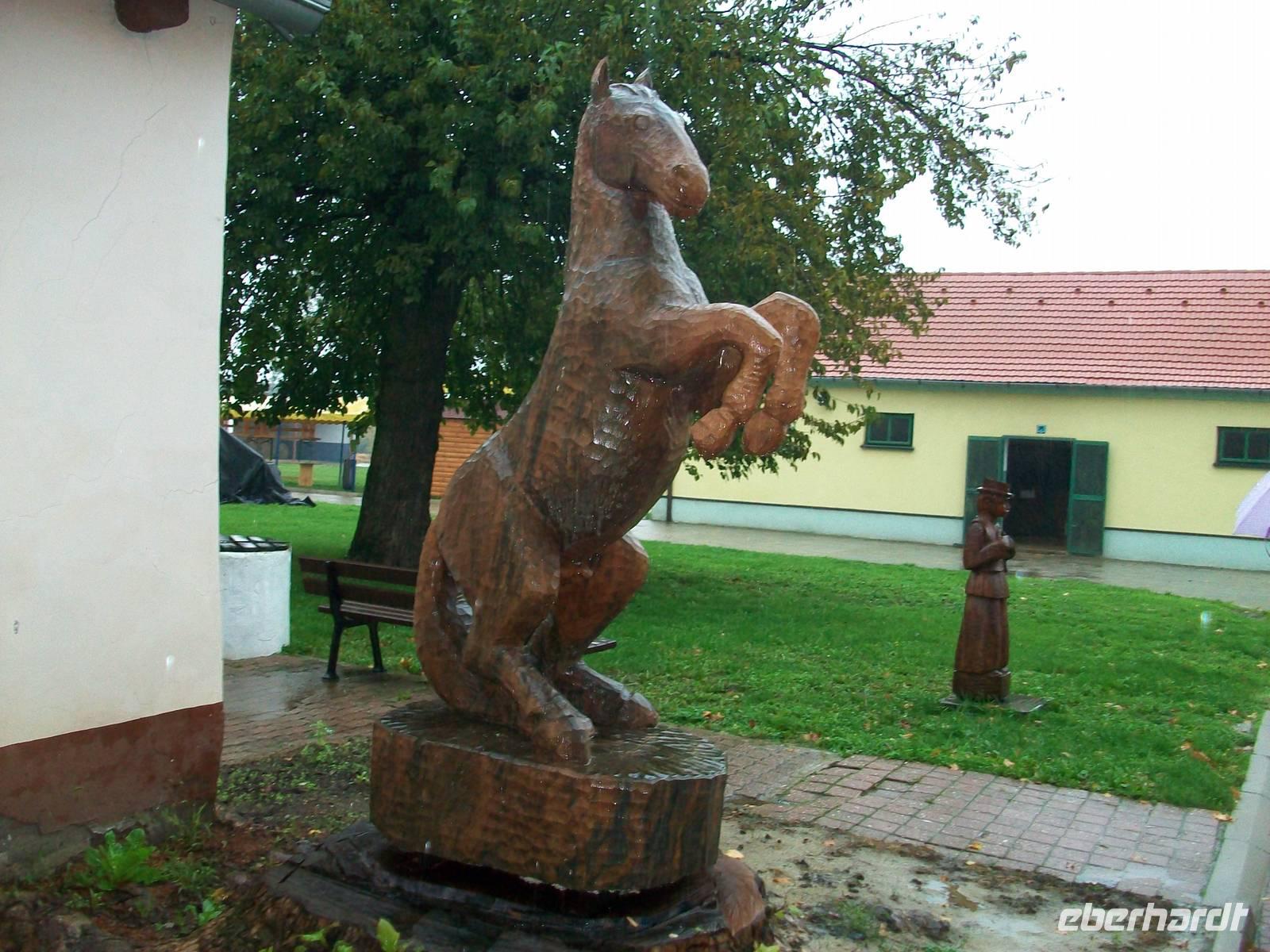 Petrus hält die Himmelschleusen geöffnet als wir auf dem Weg zum Lipizzanergestüt dieser Stadt sind. Hier werden wir nun von einem Mitarbeiter empfangen der uns in der nächsten Stunde durch diese schöne Anlage führen wird. Zunächst schauen wir an den Boxen der jungen Hengste vorbei, einige dieser Jungtiere scharren etwas unruhig im Stroh.