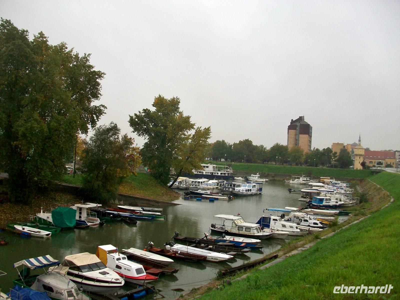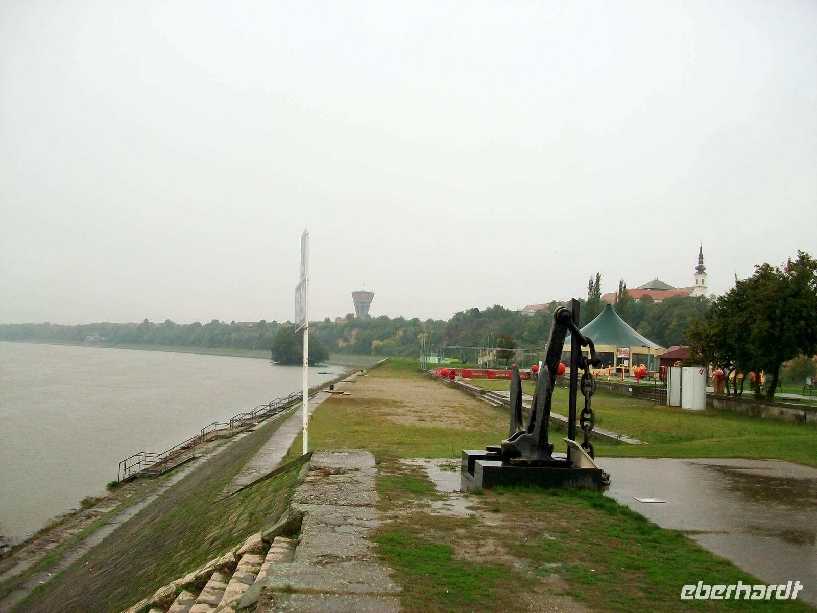 Vor dem Zentrum von Osijek gibt es einige Baustellen, dennoch langen wir wie geplant kurz nach eins an unserem Hotel an. Gleich sehen wir welch schöne Lage das Haus hat; direkt am Drau- Fluss und an einer schönen Promenade gelegen, sind wir untergebracht.