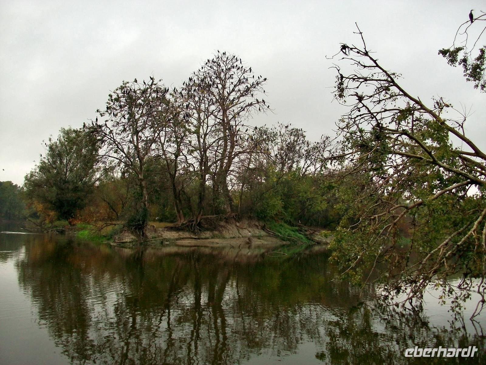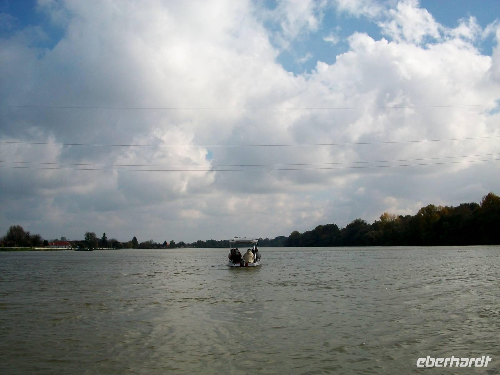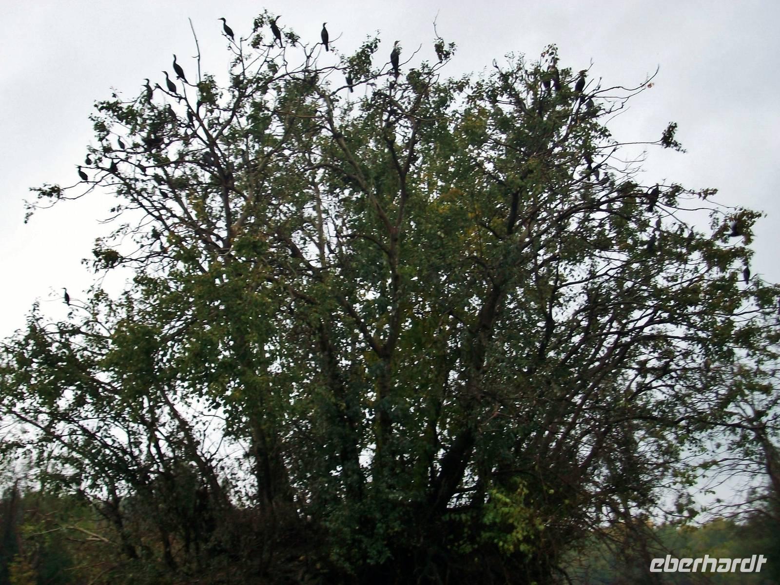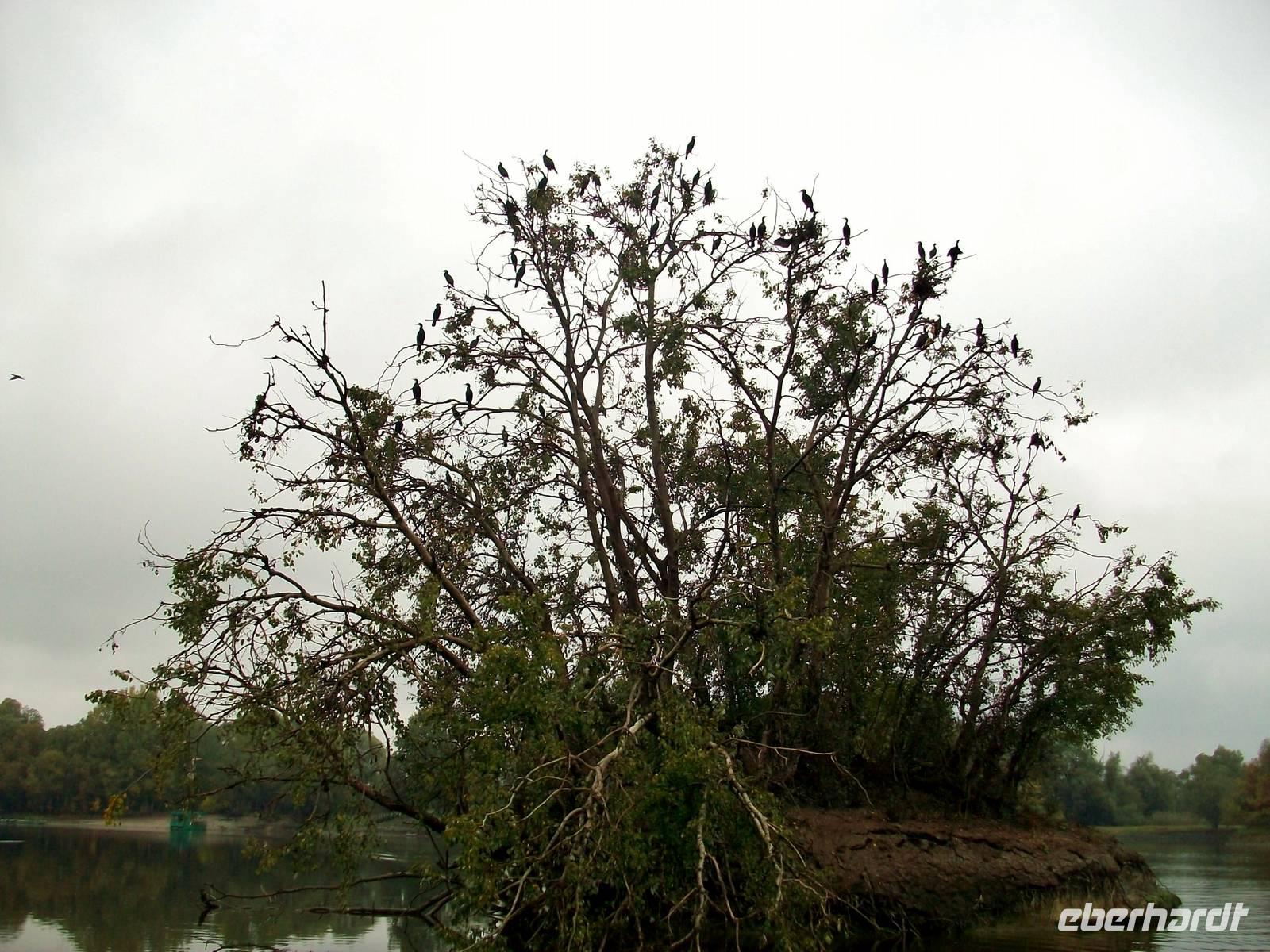 Langsam gleiten wir an den Inseln vorbei die mit Bäumen besetzt sind. Auf ihnen haben sich Unmengen von Wasservögeln festgesetzt, hier werden sie übernachten. Hin und wieder werden einzelne Graureiher und Kormorane aufgeschreckt und elegant fliegen sie über das Wasser.